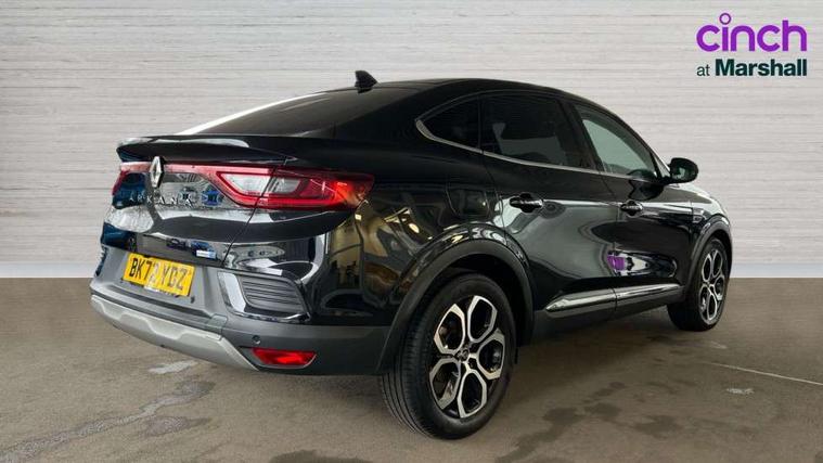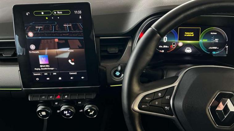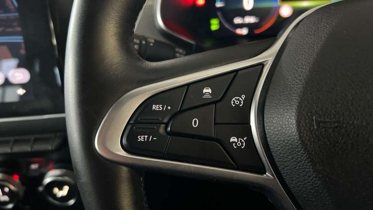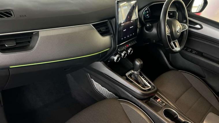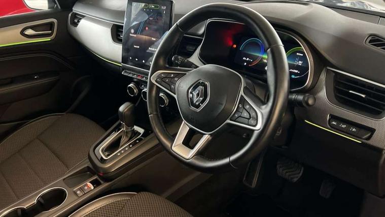 7" TFT Driver information display, Blind spot warning, Bluetooth system, EASY LINK 9.3" portrait touchscreen with navigation, Google search and traffic information, eCall emergency call system, Eco mode, EV button to activate pure mode, Front and rear parking sensors, Gear change indicator, Lane departure warning, Lane keep assist, Multi-sense - 3 driving modes and 8 ambient lighting, Rear cross traffic alert, Rear view camera, Renault automatic emergency assist, Smartphone integration compatible with Apple CarPlay and Android Auto, Traffic sign recognition with over speed prevention, Trip computer, Variable assistance electric power steering, Arkamys classic sound system with 6 speakers, DAB radio, USB port, 3rd brake light, Auto dimming rear view mirror, Automatic headlights, Automatic high / low beam, Automatic windscreen wipers with rain sensor, Black side door protection with chrome insert, Body coloured bumpers, C-shaped LED front signature lighting, Chrome decopart on wing (fender molding), Chrome window lower lining, Extra tinted rear windows and tailgate, Front and rear electric windows, Front driver window with one touch facility and anti-pinch function, Front grille with chrome on upper part, Full LED headlights, Grey front and rear skid plates, Heated rear window, Rain sensor, Rear windscreen wiper, Shiny black shark fin antenna, Side mirrors adjustable electrically, electrically foldable, with defrosting and temperature sensor, automatically foldable at vehicle closure, 3 seat bench in 2nd row, 60:40 split and fixed base rear seats, Automatic climate control with combined filter, humidity sensor and AQS, Central console with storage, Front and rear head restraints, Height and reach adjustable steering wheel, ISOFIX child seat fixing points on rear outermost seats, Leather steering wheel, LED front and rear roof lights, Rear air vents, Single front passenger seat, 3x3 point rear seat belts, ABS+EBA, Active emergency braking system, B Brake Mode - One pedal driving with increased regenerative braking, Distance warning alert, Driver airbag, Driver and passenger front and side airbag deactivation, Driver and passenger side airbags, Driver height adjustable seat belt, Electronic parking brake with auto hold, ESC (Electronic Stability Control), Front and rear no seatbelt warning sound, Front curtain airbags, Front head airbags, Hill start assist, Passenger airbag, Tyre pressure warning light, Anti drill door locks and locking fuel cap, Central door locking, Deadlocking system, Hands free keycard with Keyless access and start, RAID (Renault Anti-Intruder Device) automatic door locking, Rear side wing door and window child locking function (front driver door control panel), Superlocking, Thatcham alarm, 18" Pasadena diamond cut alloy wheels with grey inserts,