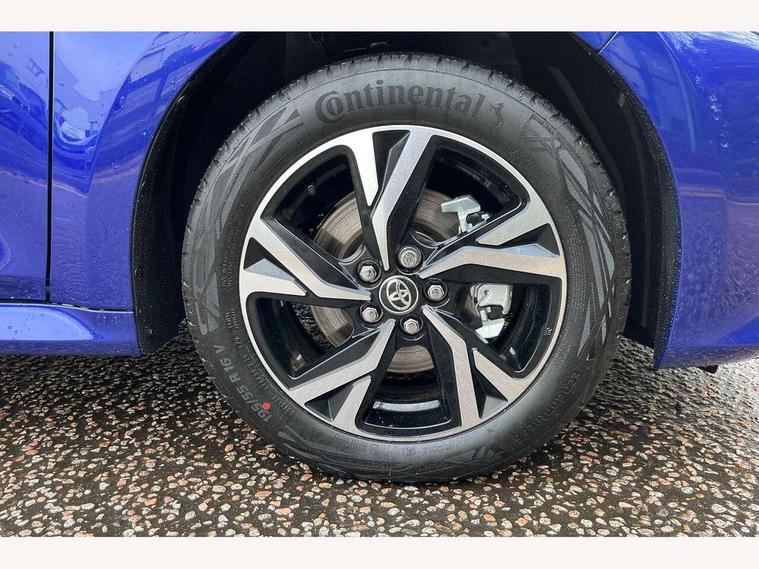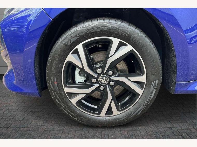 7" Digital Combimeter, Adaptive cruise control, Adjustable speed limit with speed warning, Bluetooth connectivity, Colour binocular inspired displays with digital speedometer, E-call, Electric power steering, Hybrid energy display, Lane trace assist, Multi information display switches on steering wheel, Pre-collision system (PCS), Reversing camera, Smartphone integration with Apple CarPlay and Android auto, Tailgate, Voice recognition, Vehicle Stability Control (VSC), 4 speakers, 9" Multimedia touch display, Toyota Touch 3 system with DAB radio, USB connection, Acoustic windscreen glass, Auto high beam assist, Auto windscreen wipers, Automatic headlights, Body coloured door mirrors, Electric adjustable heated door mirrors, Follow me home headlights, Front auto power windows with anti jam protection, LED daytime running lights, LED front fog lights, LED front light guide, LED Headlights, LED High mounted stop lamp, LED Indicators, LED rear light guide, Manual headlight levelling, Painted chequered front grille, Rain sensor, Rear auto power windows with anti jam protection, Rear privacy glass, Rear roof spoiler, Rear side wing doors, Rear wiper, Shark fin antenna, Turning signal integrated indicators in door mirrors, Variable front intermittent wipers, 3 adjustable rear headrests, 3 seat bench in 2nd row, 3 spoke leather steering wheel, 60/40 split folding rear seat, Active headrests, Adjustable boot height, Auto air conditioning, Coat hooks in rear grab handles, Cup holders (2 front & door), Data Communication Module (DCM) connected services, Fabric upholstery, Front armrest, Glovebox, Grey roof lining, Height adjustable driver's seat, Isofix seat fixing, Leather gearshift, Pollen filter, Shopping bag hooks, Single front passenger seat, Tilt/telescopic steering column, 3 point seatbelts on all rear seats, ABS+EBD+Brake assist, Electronic parking brake, Emergency brake light system (EBS), Front passenger airbag on/off switch, Front seatbelt reminder, Hill start assist control (HAC), Rear child proof door locks, Rear seat belt reminder, Supplemental Restraint System (SRS) 8 airbags: Driver & passenger's airbags, dual side curtain airbags, side impact airbags, front centre airbag, Toyota Safety Sense 3 with over the air updates, Tyre pressure warning system, 2x Master key, Alarm/immobiliser, Remote powered central double locking doors, Soft touch instrument panel, Space saver spare wheel,