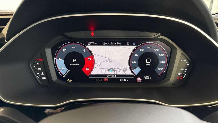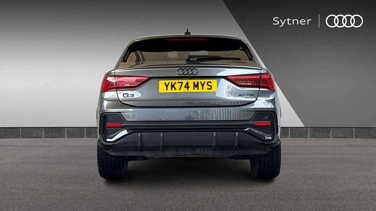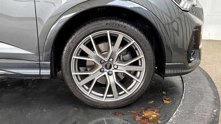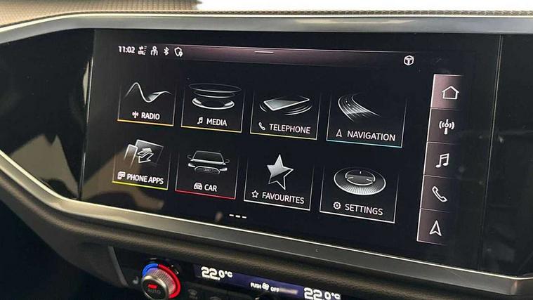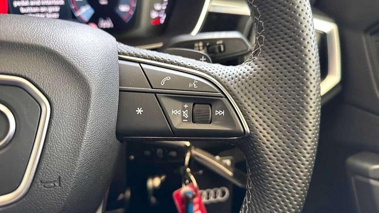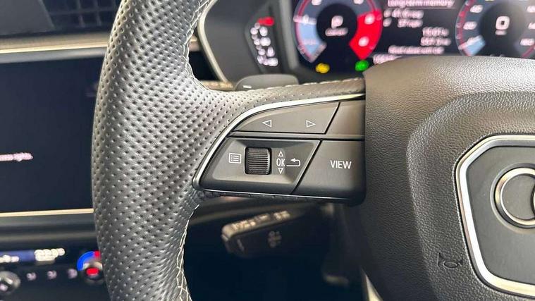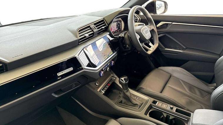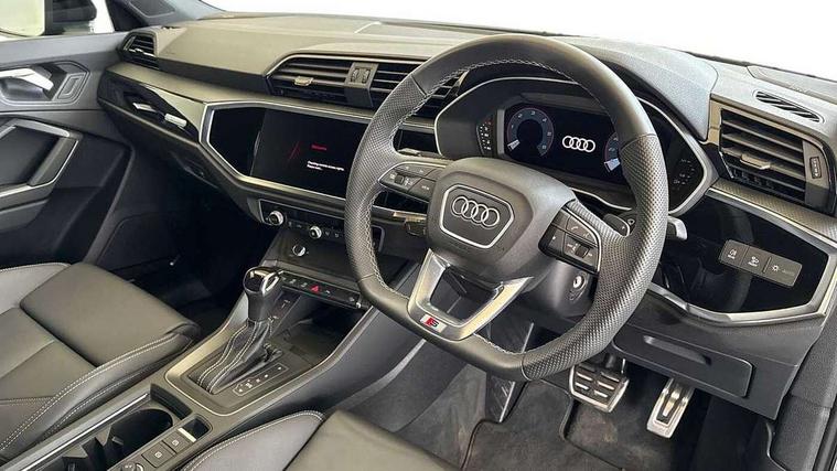Audi connect safety and service, Audi drive select, Audi lane departure warning, Audi Virtual Cockpit - 10.25" display, Bluetooth interface, Camera based traffic sign recognition, Distraction and Fatigue warning, Legal emergency call, MMI Navigation Plus with high resolution 10.1 inch touchscreen colour display, Power operated tailgate, Progressive steering, Service interval indicator, Smartphone interface includes wireless Apple carplay/Android Auto, Start stop system with recuperation, Voice control system with natural language interaction, Diesel particulate filter, Sports suspension, 2 USB-C ports with charge and data functions, 6 passive loudspeakers, DAB digital radio module, Acoustic windscreen, Audi Beam uses LEDs to project the Audi logo onto the ground as you exit your Q3, Auto dimming door mirrors, Auto dimming frameless rear view mirror, Diffuser grille in grained matt black, Diffuser trim in selenite silver, Electrically folding, adjustable and heated door mirrors with integrated LED side indicators and kerb view function for passenger side, Front and rear electric windows, Front fog lights, Front underbody protection in manhattan grey paint finish, High gloss black finish B and C pillars, LED Dynamic rear indicators, LED headlights with LED daytime running lights, LED rear lights, LED third brake light, Privacy glass dark tinted rear and rear-side windows (from B-pillar backwards), Rain and light sensors, Rear side wing doors, Rear underbody protection in matt black, Rear wiper, S line front and rear bumpers and side skirts in contrasting Manhattan grey paint finish, Variable front intermittent wipers, 12V socket in rear centre console, 3 seat bench in 2nd row, 40:20:40 folding with manual adjustment for 60:40 forwards/backwards position and backrest angle, Adjustable rear seat bench/backrest with centre armrest and cupholder, Black cloth headlining, Dual zone electronic climate control, Electric lumbar support, Front and rear black floor mats with contrast stitching, Front and rear headrests, Front centre armrest, Height and reach adjustable steering wheel, Illuminated door sill trims with S logo, ISOFIX child seat mounting for front passenger with airbag deactivation and outer rear seat including top tether attachment point for outer rear seats, Luggage compartment sill protection in stainless steel, Manual front seats with height adjustment, Perforated leather gearknob, Single front passenger seat, Stainless steel pedals, Twin leather upholstery with front sport seats + S embossing, Black styling pack - Q3, Non smoking pack - Q3, 3x3 point rear seatbelts, 6 airbags - Driver, front passenger, curtain and side windows, Audi pre-sense front with pedestrain and cyclist recognition, Electrically operated child locks on rear doors, Electromechanical parking brake, Electronic stabilisation control including ABS, ASR and EDL, Front seatbelt reminder, Hill descent control, Hill hold assist, Pre sense basic, Seatbelt monitoring, Tyre pressure warning, Warning triangle and first aid kit, Anti theft alarm, Anti theft wheel bolts, Immobiliser, Remote central locking, Aluminium look interior elements, Detail dashboard around MMI touch colour display in glass look, black with surround in aluminium look, Leatherette door armrest, Piano black inlay,