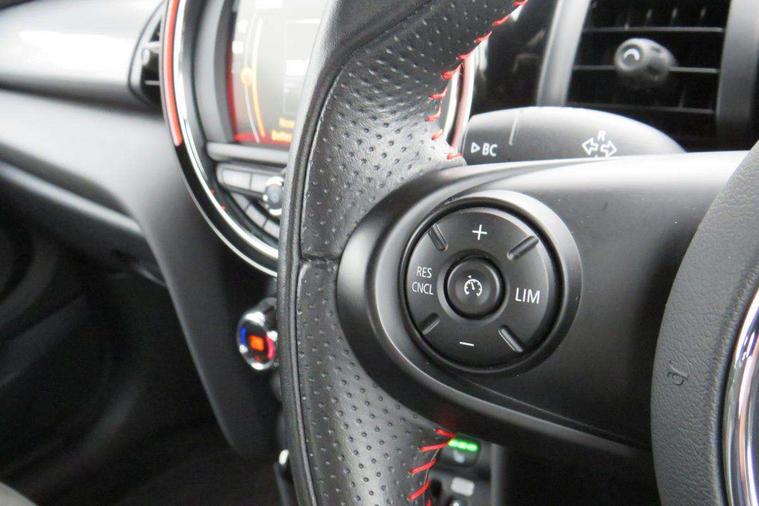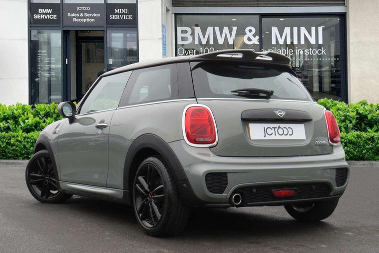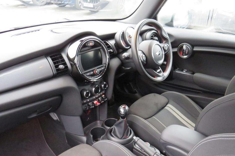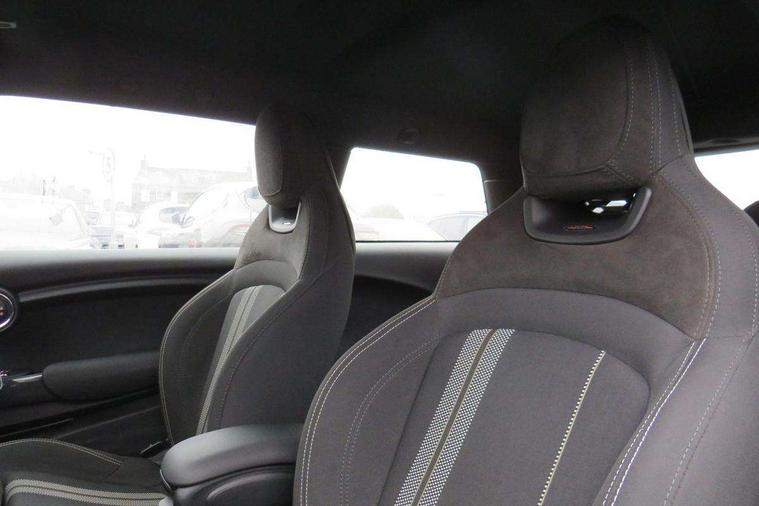 Automatic start/stop function with brake energy recuperation, Compatible mobile phone bluetooth with audio streaming, Electro-mechanical speed dependant steering assistance, Instrument cluster, MINI Driving Modes - centre toggle switch to control driving setting (sport, mid and green), Mini E-call, MINI TeleServices, On board computer, Service interval indicator, 6 Speed manual transmission including gear change indicator display, Double Vanos system, Fully variable valve control, High precision injection, Performance Control, 6.5" touchscreen with LED ring, FM tuner and DAB digital radio, Automatic headlight activation switch, Body colour fuel filler cap, Chrome border high gloss black slats radiator grille, Dynamic brake lights, Electric front+rear windows, Heated rear window, Heated windscreen washer jets, John Cooper Works - aerodynamic kit (front and rear apron, spoiler), front and rear sport bumpers and part-painted side sills with door sill finishers, John Cooper Works rear spoiler, LED headlight with closed ring and daytime driving lights, Left exhaust tailpipe with chrome finisher, Metal door sill strips with MINI imprint, Model logo Cooper on right of tailgate, Rain sensor window wipers, Rear fog lights, Rear LED lights with union jack design, Rear window wiper, Side scuttle panel with integrated indicator, Sun/heat protection glass, White indicator lenses, 12V Accessory socket in centre console, 4 lashing eyes in luggage compartment, 60/40 split folding rear seat, Anthracite headlining with grab handles and clothes hooks, Chrome interior highlights, Cupholders, Front and rear head restraints, Front and rear isofix with front passenger airbag deactivation, Glove compartment, Height and length steering column adjustment, Interior lighting with 12 basic colours selectable via toggle switch in roof, John Cooper Works adjustable thigh support, John Cooper Works leather steering wheel with contrasting stitching in Chilli Red with John Cooper Works logo, John Cooper Works Logo in seat, Knee roll and door armrests, Leather gearshift lever and handbrake gaiters, LED reading lights, vanity mirror lights, front foot well light and spotlight on front seats, Manual air conditioning, Mechanical seat adjustment, driver seat height adjust, forward/back and front seats backrest, Mini logo projection on floor from drivers exterior mirror, Multifunction steering wheel, Storage compartments in doors, Sunvisors with vanity mirrors, Tool kit, 3 point seatbelts on all four seats, 6 Airbags - front, side, head and seat belt tensioners, Anti-lock braking system (ABS), DSC - Dynamic Stability Control, Front and rear disc brakes, Hill start assist, Single tone fanfare horn, Tyre pressure monitoring system, Alarm system with tilt sensor, monitoring doors, bonnet interior and tailgate, Electronic vehicle immobiliser, Start/stop toggle with keyless go,