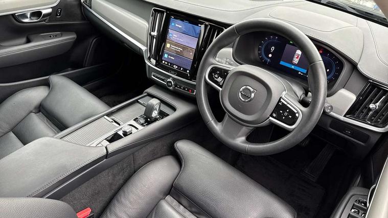 12.3" Progressive Driver Display, 360 degree surround view parking camera with side proximity sensors, 9" centre console touch screen, Adjustable steering wheel force, Apple carplay (wired), Bluetooth handsfree system, Driver alert control with lane keeping aid, Driver assistance (pilot assist and adaptive cruise control), Driver awareness - Blind spot system + steer assist, cross traffic alert with autobrake, rear collision warning and mitigation, E-call, Emergency assist, Front and rear park assist, Google automotive services enabled entertainment apps, navigation with google maps, voice recognition with google assistant, Handsfree bootlid opening/closing, Oncoming Lane Mitigation, Power operated tailgate/boot lid, Speed limiter, Speed sensitive steering, Volvo on call app, Wireless/Inductive Mobile Phone Charging, 8 speed automatic transmission with start/stop + manual change functions, Dynamic chassis, DAB Radio (Digital Audio Broadcasting), Premium Sound by Harman Kardon, dirac unison, dolby pro logic II surround sound, 13 speakers/600W output and fresh air subwoofer, Steering wheel remote infotainment controls, Adaptive brake lights with high level LED brake lights, Auto dimming interior + exterior mirrors, Automatic headlight levelling system, Automatic LED Headlights + Active high beam incorporating daytime running lights, Chrome window surround, Colour coordinated auto folding and heated power door mirrors, Front and rear power windows, Heated windscreen, High gloss black door mirrors and window surround, High gloss black front and rear bumper decoratives, High gloss black mesh front grille and surround, Home safe and approach lighting, Integrated roof rails in high gloss black, LED front fog lights, Puddle lights, Rain sensor with automatic windscreen wiper activation, Rear LED lights with sequential indicators, Rear side wing doors, Rear wiper, Roof antenna, Roof spoiler, Variable front intermittent wipers, Visible VIN plate, 3 seat bench in 2nd row, 3 Spoke tailored steering wheel with chrome trim, 4 Zone electronic climate control, A-pillar parking ticket holder, Air purifier particulate matter (PM) filter, Ambient door and instrument panel lighting, B Pillar ventilation, Boot lid/tailgate illumination, Bright metal luggage compartment threshold, Cargo divider with grocery bag holder, Centre console cupholder and storage, Charcoal carpets and floor mats, Driver and front passenger seat power height adjustment, Extended front seat cushions, Front 12V socket tunnel console and cargo area, Front and rear footwell and side step illumination, Front and rear reading lights and centre armrest Storage Illumination, Front headrests, Front/rear door pockets and front cupholder illumination, Glovebox compartment with illumination, Heated front seats, Heated steering wheel, Height/reach adjustable steering column, Illuminated front and rear aluminium tread plates, Illuminated luggage compartment, Illuminated vanity mirrors + ticket holder, Integrated sun curtains in rear doors, ISOFIX attachment on outer rear seats, Leather upholstery, Load cover, Load protection net, Multi directional lumbar support, Power driver seat with memory for seat and exterior mirrors, Power folding rear headrests, Rear armrest with cupholder, Single front passenger seat, Underfloor cargo storage, Versatile split folding rear seat - 60/40, 3x3 point rear seatbelts, Active bonnet, City safety with steering support with Pedestrian + cyclist + front collision warning with full auto brake and rear auto brake, Drivers knee airbag, Dual stage driver/passenger airbags, Front seats SIPS airbags, Hill start assist, IC (Inflatable Curtains) - Full Length, Passenger airbag cut-off switch, Power child locks on rear doors, Power parking brake with auto hold function, Road sign information display, Run off Road Mitigation, Run off Road Protection, Seatbelt reminder and pretensioners for all seats, SIPS (Side Impact Protection System), Slippery road and hazard light alert, Stability and Traction Control with Spin control, Engine Drag Control and Corner Traction Control, Tyre pressure monitoring system, Vehicle deceleration control with Anti-lock Brake System, Electronic Brake Distribution and Emergency Brake Assist, Warning triangle and first aid kit, WHIPS whiplash protection system - front, 2x Key integrated remote control central locking + fuel flap with deadlocking system and auto open/close power windows, Anti-theft alarm including immobiliser/volume sensor + level sensor, Care key with user defined top speed, Keyless drive includes keyless entry and keyless start, Locking wheel nuts, Private locking for tailgate, Tailored Instrument Panel and Door Tops with Contrast Stitching, 19" 5 Spoke diamond cut/ black alloy wheels,