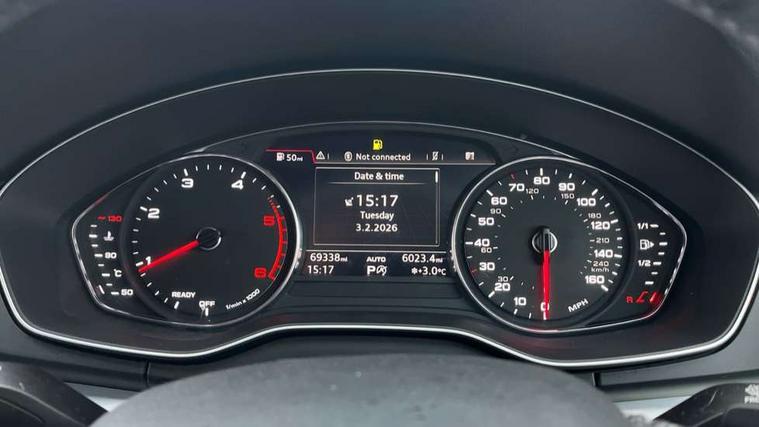 Audi connect, Audi drive select, Audi smartphone interface, Driver information centre with colour display in instrument panel, Electric power steering, Power tailgate, Remote electric boot opening/closing, SD card based MMI navigation, Service interval indicator, Voice control system, Diesel particulate filter, 2 USB ports, Audi sound system, Auxiliary input socket, CD player, DAB Digital radio, MMI radio plus with 7" colour MMI screen and MMI controller, Acoustic windscreen, Aluminium roof rails, Aluminium sill plates, Auto dimming rear view mirror, Black high gloss front air inlet in matt aluminium effect, Body colour bumpers, Body colour door mirrors, Body colour rear diffuser insert, Chrome exhaust tailpipe, Electric headlight adjustment, Electrically adjustable and heated door mirrors, Front and rear electric windows, Front fog lights, Headlight range control, Headlight washers, Honeycomb side air inlet in titan black, Light and rain sensor for auto activation of lights and windscreen wipers, Loading sill protector in stainless steel, Privacy glass with front acoustic glazing, Rear diffuser strip in matt aluminium silver, Rear spoiler, Rear wiper, S Line side skirts, Selenite silver underbody guard, Twilight grey matt radiator grille with matt aluminium horizontal chrome struts, 3 rear headrests, 3 zone climate control, 4 way electric lumbar support for driver and front passenger, 40:20:40 split folding rear seat, Black cloth headlining, Front centre armrest with 12v socket, Front sports seats, Front/rear floor mats, Height adjustable driver's seat, Height adjustable front head restraints, Illuminated door sills, Isofix front passenger and rear seat preparation, Jack and tool kit, Load compartment cover, Luggage compartment carpet, Matt selenite silver door inserts, Perforated leather gearknob, Reach + rake adjustable steering column, Removable luggage compartment floor, Removable net partition, Roller blind loadspace cover, Stainless steel pedals, Sunvisors with vanity mirrors, Non Smokers pack, 3 point seatbelts on all seats, ABS, Curtain airbags, Driver and passenger airbags, Driver and passenger side airbags, Electromechanical parking brake, ESC with ASR, ESP, First aid kit, Front passenger airbag deactivation, Hill descent control, Seat belt force limiter, Seatbelt warning lamp, Traction control, Tyre pressure monitor, Warning triangle, Keyless Go access/ignition system, Locking wheel bolts, Remote central locking, Thatcham category 1 alarm + immobiliser, Contrast stitching,