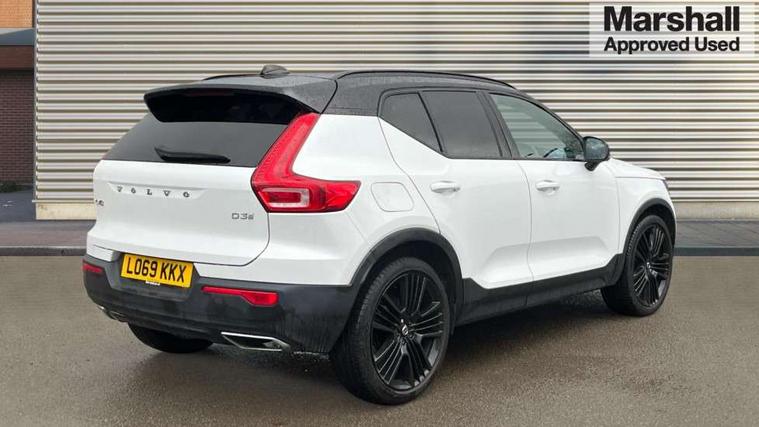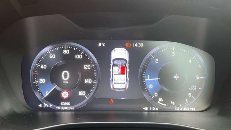 12.3" Active TFT crystal driver's instrument display, 9" centre console portrait touch screen, Adjustable steering wheel force, Bluetooth hands free telephone kit, Drive mode selector, Lane keep assist with driver alert control, Oncoming Lane Mitigation, Sensus navigation with European mapping and traffic information, Speed limiter, Speed sensitive steering, Voice control system, Volvo on call, DAB Digital radio, Steering wheel mounted remote controls, Adaptive brake lights with high level LED brake lights, Auto dimming interior mirror, Automatic headlamp levelling, Black stone door mirrors, Black stone roof, Colour coordinated auto folding and heated power door mirrors, Dark tinted glass for rear windows + rear screen + side luggage area window, Dual integrated exhaust pipes with high gloss black surround, Electrically adjustable and heated door mirrors, Embossed rear side roof pillar, Front and rear electric windows, Front tread plates, High gloss black front and rear skid plate, High gloss black lower front bumper, High gloss black mesh front grille with high gloss black surround, High gloss black roof rails, High gloss black window trim, Home safe and approach lighting, LED front fog lights, LED Headlights + Active high beam incorporating daytime running lights, Rain sensor windscreen wipers, Rear wiper, Roof antenna, Roof spoiler, Visible VIN plate, 12V socket in front tunnel console and luggage compartment, 3 spoke leather steering wheel with chrome trim, 60/40 split folding rear seat, A-pillar parking ticket holder, Ambient front door and instrumental panel lighting, Black headlining, Bright metal luggage threshold, Centre console cupholders and storage, Driver seat height/tilt/lumbar adjust, Driver's side lower dashboard credit card storage compartment, Extended front seat cushions, Front door pocket and front cupholder illumination, Front footwell illumination, Glovebox bag hook, Height/reach adjustable steering column, Illuminated luggage compartment, Illuminated tailgate, Illuminated vanity mirrors + ticket holder, Isofix attachments on outer rear seats, Leather coloured key integrated remote, Leather/nubuck upholstery, Load protection net, Lockable/illuminated glovebox, Multicolour theatre lights, Passenger seat adjustable for lumbar support, Perforated leather gearknob, Rear armrest / integral cup holders / storage tray, Rear reading and courtesy lights, Sports pedals, Underfloor stowage compartment, 3x3 point rear seatbelts, City safety, Drivers knee airbag, DSTC-Dynamic Stability and Traction Control, Dual stage driver/passenger airbags, Electronic parking brake with auto hold, Fasten seatbelt reminder, First aid kit, Hill descent control, Hill start assist, Inflatable curtain, Passenger airbag cut-off device, Road sign information display, Run off Road Mitigation, Run off Road Protection, Seatbelt reminder and pretensioners, SIPS (Side Impact Protection System), SIPS airbags, Slippery road and hazard light alert, Tyre pressure monitoring system, Vehicle deceleration control with Anti-lock Brake System, Electronic Brake Distribution and Emergency Brake Assist, Warning triangle, WHIPS whiplash protection system - front, Anti-theft alarm including immobiliser/volume sensor + level sensor, Fuel flap with deadlocking system, Key integrated remote control central locking, Locking wheel nuts, Private locking for tailgate, Cutting edge aluminium inlay,