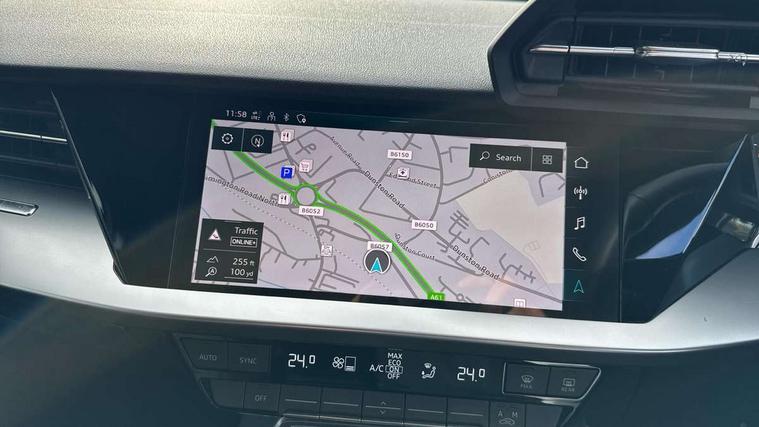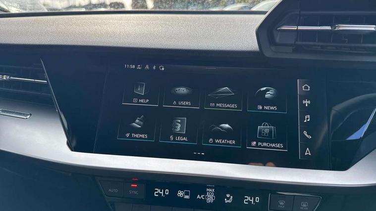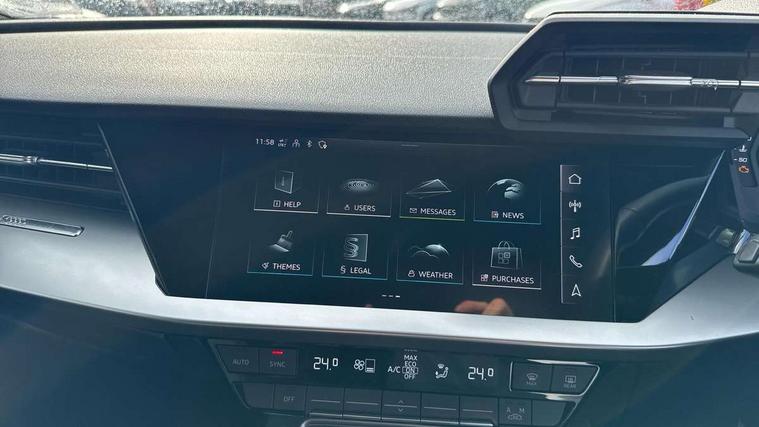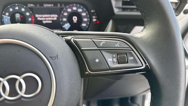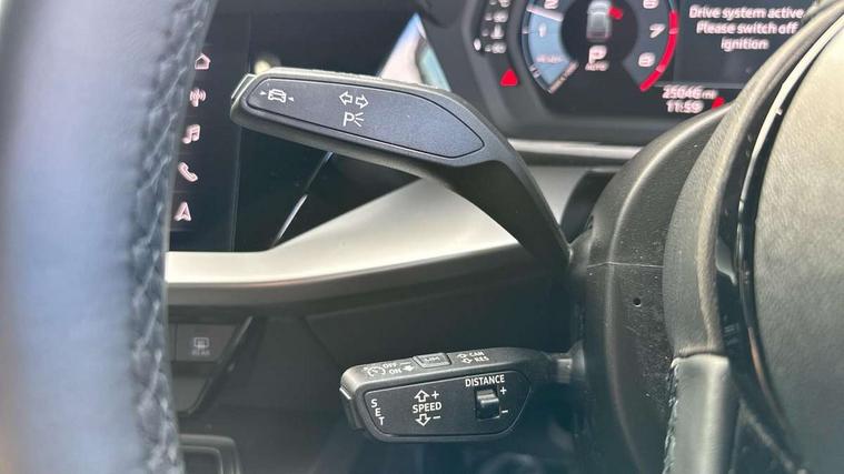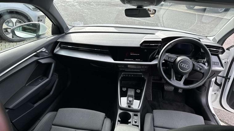 Audi drive select (Auto, Comfort, Dynamic and Individual), Audi smartphone interface, Audi Virtual Cockpit - 10.25" digital and colour instrument cluster, Automatic start/stop system with recuperation, Bluetooth interface, Camera based traffic sign recognition, Collision avoidance assistant, e-Call (emergency call), Electromechanical power speed sensitive steering, Lane departure warning system, MMI Navigation Plus with high resolution 10.1" colour touch screen display, Service indicator, Trip computer, Voice control system with natural language interaction, Standard suspension, 2xUSB-C connection with data and charging functions, 6 passive loudspeakers, DAB Digital radio, 3rd brake light, Acoustic glass windscreen, Aluminium window trim, Auto dimming frameless rear view mirror, Body colour exterior mirrors, Body colour roof spoiler, Electrically adjustable/heated/folding/auto dimming door mirrors with integrated LED indications + kerb view function for passenger side, Front electric windows, LED daytime running lights, LED headlights and halogen rear lights, Light and rain sensors, Rear electric windows, Rear side wing doors, Rear window, rear door windows and rear side windows in clear glass, Rear wiper, 12V socket and storage compartment in front centre console, 3 seat bench in 2nd row, 3 spoke leather multifunction steering wheel with paddle shift, 4 way electrically adjustable lumbar support for driver and front passenger, 60/40 split folding rear seat bench, Dual zone electronic climate control, Front and rear headrests, Front centre armrest, Front door sill trims with aluminium inlay, Front/rear floor mats, Height and reach adjustable steering wheel, Interior lighting - Front and rear roof module including reading lights, glove compartment light and right hand side, Interior lighting - glove compartment light and right hand side, Luggage compartment floor covering, Manual boot compartment lid, Manually adjustable front seats, Routine cloth upholstery with front sports seats, Seat side bolsters, Single front passenger seat, Steel grey cloth headlining, Aluminium interior elements pack - A3 Sportback, LED interior lighting pack - A3 Sportback, Sport styling pack - A3 Sportback, 3x3 point rear seat belts, Driver and front passenger airbag with passenger airbag deactivation, Electronic Stabilisation Control (ESC) including ABS, ASR and EDL, First aid kit with warning triangle and 2 safety vests, Front side airbags with head airbags and interaction airbag, Pre-sense front with pedestrian and cyclist detection, Seatbelt monitoring, Tyre pressure loss indicator, Anti theft alarm, Anti-theft wheel bolts, Electronically operated child locks, Immobiliser, Remote control central locking, Inlays with silk effect paint in platinum grey,