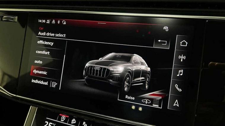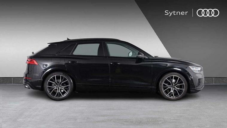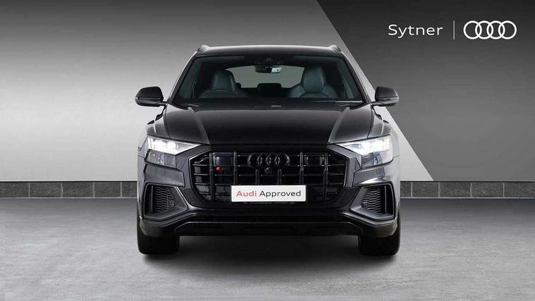 10.1" and 8.6" Dual colour touchscreens, All wheel steering, Audi connect safety and service (e-call), Audi connect with Amazon Alexa Integration, Audi drive select, Audi parking system plus includes 360 degree display with front and rear sensors, Audi smartphone interface includes wireless Apple carplay/Android Auto, Audi virtual cockpit - 12.3" high resolution LCD display with fully customisable instrument cluster, Automatic start/stop system, Electro-mechanical PAS, Low washer fluid indicator, MMI - Multi Media Interface control system, MMI navigation plus with MMI touch, Natural voice recognition, On board computer, Operating buttons in black, glass look with haptic feedback, Power operated tailgate, Rear view camera, Service interval indicator, 48V Mild hybrid technology, 85 litre fuel tank, Quattro all wheel drive with self locking centre differential, S specific Adaptive air suspension, Audi music interface with 2 USB ports with charge and data functions, Audi sound system with 6 channel amplifier, 180 watt amplifying capacity and 10 loudspeakers including subwoofer, Aux-in socket, DAB Digital radio, 3rd brake light, Acoustic windscreen, Audi Beam uses LEDs to project the Audi logo, Audi HD Matrix LED headlights with dynamic front and rear indicators, Auto dimming frameless rear view mirror, Body coloured bumpers, Coming/leaving home lighting function, Electric front+rear windows, Electrically folding auto dimming/adjustable/heated door mirrors with memory function, LED side indicators and kerb view function for passenger side, Gloss black finish for exterior Audi rings and SQ8 logo, Headlight washers, Heat insulating glass in windshield, LED signature daytime running lights, Platinum grey front spoiler lip and diffuser insert, Privacy glass - dark tinted rear and rear side windows from B-pillar backwards, Rain and light sensors, Rear side wing doors, Rear wiper, S specific dual brach chrome tailpipes on both the left and right, S specific front and rear bumpers, S specific side skirts in matt selenite silver, Side air inlet grilles in matt anthracite black, Trim and underbody protection in matt selenite silver, 3 bench rear seats in 2nd row, 4 zone deluxe automatic climate control, 4-way lumbar support for front seats, 40:20:40 split folding rear bench seat, Black cloth headlining, Comfort front centre armrest, Driver seat memory function, Electrically adjustable front seats, Front head restraints, Front/rear floor mats, Heated front seats, Illuminated door sill trims, ISOFIX child seat mounting for front passenger seat and 2 outer rear seats with top tether child seat mounting for all 3 rear seats, LED interior ambient lighting, Luggage compartment sill protection in stainless steel, Rear centre armrest with 2 cupholders, Rear headrests, Single front passenger seat, Stainless steel pedals, Sunvisors with illuminated vanity mirrors, Tool kit, Upper and lower interior elements in leather, leather door armrests, Valcona leather upholstery + super sports seats with S embossed logo, Anthracite black Styling Pack - Q8, 3 point seatbelts on all seats, Audi pre sense front, Child locks on rear doors, Driver and front passenger, front side and curtain airbags, Electromechanical parking brake, Electronic Stability Control (ESC) including ABS, ASR and EDL, Front passenger airbag deactivation, Hill descent control, Hill hold assist, Predictive pedestrian protection, Seatbelt monitoring, Traction control, Tyre pressure loss indicator, Warning triangle and first aid kit, Anti theft alarm with tow away protection, Anti-theft wheel bolts and wheel loosening detection, Immobiliser, Keyless go with remote central locking, Polished oak trim with grey finished, Tyre repair kit,