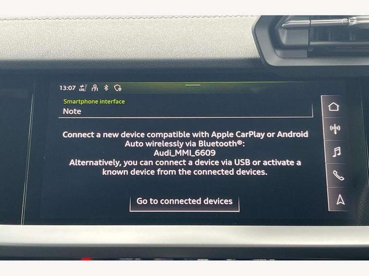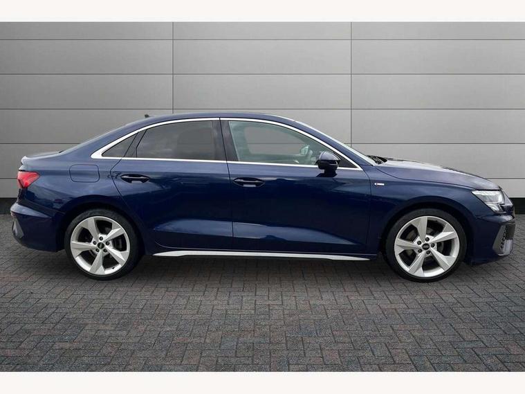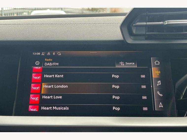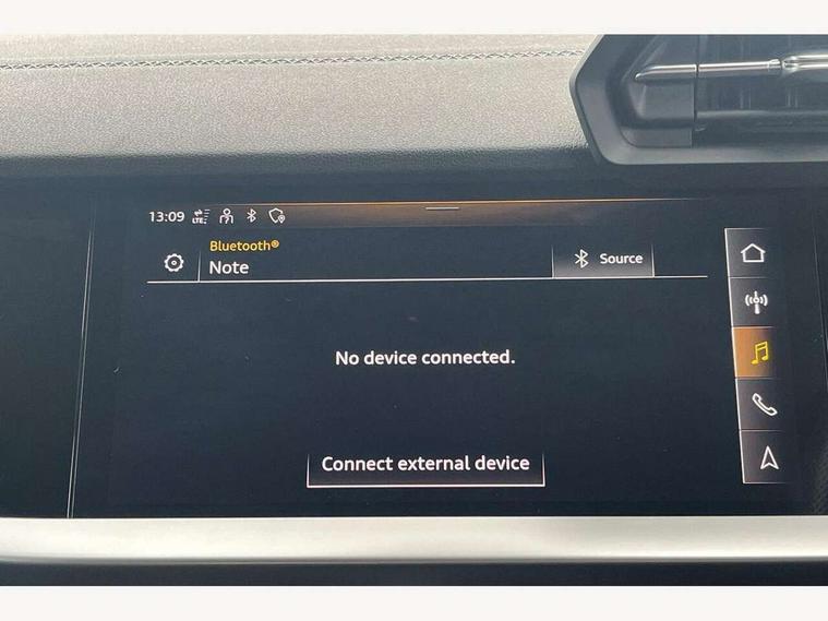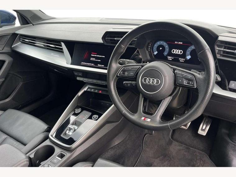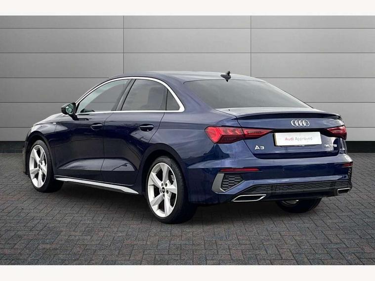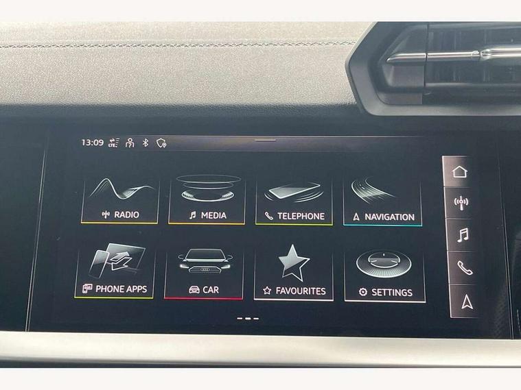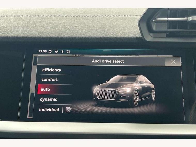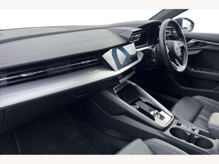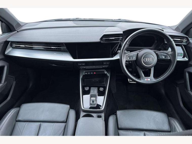 Audi connect emergency call and service, Audi drive select (Auto, Comfort, Dynamic, Efficiency and Individual), Audi smartphone interface, Audi Virtual Cockpit - 10.25" digital and colour instrument cluster, Automatic start/stop system with recuperation, Bluetooth interface, Collision avoidance assistant, Electromechanical power speed sensitive steering, Lane departure warning system, MMI Navigation Plus with high resolution 10.1" colour touch screen display, Service indicator, Voice control system with natural language interaction, 2x USB Type C ports (for charging and data transfer), 6 passive loudspeakers, CD player, DAB Digital radio, 3rd brake light, Acoustic glass windscreen, Aluminium window trim, Auto dimming frameless rear view mirror, Electrically adjustable/heated/folding/dimming door mirrors with kerb view includes integrated LED indications + kerb view function for passenger side, Front electric windows, Illuminated door sills with aluminium inserts at the front with S logo, LED daytime running lights, LED headlights with LED rear lights and dynamic rear indicators, Light and rain sensors, Model and engine designation badges at rear, Privacy glass - dark tinted rear window, rear door and side windows, Rear boot, Rear electric windows, Rear side wing doors, S line bumpers, S roof spoiler, 12V socket and storage compartment in front centre console, 3 seat bench in 2nd row, 40/20/40 split folding rear seat bench with cupholder, Black cloth headlining, Dual zone electronic climate control, Front and rear centre armrest in leather, Front and rear headrests, Front/rear floor mats, Height and reach adjustable steering wheel, Illuminated vanity mirror, Interior lighting - glove compartment light and right hand side, Luggage compartment floor covering, Manual boot compartment lid, Manually adjustable front sport seats, Seat side bolsters, Single front passenger seat, Stainless steel pedals and front footrest in black, Twin leather upholstery with front sports seats S embossed logo, Aluminium interior elements pack - A3 Saloon, S line styling pack - A3 Saloon, 3x3 point rear seat belts, Driver and front passenger airbag with passenger airbag deactivation, Electronic Stabilisation Control (ESC) including ABS, ASR and EDL, First aid kit with warning triangle and 2 safety vests, Front side airbags with head airbags and interaction airbag, Hill hold assist, Pre-sense front with pedestrian and cyclist detection, Seatbelt monitoring, Tyre pressure loss indicator, Anti theft alarm, Anti-theft wheel bolts, Immobiliser, Manual child locks, Remote control central locking, Aluminium air vent surrounds, Aluminium trim elements, Dark spectrum aluminium inlays, accent surfaces in the dashboard and centre console in platinum grey silk effect paint finish,