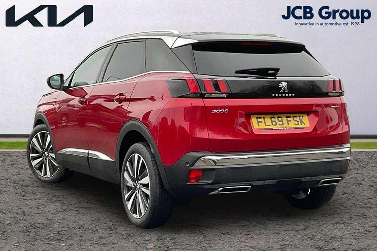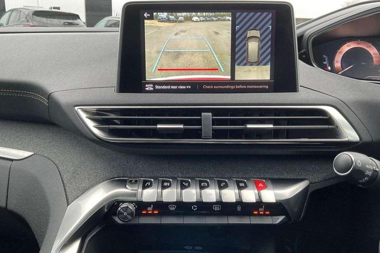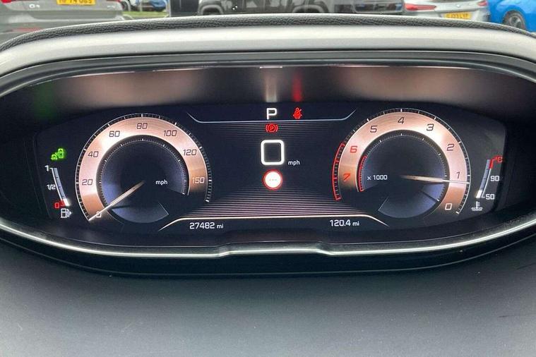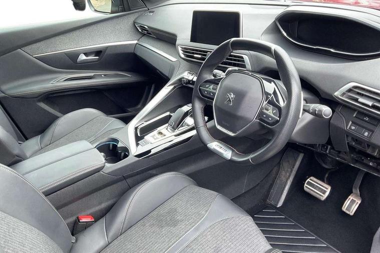 'Lights On' Reminder warning buzzer, 3D connected navigation + voice control + Peugeot connect SOS and assistance, Bluetooth telephone facility, Digital clock, Exterior temperature indicator with ice warning, Front and rear parking sensors, Lane departure warning system, Mirror screen with mirror link, apple carplay and android auto, Multi function trip computer, PEUGEOT i-Cockpit with 8.0" capacitive touchscreen in centre console, PEUGEOT i-Cockpit with amplify (choice of two configurable interior ambiences), PEUGEOT i-Cockpit with compact sports steering wheel, PEUGEOT i-Cockpit with configurable 12.3" Head-up digital instrument panel, Smartphone charging plate, Speed limit recognition and recommendation, Sports button, Dynamic stability control and electronic anti-skid system, DAB Digital radio, Steering column mounted multifunction controls, USB socket, 2 X Rear number plate lights, Aluminium longitudinal roof bars, Automatic hazard light activation upon heavy brake application, Automatic triggered rear windscreen wiper in reverse gear, Black and chrome front wing trim, Black bumper protection plate, Body colour door handles, Body colour rear spoiler with stainless steel edging trim, Body coloured bumpers, Body protectors (bottom of front and rear bumpers + wheel arches + protection at bottom of doors) in black, Chrome bumper inserts, Chrome front fog light trim, Chrome radiator grille and surround, Chrome rear bumper facia, Chrome side window trim, Dark tinted rear side windows + tailgate window, Door mirror mounted LED Peugeot lion approach lights, Electric operated/heated door mirrors, Front windscreen wiper with magic wash cleaning system, Full LED headlights with LED fog lights with static cornering function, sports front bumper and grille, Gloss black finish B and C pillar, Gloss black rear cluster connecting strip, Gloss black windscreen surround, GT Line emblem in satin copper, Headlights left on audible warning, Heated rear windscreen with integrated antenna, LED daytime running lights, LED sequential scrolling front indicators, LED side indicator lights integrated into door mirrors, Lion grey front bumper scuff plate, Nera black door mirrors, One touch electric front/rear windows with pinch protection, Panoramic opening glass roof, Power folding door mirrors with blind spot detection indicator and auto dipping function in reverse gear, Radiator grille in chrome edge trim with chequered design and black 'PEUGEOT' lettering, Rear LED Peugeot signature 'Claw Effect' lights, Sports front bumper, Stainless steel roof arches, Twin exhaust tailpipe, 1/3 to 2/3 split folding rear seats, 12V Sockets in dashboard, rear cabin and load area, 2 cupholders in front centre console, 2 rear reading spotlights, 230V socket on rear centre console, 2x Rear coat hooks, 3x Isofix child seat fittings in the front passenger and outer rear seats, 4 Grab handles retractable and damped, 4 Lashing eyes in boot, Aikinite stitching in armrest, gear lever and dashboard facia, Automatic gear lever in satin chrome, Blue ambient lighting for connecting zone, Blue ambient lighting to front door panels, central storage and cupholders, Blue ambient lighting to head up instrument panel, Centre front armrest with butterfly wing opening and illuminated storage compartment, Driver and front passenger seat height adjustment, Driver seat manual adjustment, Dual zone automatic climate control, Electric power steering with reach and rake adjustable steering column, Fixing rings 4 in load compartment, Flocked front door pocket interior with blue ambient lighting, Flocked glovebox interior, Fold flat front passenger seat with picnic table, Footwell illumination, Front headrests, Front interior light with 2 reading spotlights and rear interior light with timer, Front seat back map pockets, Gear shift indicator, Height adjustable headrests, Illuminated glovebox, Illuminated vanity mirrors, LED interior lighting in storage spaces and load area, Mistral floor mats with Aikinite contrast stitching, Mistral full grain perforated leather steering wheel with aikinite stitch detail and satin chrome 'GT Line' emblem, Rear armrest with ski flap and two cup holders, Rear centre console ventilation system, Rear headrests, Reclining front seats, Roof LED interior lighting, Roof lining - Mistral black, Satin chrome dashboard trim, Satin chrome digital instrument panel and touchscreen trim, Satin chrome front door panel recess trim, Satin chrome interior door handles, Satin chrome scorpion's tail and toggle switch trim, Seatbelt not fastened audible and visual alert for front seats, Seatbelt unfastened on the move audible and visual alert for front and rear seats, Stainless Steel Scuff Plates, Two position boot floor, Safety pack - 3008, Safety Plus Pack - 3008, Visibility pack - 3008, 3x Rear three-point retractable seatbelts with force limiters in the outer rear seats, Adaptive driver and front passenger airbags with passenger airbag deactivation function, Anti-lock braking system with electronic braking distribution and emergency braking assistance, Auto city emergency braking, Driver and front passenger side airbags, Driver SMART airbag, Electric child locking functionality on rear windows and doors, Electric parking brake, ESP with ASR, Front and rear curtain airbags, Front optimised safety headrests and 3 x rear retractable headrests with height adjustable, Front passenger SMART airbag with deactivate switch, Front three point retractable seatbelts with pre tensioners and force limiters, Front ventilated disc brakes and rear disc brakes, Height adjustable front seatbelts, Hill start assist, Tyre pressure sensor, Anti theft alarm, Automatic door lock/re-lock after 30 seconds, Central locking button on dash, Deadlocks, Electric tailgate with Peugeot open & go system, Electronic immobiliser, Locking wheel bolts, Remote control central locking with two plip keys, Brumeo fabric Dashboard, front and rear door panel finish, Satin chrome