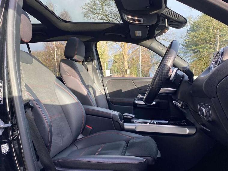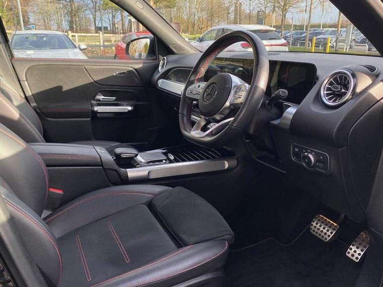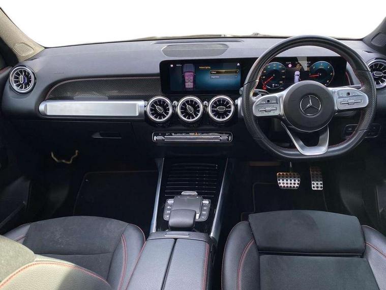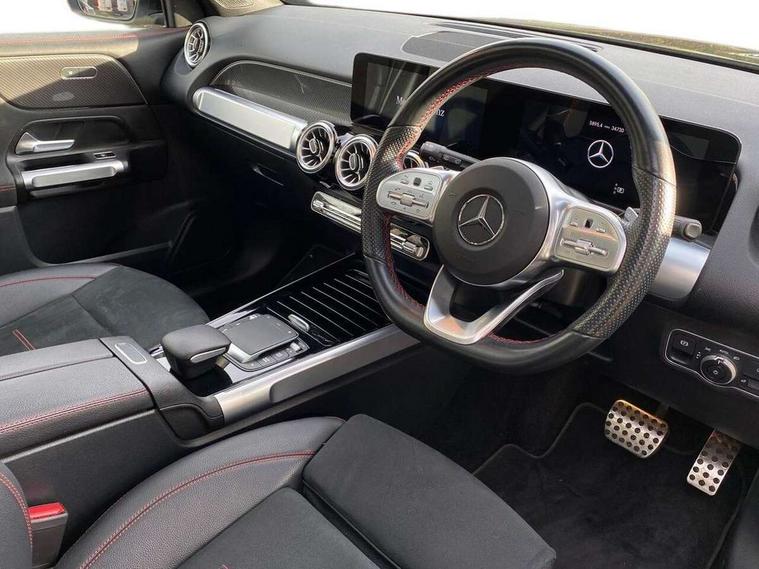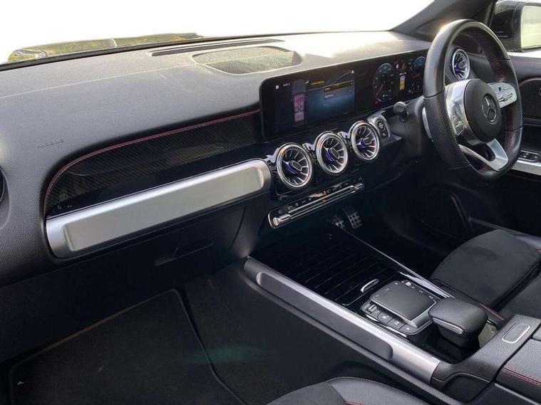 10.25" Digital instrument cluster display screen, 10.25" Digital media screen display, Attention assist - Monitors steering behaviour and long journey fatigue, Brake pad wear indicator warning light, Car wash mode, DYNAMIC SELECT with a choice of driving modes (ECO, Comfort, Sport and Individual), ECO start/stop function, Fluid level warning indicator for fuel, oil, coolant and washer fluid, Hard disk navigation, Hey Mercedes Voice activation, Lamp failure indicator, Mercedes me connect including emergency call system, accident recovery, breakdown and maintenance management, Mercedes me remote services, Outside temperature gauge, Owners manual and service booklet in English, Parameter steering system, Pre-installation of private car share, Radio aerial integrated into front and rear windshields, Service indicator (ASSYST), Smartphone integration with Apple CarPlay and Android auto, Traffic sign assist, Trip computer in multifunction display with current consumption indicator, 23.8 litre AdBlue fuel tank, Comfort suspension, Rear axle multi-link, DAB digital radio tuner, MBUX multimedia system with DAB digital radio and touchpad including satellite navigation, Mercedes Benz sound system (225 W) with 10 speakers, 1 central speaker, speakers on doors, a tweeter on door, one sub woofer + boost amplifier, Pre installation for Mercedes Benz Link, USB (type C) port in front stowage compartment, USB (type C) ports (2) in stowage compartment, Adaptive brake lights, Aerial for GPS, AMG bodystyling door panels black grained with chrome plated inserts, AMG bodystyling front apron with chrome splitter, AMG bodystyling rear apron with diffuser optics and chrome trim element, AMG specific front and rear bumper including underride guard in high gloss chrome, Auto headlights, Beltline strips and weather strip in chrome, Body coloured door handles with chrome insert for keyless entry, Body coloured door mirror caps, Electric adjustable and heated door mirrors with integrated LED side indicators, Electric panoramic glass sunroof, Exhaust system with dual flow exhaust pipes (non-functional), Front and rear electric windows, Headlamp assist automatic headlamp activation, Heated glass rear windscreen + timer control, High level LED third brake light, Interior mirror with black reading lamps and frameless, LED daytime running lights, Multibeam LED headlamps and tail lamp with adaptive high beam assist, Polished aluminium roof rails, Privacy glass with dark tinting on rear side windows and rear window, Radiator grille with pins in chrome and single louvre with chrome insert, Rain sensor windscreen wipers, Rear fog lamp, Rear side wing doors, Rear wiper, Two visible tailpipe trim elements exhaust, 3 seat bench in 2nd row, 3 spoke multifunction sport steering wheel in nappa leather, Air conditioning - Two zone thermotronic luxury automatic climate control with display, AMG sports pedals with brushed stainless steel surfaces and black rubber studs, Artico man-made leather/Microfibre Dinamica upholstery with red contrast stitching, Automatic child seat recognition sensor, Black floor mats with AMG lettering, Black roof lining, Fore/aft adjustment rear seats, Freight packaging with tie-down hooks, Front centre armrest with stowage, Front door sills with illuminated changeable cover, Front passenger grab handle with brushed side silver chrome, Front sports seats with adjustable head restraints, Galvanished gear shift paddles on steering wheel, Heated front seats, Height/reach adjustable steering column, Interior lighting - 64 colour Ambient lighting, Luggage net on driver/front passenger seat backrest, Rear armrest with two integral cup holders for drinks, Rear seat easy entry, Single front passenger seat, Stowage compartment in centre console, Stowage compartment with retractable cover, Third row of seats for two people on rear seat, Touchpad on center console, Twin front cup holders, Two outer rear seat isofix and top tether child seat fixing points, Interior lighting with light and sight pack - GLB, Keyless go pack - GLB, Mirror pack - GLB, Off-road engineering package - GLB, Parking pack - GLB, 3 rear 3 point seatbelts, Active bonnet pedestrain safety measure which detects an impact and raises bonnet by 65mm, Adaptive brake assist with hold function and hill start assist, Airbags - kneebag for driver, Anti-lock braking system (ABS) with brake assist, Childproof locks manually operated for rear doors and electrically operated for rear power windows, Crash responsive emergency lighting, Curve dynamic assist, Driver and front passenger head and sidebags, Driver and front passenger windowbags, Dual stage driver and front passenger airbags, Electronic parking brake, Electronic stability programme with acceleration skid control, Front and rear seatbelt reminder, Front brake callipers with Mercedes Benz lettering, Front passenger seat occupancy sensor, Perforated and ventilated front brake discs, Tyre pressure monitoring system, Warning triangle and first aid kit, Remote central locking and crash sensor with emergency opening function, Thatcham category 1 alarm system with immobiliser and interior protection, Urban guard vehicle protection - Anti theft alarm system, tow away protection with visual and acoustic warning and alarm siren, Vehicle key with decorative surround in chrome, Black air vents with chrome surround, Carbon structure trim, 19" AMG 5 twin spoke light alloy wheels painted in tantalite grey with high sheen finish, Summer tyres, Tirefit tyre sealant kit,