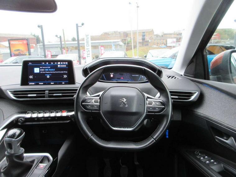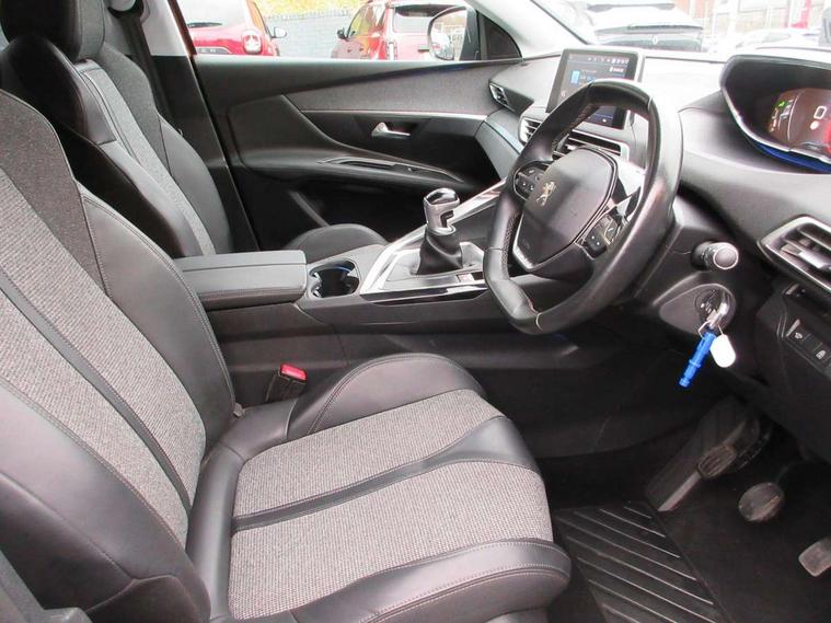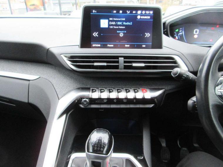 'Lights On' Reminder warning buzzer, 3D connected navigation + voice control + Peugeot connect SOS and assistance, Blind spot monitoring, Digital clock, Driver alert system, Exterior temperature gauge, Lane departure warning system, Lane keep assist, Mirror screen with mirror link and car play, Multi function trip computer, Peugeot i-cockpit with amplify configurable interior ambiences, headup display with distance alert, touch screen, Programmable cruise control and speed limiter, Rear parking aid, Speed sensitive power steering, DAB Digital radio, Peugeot connect with USB and bluetooth, Radio/MP3 player, Steering column mounted multifunction controls, Automatic activation of hazard warning lights, Black side window trim, Body colour door handles, Body colour door mirrors, Body colour rear spoiler, Body coloured bumpers, Chrome bumper inserts, Chrome front fog light surround, Chrome radiator grille and surround, Dark tinted rear windows, Electric folding door mirrors with courtesy approach lighting, Electric operated/heated door mirrors, Heated rear windscreen, LED daytime running lights, LED rear lights, One touch electric front/rear windows, Peugeot smart beam assist, Rear wiper, 1/3 to 2/3 split folding rear seats, 3 x 12V power sockets, 4 Lashing eyes in boot, Blue ambient lighting, Centre console cupholder, Centre front armrest with illuminated cool compartment, Cupholders - 2 in rear centre armrest, Dual zone automatic climate control, Fold flat front passenger seat with picnic table, Front headrests, Front reading lights, Front seat back map pockets, Gear shift indicator, Grab handles, Height adjustable headrests, Height adjustable passenger seat, Height/reach adjust steering wheel, Illuminated glovebox, Illuminated vanity mirrors, Instrument panel light dimmer, ISOFIX on front passenger and rear outer seats, LED interior illumination, Mistral full grain leather steering wheel, Rear centre armrest/ski flap, Rear coat hook, Rear headrests, Rear reading lights, Reclining front seats, Roof lining - Salin light grey, Satin chrome interior door handles, Visibility pack - 3008, 3 point front seat belts, 3 point seatbelts on all rear seats, ABS + EBD + EBA, Auto city emergency braking, Driver SMART airbag, Electronic parking brake, ESP with ASR, Front and rear curtain airbags, Front and rear pre-tensioning and force limiting seatbelts, Front passenger SMART airbag with deactivate switch, Height adjustable front seatbelts, Hill start assist, Seatbelt warning lamp and buzzer, Side airbags x 2, Tyre pressure sensor, Automatic door lock/re-lock after 30 seconds, Central locking button on dash, Child lock control of rear doors and windows, Deadlocks, Locking wheel bolts, Perimetric and volumetric anti theft alarm, Remote control central locking with two plip keys, Rolling code transponder immobiliser, Brumeo fabric interior trim,