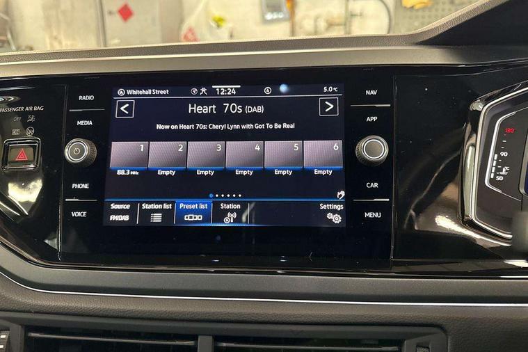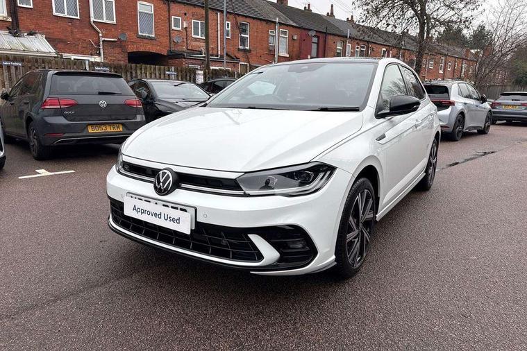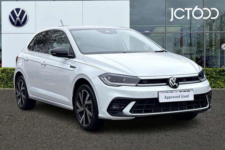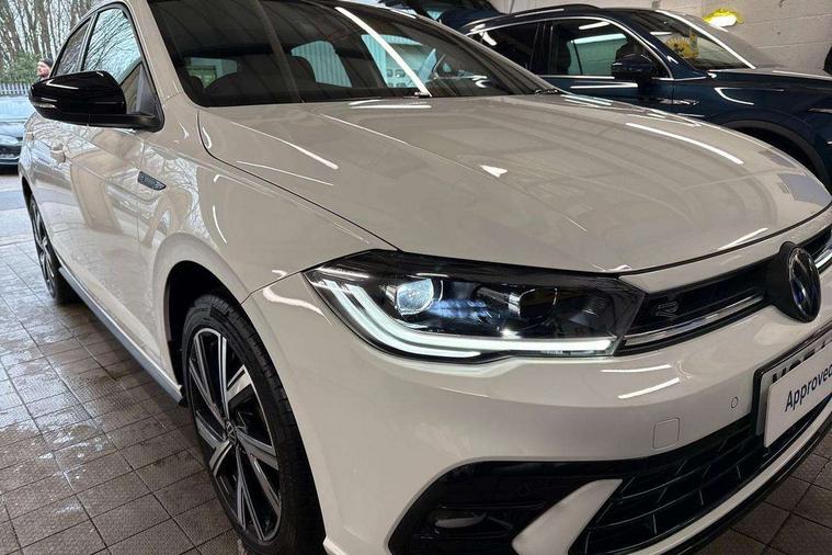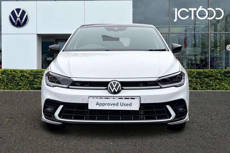 Adaptive cruise control with follow-to-stop and speed limiter, Advanced driver attention and drowsiness monitor, Bluetooth mobile phone interface, Digital Cockpit Pro with 10.25" Display, Dynamic road sign display, Emergency call service, Multifunction camera, Power assisted speed sensitive steering, Preparation for We connect and We connect plus, Speedo and rev counter, electronic odometer, trip, service interval display and fuel gauge, Standard rear axle, Travel Assist - Lane keeping system and traffic jam assist, Travel assist including emergency assist, Trip computer, Warning signal and warning light for front and rear seatbelts not fastened, Washer fluid level indicator, Wireless app connect, Front wheel drive, Rear shock absorpion, Start-stop system with battery regeneration (recuperation - energy recovery during braking), DAB Digital radio, Diversity antenna for FM reception, Front and rear 6 speakers, Body colour bumpers, Body colour door handles, Electric front windows, Front scuff plates with Black edition logo, Heat insulating glass windscreen, Power folding adjustable/heated exterior mirrors and front passenger exterior mirror lowering function, Rear electric windows, Rear fog light, Rear side wing doors, Rear windscreen washer and wiper with interval delay, Third brake light, 12V power socket in centre console, 2 USB-C ports in the front, 2 USB-C charging sockets on the center console in the rear, 3 rear head restraints, 60/40 split folding rear seat and rear seat bench not split, Air care climatronic air conditoning system with active combination filter and 2-zone temperature control, Black roof lining, Carpet mats, front and rear, Chrome plated radiator grille inserts, air vent surrounds and light switch surrounds, Door and side trim panel, Driver and front passenger seat height adjustment, Driver/passenger sunvisors with illuminated vanity mirrors, Front centre armrest, Front footwell illumination, Front seat backrest storage pockets, Front sports comfort seats, Handbrake lever handle in leather, Headliner in recycled material, Heated front seats, Isofix child seat preparation easy-fit (for two outer rear seats, and front passenger seat) compatible with I-size, Karoso artvelours cloth upholstery, Leather trimmed gear knob, LED interior light with switch off delay and dimmer, 2 reading lights front and rear, Luggage compartment cover, Luggage compartment floor, Luggage compartment lighting, Lumbar adjustment for front seats, Single front passenger seat, Stainless steel pedals, Standard pedal cluster, Three spoke leather wrapped multifunction steering wheel with shifting paddles, Black roof pack - Polo, IQ LED matrix headlights pack - Polo, Light and sight pack - Polo R-Line/Black Edition, 3 point height adj front seatbelts + pretensioners, 3x3 point rear seatbelts, ABS, Driver and front passenger airbag with front passenger airbag deactivation, Drivers and front passengers safety optimised head restraints, ESC (Electronic stability control) + EDL (Electronic Differntial lock) and ASR (Traction control), Extended and predictive pedestrian/ cyclist protection, Front curtain and side airbags with center airbag, Front/rear disc brakes, Hill hold control, Manual child lock in rear doors, Single tone horn, Tyre pressure loss indicator, Alarm with interior protection, Anti-theft alarm system with interior monitoring, backup horn, and towing protection, Anti-theft wheel bolts, Electronic engine immobiliser, Black dashboard, Chrome applications on rotary light, mirror adjustment, window regulator switches, outlet with frame in black, Dark grey anodised matt decorative inserts in dash and front door panels, 17" York alloy wheels, Low rolling resistance tyres,