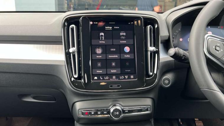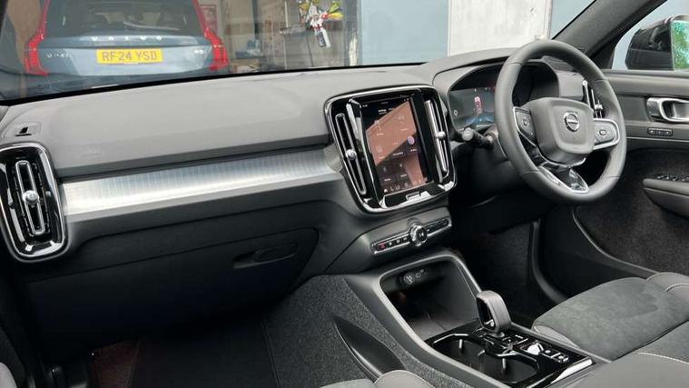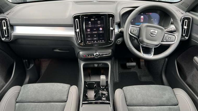 12.3" Progressive Driver Display, 9" centre console portrait touch screen, Adjustable steering wheel force, Android auto (Wired), Apple carplay (wired), Bluetooth handsfree system, Driver alert control, Driver assistance (pilot assist and adaptive cruise control), Driver awareness - Blind spot information system with steer assist, cross traffic alert with autobrake and rear collision warning and mitigation, E-call, Front and rear parking sensors, Front park assist, Google automotive services - Enabled entertainment apps, navigation with google maps, voice recognition with google assistant, Hands free power tailgate, Intelligent speed assistance, Lane keeping aid, Oncoming Lane Mitigation, Speed sensitive steering, Volvo cars services with app - Driving journal, emergency and breakdown call, engine remote start, remote door locking/unlocking and vehicle dashboard, Wireless/Inductive Mobile Phone Charging, Automatic transmission with start/stop and manual change functions, Dynamic chassis, DAB Digital radio, Steering wheel mounted remote controls, Adaptive brake lights with high level LED brake lights, Auto dimming feature for exterior door mirrors, Auto dimming interior mirror, Auto folding and heated power door mirrors, Automatic headlamp levelling, Automatic LED Headlights + Active high beam incorporating daytime running lights, Front aluminium tread plates, Front and rear electric windows, High gloss black front and rear skid plate, High gloss black front bumper deco, High gloss black mesh front grille with high gloss black surround, High gloss black window trim, Home safe and approach lighting, Integrated roof rails in high gloss black, LED front fog lights, Puddle lights, Rain sensor with automatic windscreen wiper activation, Rear side wing doors, Rear wiper, Roof antenna, Roof spoiler, Visible VIN plate, 12V socket in front tunnel console and luggage compartment, 2-Zone electronic climate control with CleanZone air quality system and pollen filter, 3 seat bench in 2nd row, 3 Spoke tailored steering wheel with chrome trim, 60/40 versatile split folding rear seat, Centre console cupholders and storage, Charcoal carpet and floor mats, Charcoal headlining, Connect suede textile/microtech upholstery, Flexible load floor and grocery bag holder, Front headrests, Front seat cushion extensions, Glovebox bag hook, Heated front seats, Height adjustable passenger seat, Height/reach adjustable steering column, High gloss centre tunnel deco, High level illumination - Front door pocket, front side step (under door), tailgate, instrument panel, front door inlay, rear courtesy&reading lights, Integrated waste bin, Isofix attachments on outer rear seats, Load cover, Load protection net, Mid level illumination - Front footwell, luggage & glovebox compartment, front cabin courtesy & reading lights, illuminated vanity mirrors+ticket holder, Multi directional lumbar support for driver and passenger seat, Power driver seat with memory + exterior mirrors memory, Rear armrest with cupholders, Rear headrests, Single front passenger seat, Underfloor luggage compartment storage, Climate pack without heated front seats - XC40, 3x3 point rear seatbelts, City safety with steering support with Pedestrian + cyclist + front collision warning with full auto brake and rear auto brake, Driver and passenger airbags, Drivers knee airbag, Electronic parking brake with auto hold, First aid kit, Front and outer rear seatbelt reminder and pretensioners, Front seats SIPS airbags, Hill descent control - Off-road drive mode, Hill start assist, IC (Inflatable Curtains) - Full Length, Passenger airbag cut-off device, Power child locks on rear doors, Road sign information display, Run off Road Protection, SIPS (Side Impact Protection System), Slippery road and hazard light alert, Stability and Traction Control with Spin control, Engine Drag Control and Corner Traction Control, Tyre pressure monitoring system, Vehicle deceleration control with Anti-lock Brake System, Electronic Brake Distribution and Emergency Brake Assist, Warning triangle, WHIPS whiplash protection system - front, 2 x Key integrated remote control central locking including with deadlocking system and auto open/close windows, Anti-theft alarm including immobiliser/volume sensor + level sensor, Keyless drive includes keyless entry and keyless start, Locking wheel nuts,