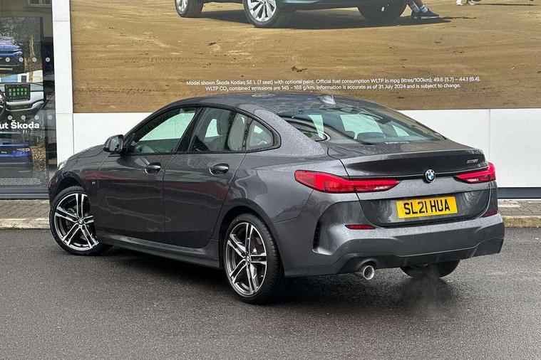Active guard plus, Attentiveness assist, Auto start-stop, BMW Intelligent Personal Assistant, BMW Live Cockpit Professional with 10.25" high resolution instrument and control display, BMW Online services, BMW operating system with 7.0 mid interface, BMW Teleservices, Check Control warning system for monitoring of lights and door/luggage compartment open warning, iDrive controller with touch function and 7 short cut favourite buttons on centre console, Integrated navigation data with map data via USB +features such as 3D landmarks and micro city models, Integrated owners handbook, Intelligent voice assistant, M Sports steering, On board computer - average speed+fuel consumption, service interval, clock/date, odometer/trip meter, outside temperature display and ice warning, Optimum shift indicator, Personal Profile, Pull away assistant, Speed limiting function, Aluminium lightweight construction, Balancer shaft, Double VANOS, Drive performance control with ECO PRO comfort + sport mode, Dual clutch automatic transmission, Electronic differential lock, High precision injection, M Sport suspension with stiffer spring/damper set-up and vehicle lowered by 10mm + twin tube gasfilled shock absorbers and Anti roll bars, Performance Control, Petrol Particulate Filter, VALVETRONIC engine management, 2x USB Type C ports (for charging and data transfer), 4G LTE Connectivity with hard wied 4G network sim card, DAB digital radio, MP3 players and RDS double tuner, Automatically dimming rear view mirror, Body colour door handles, Body colour mirror caps, Chrome 'M' logo side designation, Chrome exhaust single tailpipe, round, Direction indicator side lights integrated exterior mirrors, Electric windows - front and rear, with open/close fingertip control and trap release, Exterior mirrors - electrically folding with anti-dazzle, Fading support, Follow me home headlights, Front and rear bumper system with replaceable deformation elements, Front door sill finishers in black plastic with M designation in metallic look, Heated, electrically adjustable exterior mirror aspheric on driver side, convex on passenger side, High gloss black B pillar finish, High gloss shadow line exterior trim, High level third brake light, LED daytime running lights, LED front fog lights, Lightweight engineering, Model designation on right side of tailgate, Preparation for high beam assistant, Rain sensor with automatic headlight activation, Rear fog lights, Reversing light in rear light cluster, Welcome lighting, 12V power socket in centre console, 2 cupholders in front centre console, 3 rear seat head restraints, 3 spoke M sports design leather steering wheel finished in nappa leather with specific M badge, Anthracite finished floor mats with contrasting surround, Anthracite headlining, Automatic two zone climate control air conditioning, Child seat ISOFIX attachment for two outer rear seats and front passenger seat with anchorage points, Conditioned based service, Dakota leather upholstery with perforation and contrast stitching, Driver and front passenger seat heating, Front and rear door pockets including bottle trays, Front and rear side armrests integrated into door trim, Front armrest foldable with integrated storage compartment, Front centre interior light over interior mirror and rear centre automatic interior light when door is opened/ignition switched off or via remote key, Front head restraints, Front sports seats with electric side bolster adjustment, Glove compartment, Glovebox with light, Luggage compartment lighting, Manually adjustment steering wheel column, Multi-function controls for steering wheel, Shift-by-wire selector shift, Sun visors with vanity mirrors and insert tab, Through loading system with 40/20/40 split folding rear seat, Two lashing eyes, Additional interior lighting pack - 2 Series Gran Coupe, Connected pack professional - 2 Series Gran Coupe, Extended storage pack - 2 Series Gran Coupe, M Sport exterior styling aerodynamics pack - 2 Series Gran Coupe, 2 tone horn, Airbag - Front driver and passenger, front and rear head, front side, curtain head protection, manual deactivation of front passenger airbag possible, Anti lock braking system (ABS) with cornering brake control, BMW emergency call, Brake drying, Braking readiness, Crash sensor activating of airbags, Unlocking doors, hazard warning lights, fuel cut off, interior lighting+activation of safety battery terminal clamp, Dynamic stability control + (DSC+), Dynamic Traction Control - DTC, Electrically operated hand brake, Rear brake discs, Rear child proof door locks, Seat belt security check for driver and front passenger, Seatbelt warning, Side impact protection, Three point seat belts on all seats including front belt stopper, pyrotechnic belt tensioners and belt force limiters, Trailer stability control, Tyre pressure monitoring system, Ventilated front disc brakes, Warning triangle and first aid kit, Central locking switch for all doors, fuel filler cap and luggage compartment, Deadlocking function system to all doors, Drive away locking system on all doors and luggage compartment, Locking wheel bolts, Start/Stop button (illuminated) in centre console with keyless engine start and Auto Start-Stop deactivation button, Thatcham Cat.1 alarm and immobiliser, Two remote control key with integrated key - open/close doors/fuel flap/tailgate +1 button for unlock compartment with M design high gloss black inlay, Contrast stitching on instrument panel, 18" Burnished M double spoke bi-colour alloy wheels finished in orbit grey - style 819M, Reduced rolling resistance tyres,