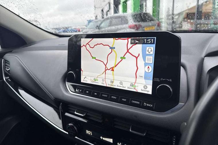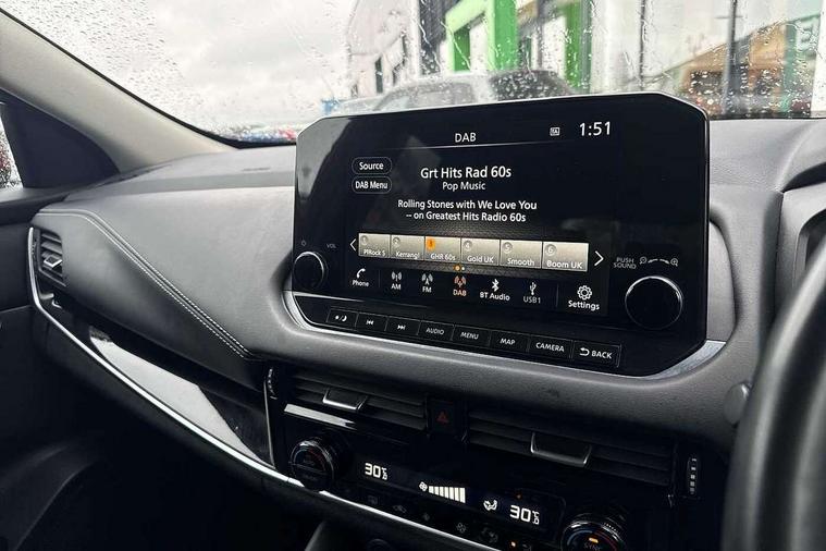 7" High definition full colour TFT screen combimeter, Blind spot warning, Drive modes (sport, normal, eco), Electric speed sensitive power steering, Emergency and breakdown call, Front and rear parking sensors, Google maps services - search, weather, 3D maps and Google street view, Idle stop/start system, Intelligent around view monitor, Intelligent Cruise control (ICC), Intelligent driver alert system, Intelligent forward collision warning, Intelligent lane intervention, Lane departure prevention, Lane departure warning system, Maximum speed limiter, Moving object detection, Nissan connect 9" touchscreen infotainment system, Nissan connect navigation, Push button starter, Rear cross traffic alert, Remote control services - door locks, lights, horn and car locator, Telematics - notifications and connectivity services, TomTom live traffic services, Traffic sign recognition with legal speed adjustment, Trip computer, Virtual personal assistant and firmware over the air capability, Wireless Apple CarPlay and wired Android Auto, 6 speakers, AM/FM audio system with DAB, Bluetooth audio streaming, Front USB connections (Type-A and Type-C), Rear USB charging only ports (Type-A and Type-C), 3rd brake light, Auto dimming rear view mirror, Auto rear wiper when reversing, Body colour mirror caps, Body coloured door handles, Bodyside mouldings, Chrome side window finisher, Door handle with button, Dusk sensor, Electric auto folding door mirrors, Electrically adjustable and heated door mirrors with LED turn indicator, Follow me home headlights, High beam assist, Intelligent auto headlights, LED daytime running lights, LED Headlights, LED rear lights, One touch front and rear electric windows with remote opening and closing, Partially body coloured bumpers, Privacy glass, Rear reversing light (bulb lighting), Rear roof spoiler, Rear side wing doors, Rear styling plate, Shark fin antenna, Splash free rain sensing wipers, Super UV and infrared cut glass, Three blink turn signal, 12v power socket in dashboard and luggage, 2 way electrical driver lumbar adjustment, 2x Rear coat hooks, 3 bench rear seats in 2nd row, 3 rear headrests, 4 folding assist grip, 6 Luggage hooks - 4 on floor, 2 on side, 6-way manually adjustable driver's seat, 60/40 split folding rear seat bench, Ambient lighting around centre console, Centre console storage tray, Chrome interior door handles, Cloth monoform upholstery, Driver and front passenger sunvisors with illuminated vanity mirrors, Driver seat back pocket, Dual zone automatic climate control with pollen filter, Front and rear door storage, Front cupholders x 2, Front door with bottle holders, Glovebox with light, Hard trunk cover, Height adjustable front headrests, Leather steering wheel, Luggage board system, Luggage space lighting, Manually adjustable passenger (slide recline + lifter), Multifunction steering wheel, Passenger seat back pocket, PVC front centre console and armrest, Rear armrest with 2 cupholders, Rear door bottle holders, Single front passenger seat, Soft PVC kneepad, Steering wheel gearshift paddles, Steering wheel switches, Sunglasses holder, Tilt/telescopic adjustable steering wheel, Two rear isofix child seat anchorage points with top tether, Welcome light and console tray ambient lighting, 3x3 point rear seatbelt pretensioners + load limiters, ABS, ESP, EBD and brake assist, Active brake limited slip, Auto hold function, Child locks on rear doors, Curtain and front side, far side airbags, Driver and passenger airbags, Driver, passenger and 2nd row rear seat belt reminder, Electronic parking brake, Front seatbelt pretensioners + load limiters, Height adjustable front seatbelts, Hill start assist, Intelligent blind spot intervention, Intelligent front emergency braking with pedestrian, cyclist recognition and junction assist, Intelligent rear automatic braking, Tyre pressure monitoring system, Vehicle dynamic control, Capless fuel filler, Engine immobiliser, Nissan i-key, Rear bumper with silver insert, Remote central door locking with deadlocking, Thatcham Cat.1 alarm, 18" diamond cut alloy wheels,