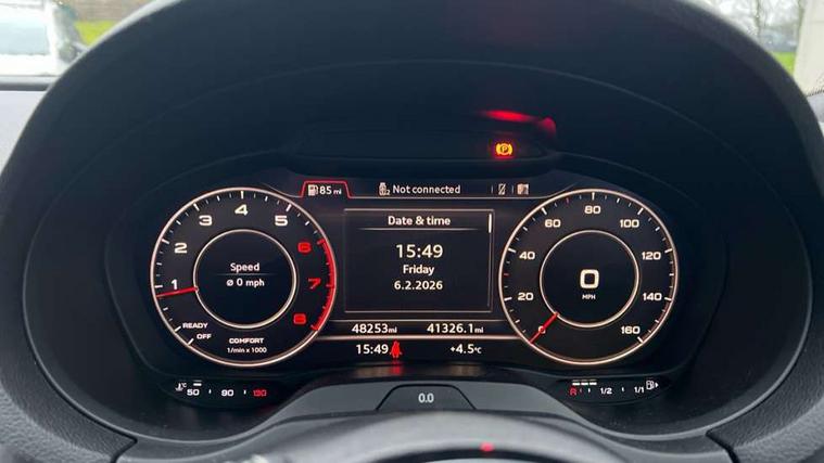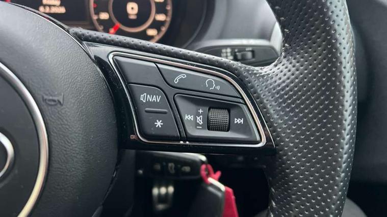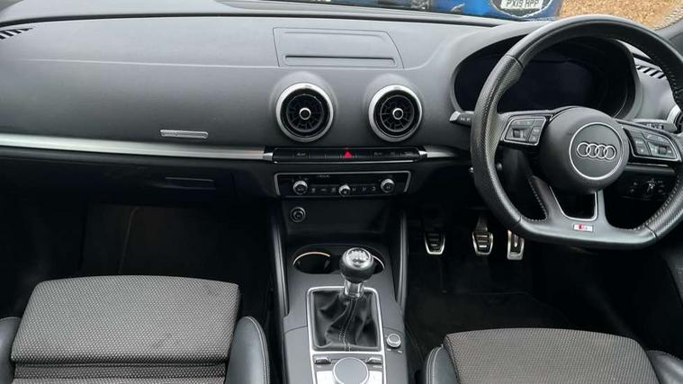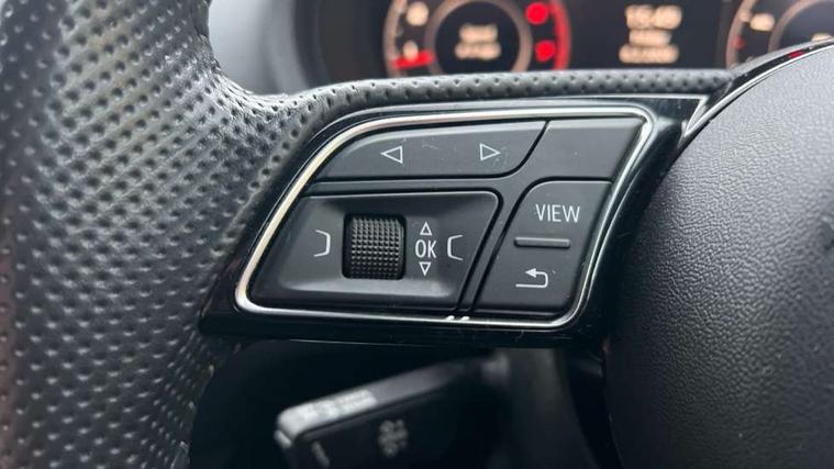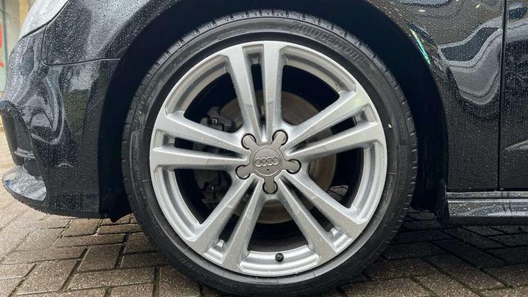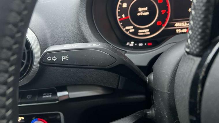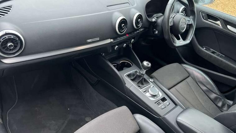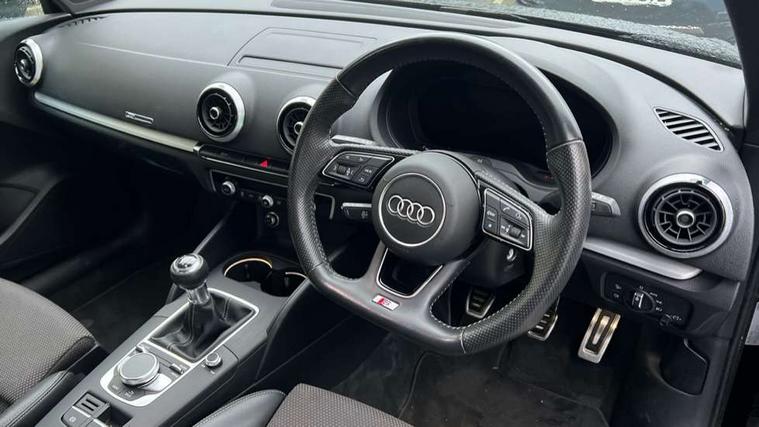 Audi connect, Audi drive select, Audi smartphone interface, Colour driver's information system display, Electro-mechanical PAS, HDD satellite navigation system radio single CD/DVD player MMI control system, Mobile telephone preparation - bluetooth interface, Service interval indicator, Speed limit display, Voice control system, 2 USB ports, Audi music interface, Auxiliary input socket, CD player, DAB Digital radio, MMI radio plus with 7" colour MMI screen and MMI controller, Aluminium window trim, Auto dimming rear view mirror with light and rain sensors, Body colour bumpers, Body colour door mirrors with integral indicators, Body colour roof spoiler, Chrome exhaust tailpipes, Electric front windows, Electric operated/heated door mirrors, Electric rear windows, Heated windscreen washer jets, LED daytime running lights, Matt black radiator grille, Rear wiper, S Line body styling, Sport specific side air inlet grille and diffuser insert, 3 adjustable rear headrests, 3 spoke flat bottomed multi-function leather steering wheel, 4 lashing points to secure luggage, Adjustable front armrest, Black cloth headlining, Dual zone electronic climate control, Front and rear interior lights with delay, Front passenger seat isofix location point, Front sports seats, Front/rear floor mats, Height/depth adjustable steering column, Illuminated glovebox, ISOFIX child seat preparation+airbag deactivation, Jack and tool kit, Stainless steel pedals, Storage compartment in centre console, Storage compartment under front seats, Storage compartments in doors, LED interior light pack - A3/RS3, Non smoking pack - A3, Storage and luggage pack - A3/RS3, 3 point seatbelts on all seats, ABS/EBD, Active bonnet, Active front headrests, ASR, Curtain airbags, Driver and passenger side airbags, Driver/Front Passenger airbags, Drivers knee airbag, EDL, Electromechanical parking brake, ESC - Electronic Stability Control + traction control, Front passenger airbag deactivation, Manual rear child locks, Multi-Collision braking, Seatbelt warning, Tyre pressure warning, Warning triangle and first aid kit, Anti theft alarm, Anti-theft wheel bolts, Remote control central locking, Thatcham category 1 alarm + immobiliser, Aluminium air vent surrounds, Aluminium trim elements, Matt brushed aluminium inlays, Space saver spare wheel,