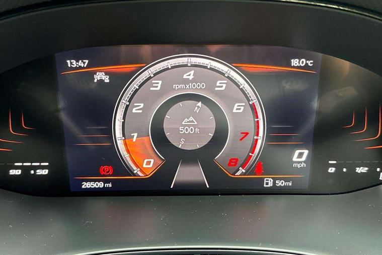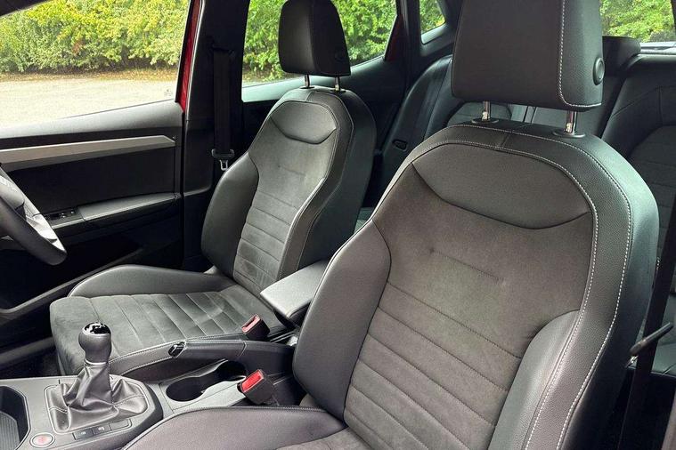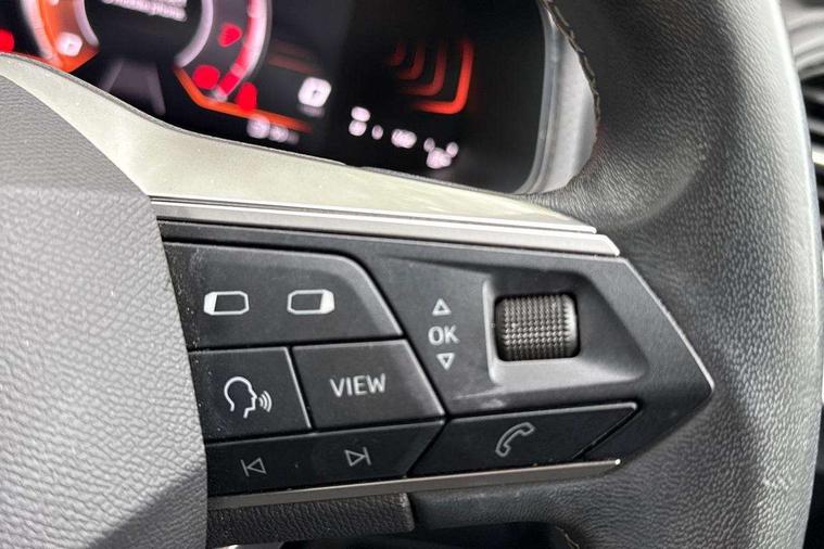 'Lights On' Reminder warning buzzer, 8" Digital cockpit, 9.2" touchscreen navigation system with type C USB socket, Voice control and DAB/AM/FM radio, Auto start and stop system, Bluetooth audio streaming with handsfree system, Digital clock, E-call, Full link smartphone integration with mirror link, wireless apple carplay, Google android auto + USB Type C cable for apple and android devices, Lane assist, Low fuel warning light, Outside temperature gauge, Power Steering, Rear parking sensor, Seat connect with safety, service, remote and online, SEAT logo boot release, Speed limiter, Trip computer, Comfort suspension, Auxiliary input socket, Radio/MP3 player, SD card slot, Steering wheel mounted controls, Anti theft roof antenna, Atom grey door mirrors, Auto dimming rear view mirror, Automatic rain sensing wipers, Body colour bumpers, Body colour door handles, Chrome window surround and upper grille surround, Dark tinted rear windows, Electric adjustable/heated/folding door mirrors, Electric front windows, Electric headlight adjustment, Electric rear windows, Front/rear fog lights, FULL LED automatic headlights with dynamic headlight range control, coming and leaving home, LED daytime running lights, LED tail lights, Rear side wing doors, Rear wiper, Third brake light, 3 seat bench in 2nd row, 60/40 split folding rear seat, Ambient interior lighting, Chrome detailing and black headlining, Comfort seats, Dual zone climate control with combination filter, Front centre armrest, Front courtesy lights, Front cupholders x 2, Front reading lights, Gear shift indicator, Glovebox, Height adjustable front and rear headrests (five), Height adjustable front seats, Height/reach adjust steering wheel, Illuminated air vent surrounds, Illuminated boot, Instrument lighting with brightness control, Isofix, Leather multifunction flat bottomed sports steering wheel, Microsuede cloth upholstery, Passenger sunvisor, Single front passenger seat, Storage pockets on back of front seats, Sunvisors with mirror and driver side card holder, 3 point seatbelts on all 3 rear seats, ABS, Active front headrests, Child locks on rear doors, Electronic stability control, Energy recovery system, Front assist forward collision warning and autonomous emergency braking, Front driver and passenger side airbags with curtain airbag and front passenger airbag deactivation, Hill hold control, Multi-Collision braking, Seat belt reminder for front and rear seats, Tiredness recognition system, Tyre pressure monitoring system, Electronic engine immobiliser, KESSY Keyless entry and go, Locking wheel bolts, Perimeter alarm and interior monitoring with backup horn and tow away protection, Remote central locking + deadlocks, 17" Dynamic machined alloy wheels in Nuclear grey,