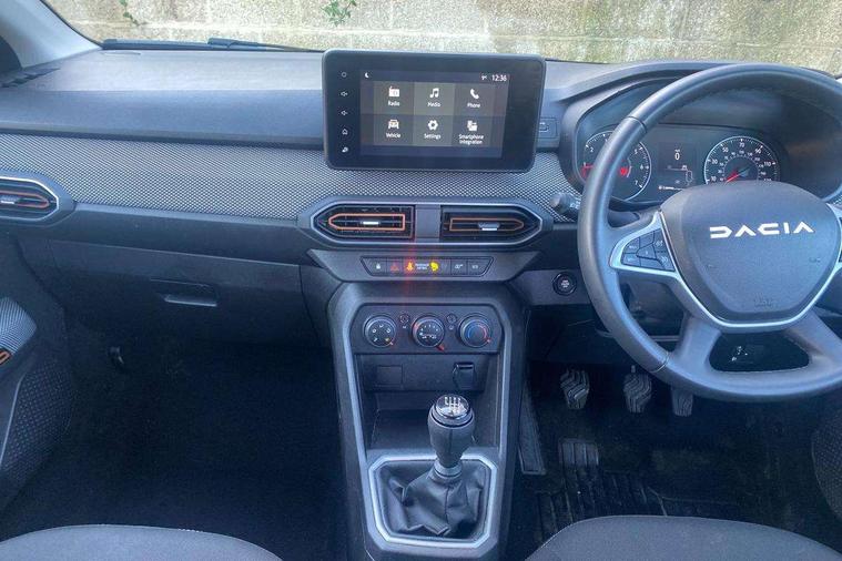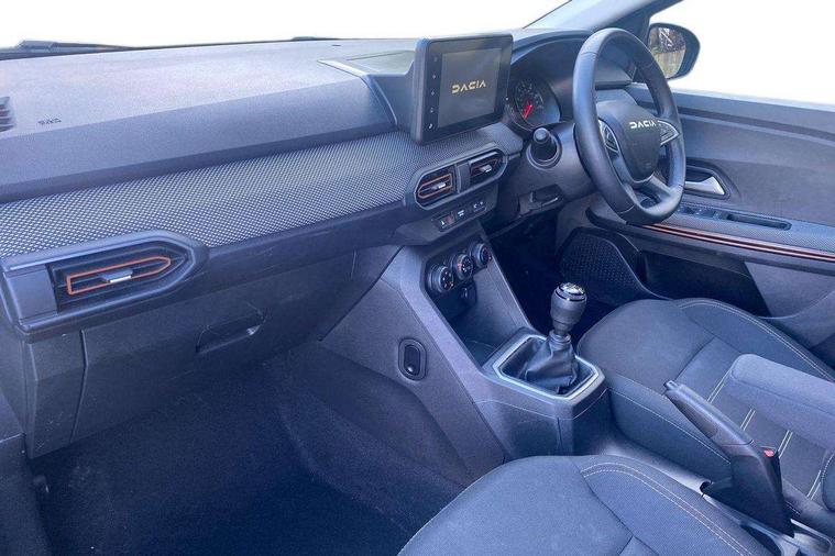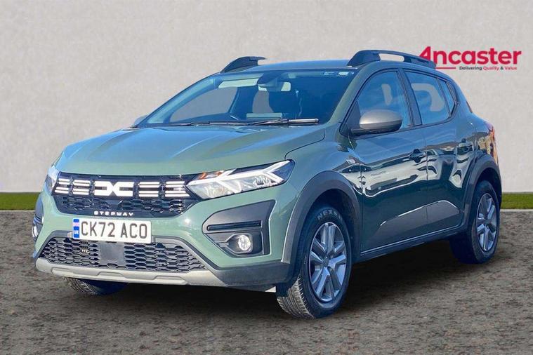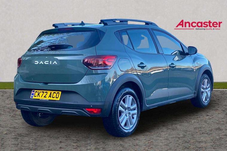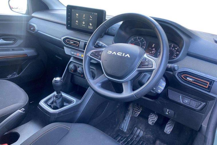 3.5" TFT instrument panel with on-board computer, Cruise control with speed limiter, eCall emergency call system, Eco mode, Electric power assisted steering, Rear parking sensors, Rev counter, Reversing camera, Stop/start system, 8" Media display - DAB radio, smartphone replication, bluetooth, 4 speakers, Apple CarPlay and Android Auto, USB connection for data transfer and charging, USB socket, 3 speed windscreen wipers, Auto lighting, Automatic wipers, Body colour door handles, Body colour door mirrors, Body coloured bumpers, Chrome longitudinal roof bars, Chrome modular roof bars, Chrome radiator grille, Chrome stepway inscription on radiator grille and roof bars, Drivers one touch electric windows, Electrically adjustable and heated door mirrors, Front electric windows, Front fog lights, Heated rear window, High level third brake light, LED automatic daytime running lights, LED Y-shape Dacia signature lighting, Rear electric windows, Rear side wing doors, Rear wash/wipe, Tinted windows, 1/3 to 2/3 split folding rear seats, 12 volt front socket, 12 volt rear socket, 3 height adjustable rear headrests, 3 seat rear bench, Driver and passenger vanity mirror with cover, Fabric upholstery, Fixed smartphone holder on dashboard, Gear shift indicator, Height adjustable drivers seat with armrest, Height adjustable front headrests, Height/depth adjustable steering wheel, Isofix points for child seats in both outer rear seats, Manual air conditioning, Satin chrome interior door handles, Satin Chrome/Copper orange air vents, Single front passenger seat, Soft feel steering wheel, Steering wheel controls, 3x3 point rear seatbelts, ABS and Emergency brake assist, Automatic emergency braking system, Child locks on rear doors, Door open visual and audible warning, Driver airbag, ESC (Electronic Stability Control), ESP + Hill Start Assist, Front curtain airbags, Front seatbelt pretensioners, Front side airbags, Height adjustable front seatbelts, Passenger airbag, Seatbelt reminder for driver and front passenger, Tyre pressure monitor, Automatic central locking, Immobiliser, Keyless entry, Remote central locking, Decopart on instrument panel and door with textile, 16" Flex wheels with full wheel cap,