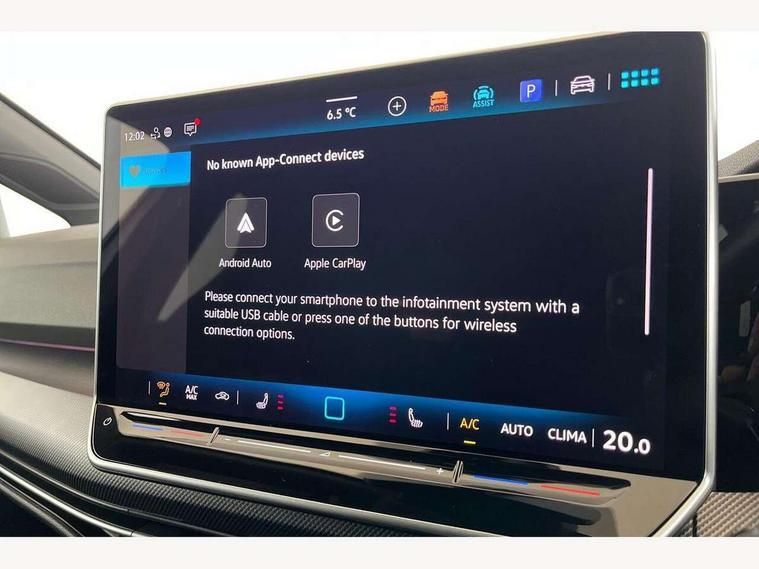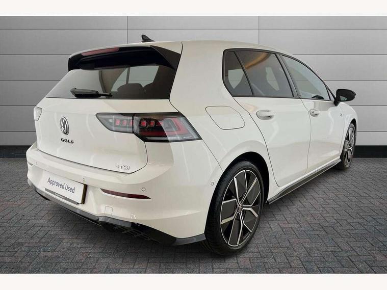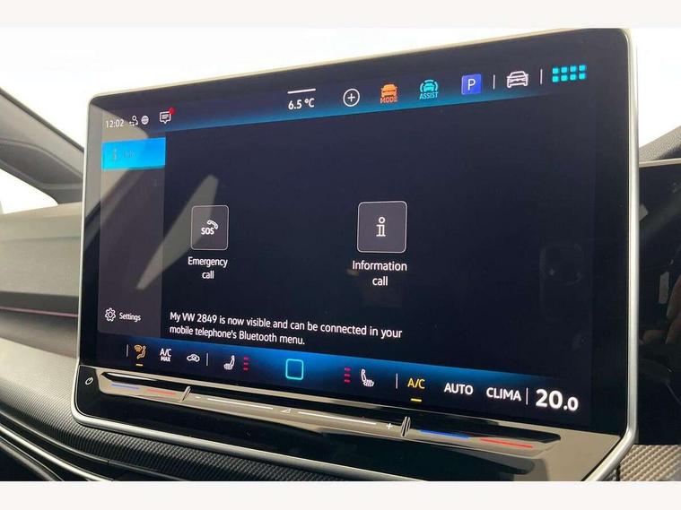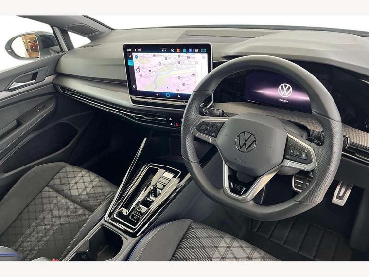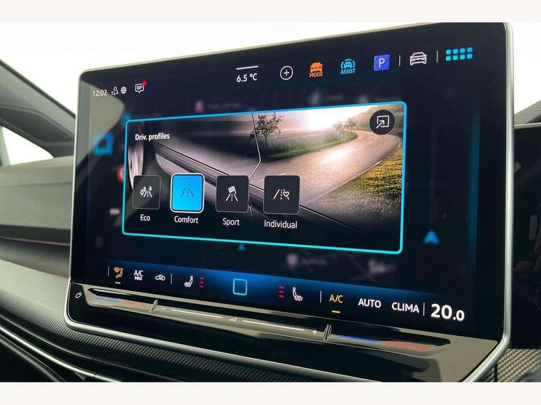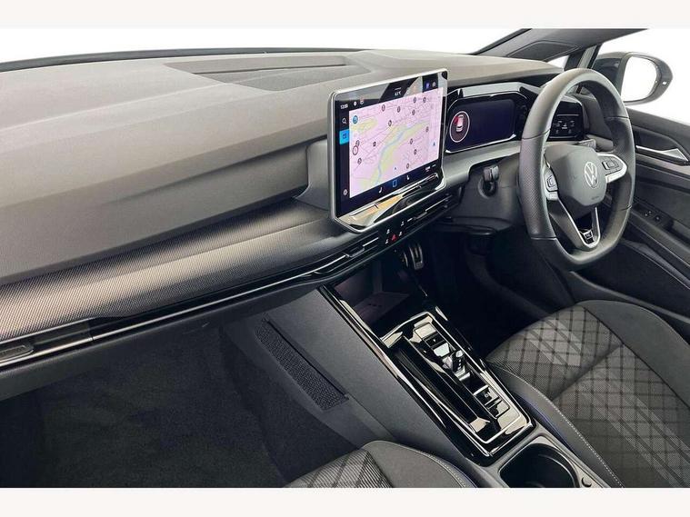 Activated carbon canister, Adaptive cruise control (ACC), Advanced driver attention and drowsiness monitor, Dynamic road sign display, Dynamic steering, E-Sim card for online connectivity, eCall emergency call system, Emergency assist, Lane keeping system Lane Assist, Multi-color Digital cockpit pro, selection of different info profile possible, Multifunction front facing camera for distance control, Navigation system, Oncoming vehicle braking when turning including swerve support, Preparation for light assist system, Speed limiter, Speedo, rev counter, electronic odometer, trip, service interval display, exterior temperature and fuel gauge, Traffic jam assist, Voice enhancer and voice control, Warning signal and warning light for front and rear seatbelts not fastened, We connect plus preparation, We connect preparation, Wireless app connect, Hybrid propulsion system, Petrol Particulate Filter, Start-stop system with battery regeneration (recuperation - energy recovery during braking), XDS electronic differential lock for improved traction and handling, 2 USB C ports in front, 2 USB charging sockets on the centre console in the rear charging capacity upto 45W, Comfort telephony + wireless charging, without wireless aerial connection, Digital radio reception (DAB), Diversity antenna for FM reception, Gaming platform via car app, Infotainment system with 12.9" display, Mobile phone interface with inductive charging feature, 3rd brake light, Auto dimming rear view mirror, Auto headlights, Automatic headlamp activation with Coming home and Leaving home feature, Body colored bumpers in R-Line style, Body colour door handles, Exterior mirrors convex on the left and aspherical on the right, Front and rear electric windows, Heat insulating windshield made of laminated glass, LED daytime running lights, Rain sensor, Rear exhaust tailpipe, Rear fog light on one side and reversing lights on both sides, Rear side wing doors, Rear windscreen washer and wiper with interval delay, Remote electrically foldable door mirrors, puddle lights and reverse activated passenger's door mirror, Volkswagen logo in front, illuminated lighting animation with wake up/goodbye scenario and illuminated door handles, Welcome light with surround lighting, 12V socket in front centre console, 12V socket in luggage compartment, 3 rear head restraints, 3 seat bench in 2nd row, Ambient lighting with 30 colour including LED light unit in front footwell with selectable light colour, Brushed stainless steel pedals, Carpet mats, front and rear, Chrome plated radiator grille inserts, air vent surrounds and light switch surrounds, Front centre armrest, Front seat lumbar support adjuster, Heated front seats, Integrated front head restraints, ISOFIX anchors for child seats on outer rear bench seats and on front passanger seat compatible for i-Size, Luggage compartment lighting, Manual height adjustable front seats, Plastic gear knob, Premium sports seats in front, Rear cupholder and loadthough, Sardegna cloth upholstery with front and outer rear seats Art Velour inner sides of bolsters, Single front passenger seat, Soul black instrument panel, Split folding backrest with centre armrest and unsplit rear seat bench, Storm grey roof lining, Sun visors with illuminated vanity mirrors, Black exterior Styling package with Matrix LED headlights - Golf, Winter package - Golf DSG Estate/Hatchback, 3 point height adj front seatbelts + pretensioners, 3 rear three point seatbelts, ABS, Autonomous emergency braking front assist with pedestrian and cyclist monitoring, Child locks on rear doors, Driver and front passenger airbag with front passenger airbag deactivation, Electronic parking brake with auto hold, ESC (Electronic Stability Control), Extended pedestrian protection measures, Hill start assist, Rear disc brakes, Two tone horn, Tyre pressure loss indicator, Volkswagen roadside assistance, Anti theft wheel bolts, Preparation for alcohol interlock, Decorative inserts carbon grey for dashboard and front door trim panels, 18" Leeds alloy wheels,