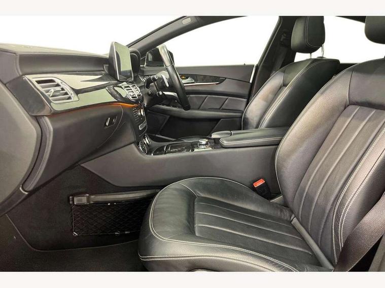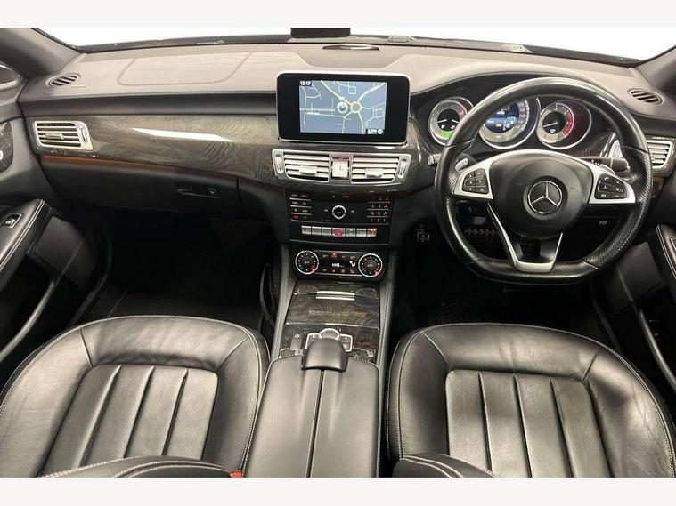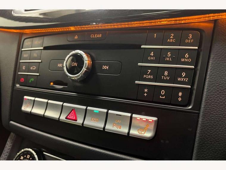 Active park assist with parktronic system, Attention assist, Bluetooth interface for hands free telephone, Collision prevention assist plus, COMAND online HDD Nav with media interface, radio/CD/DVD/MP3, 8" screen, linguatronic, 10GB music register, memory card slot, smartphone integration, Multi function trip computer, Outside temperature gauge, Remote boot release, Service indicator (ASSYST PLUS), Speed sensitive power steering, Diesel particulate filter, DAB Digital radio, Harman Kardon sound system with 14 speakers and amplifier, SD card slot, USB/aux input socket, AMG bodystyling, Auto dimming door mirrors, Auto dimming rear view mirror, Automatic headlights with high beam assist, Body coloured bumpers, Chrome door handles, Electric folding door mirrors, Electric front/rear windows with one touch/auto up/down, Electric glass sunroof, Electric heated + adjustable door mirrors, Headlight washers, Heated windscreen wash system, Intelligent LED headlight system with active cornering lights, LED daytime running lights, LED rear lights, Radiator grille with integral star and 1 louvre in diamond design, Rain sensor windscreen wipers, Tinted glass, Visible twin exhaust tailpipe in bumper, 2 rear head restraints, 3 spoke flat bottom AMG steering wheel in nappa leather, Adjustable lumbar support, Ambient lighting, AMG floormats, AMG sports seats, Auto Mercedes-Benz child seat recognition sensor, Centre armrest and door handle illumination, Courtesy light switch-on with door unlocking, Dual zone climate control, Easy-pack folding rear seat backrests, Front and rear door pockets, Front centre armrest with storage compartment, Front cupholders, Front height/angle adjust neck pro active head restraints, Front seat back map pockets, Heated front seats, Height/reach adjust steering wheel, Illuminated glovebox, Interior rear light/integral reading lights, Isofix rear child seat fastenings, Leather gear knob, Lockable glovebox, Multi function steering wheel, Rear armrest with storage + cupholders, Sports pedals with stainless steel surfaces and rubber studs, Steering wheel gearshift paddles, Storage compartment under load area floor, Sunvisors with illuminated vanity mirrors, Memory pack A - CLS, ABS with Brake Assist, Adaptive brake system, Brake calipers with Mercedes-Benz lettering + perforated brake discs, Child proof door locks, Drivers knee airbag, Dual stage driver/passenger airbags, ESP with ASR, Front and rear curtain airbags, Front side airbags, Hill start assist, Pre-Safe anticipatory safety system, Rear seatbelt warning indicator, Tyre pressure monitoring system, Warning triangle and first aid kit, Alarm system/interior protection/immobiliser, Keyless Go access/ignition system, Locking wheel bolts, Remote central locking, 19" AMG multi spoke alloy wheels titanium grey, Tyre repair kit,