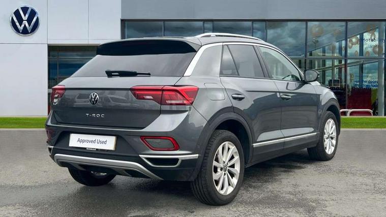 10.25" Digital cockpit pro, Bluetooth mobile phone interface, Driver alert system with fatigue detection, Driver tips and journey analysis, Emergency call service, Lane keeping system Lane Assist, Modified key software - reduce switch off time for key status change to Long no motion, Online services, Park assist including front and rear parking sensors, Service interval indicator, Tailgate/trunk lid release from outside, Think blue trainer driver tips and journey analysis, Warning sound and light for front seatbelts unfastened, Wireless app connect, Battery regeneration during braking, Start/stop function with battery regeneration, Diversity antenna for FM reception, Front and rear 6 speakers, Music playback - MP3, WMA and AAC files, Premium USB cable in choice of either Apple or Android smartphone compatibility, SD card slot, Simultaneous pairing of 2 compatible mobile devices, Title and cover art display, We Connect and We Connect Plus functionality, 3rd brake light, Auto dimming interior rear view mirror, Automatic hazard lights activation under emergency braking, Automatic headlight control with LED separate daytime running lights with coming/leaving home function, Body colour sports bumpers with silver metallic underbody fascia, Dynamic headlight range control with self adjusting whilst driving, Extended roof spoiler, Exterior mirrors aspherical on driver side, convex on front passenger side, External USB type C socket and charging sockets, Front windscreen wiper with intermittent wipe and 4 position delay, Heated rear window, LED Plus headlamps, LED rear combination lamps, LED rear number plate lights, LED tail lamp rear comination lamps, Light mode for poor weather, rain, fog or snow, Power windows with comfort operation and circuit breaker, Rain sensor, Rear exhaust tailpipe, Rear fog light on one side and reversing lights on both sides, Rear side wing doors, Rear wash/wipe with intermittent wipe setting, Remote electrically foldable door mirrors, puddle lights and reverse activated passenger's door mirror, 12V power socket in centre console, 3 rear head restraints, 3 seat bench in 2nd row, 4 load lashing points in luggage compartment, Air care climatronic air conditoning system with active combination filter and 2-zone temperature control, Chrome plated radiator grille inserts, air vent surrounds and light switch surrounds, Door and side trim panel with leatherette insert, Drawer under drivers seat, Front + rear carpet mats, Front centre armrest, Front comfort sports seats, Front cupholders x 2, Front footwell illumination, Instrument lighting, white adjustable panel illumination, Interior ambient lighting and surround lighting, Interior light delay, Isofix child seat preparation, Leather gearshift handle, LED interior light with switch off delay/dimmer and 2 front/rear LED reading lights, Load-through provision with cup holder when folded down ('Unsplit rear seat bench, split folding backrest, with centre armrest), Luggage compartment lighting, Non-folding front passenger seat backrest, Single front passenger seat, Storage compartment in left and right luggage area, Storage compartment in rear doors, Storage compartments in driver and front passenger doors, Sunvisors with illuminated vanity mirrors, Variable boot floor, height adjustable and removable, Driver assistance pack without proactive passenger protection - T-Roc, 3 point height adj front seatbelts + pretensioners, 3 point seatbelts in outer rear with ECE label, ABS, Child locks on rear doors, Driver and front passenger airbag with front passenger airbag deactivation, Driver and front passenger safety-optimised head restraints, Drivers seatbelt reminder, Electronic parking brake, Electronic Stability Control (ESC) inc EDL (Electronic Differential Lock) and ASR (Traction Control), Front and rear passengers curtain airbag system including front side airbags, Front assist with city emergency braking and pedestrian monitoring, Front seat side impact airbags, Predictive pedestrian protection, Rear disc brakes, Single tone horn, Tyre pressure loss indicator, Volkswagen roadside assistance, Alarm with interior protection, Anti-theft alarm system with interior monitoring, backup horn, and towing protection, Remote central locking with SAFELOCK, radio remote control with 2 remote control folding keys, Trims for alloy wheels,