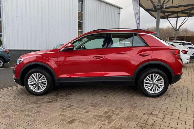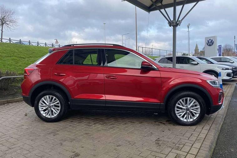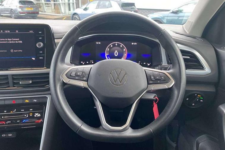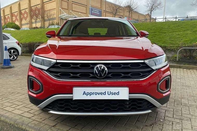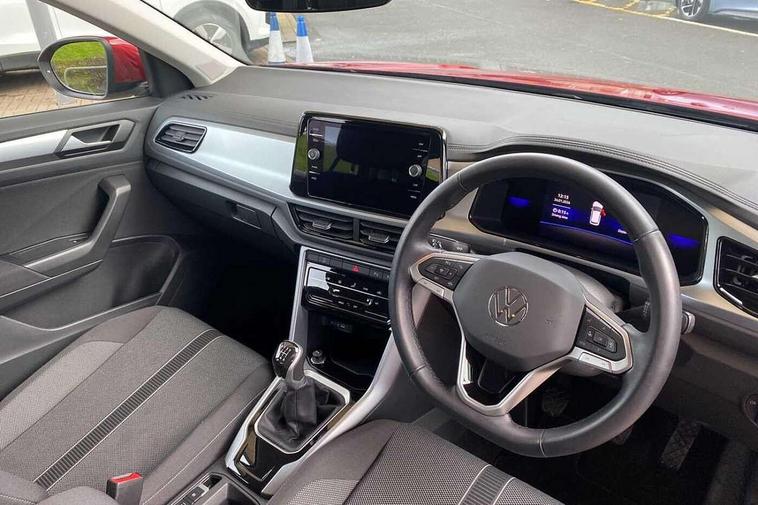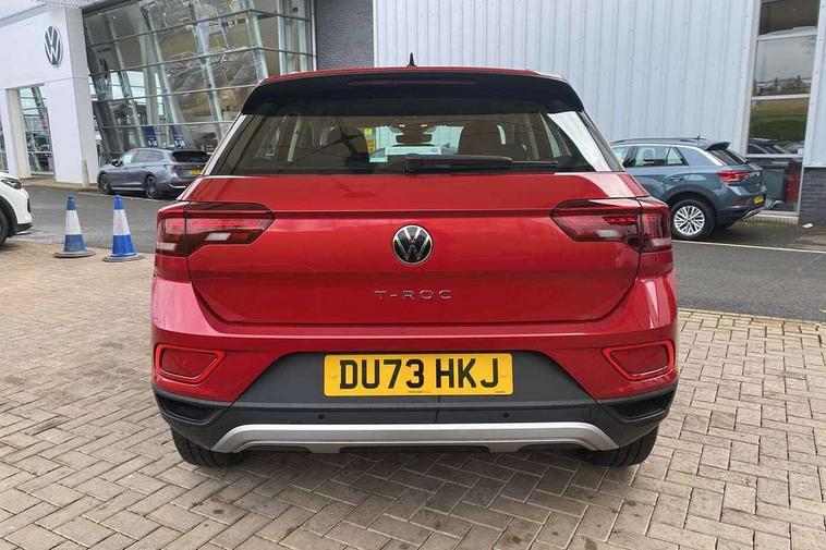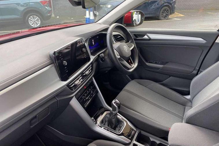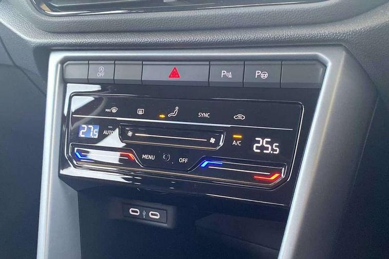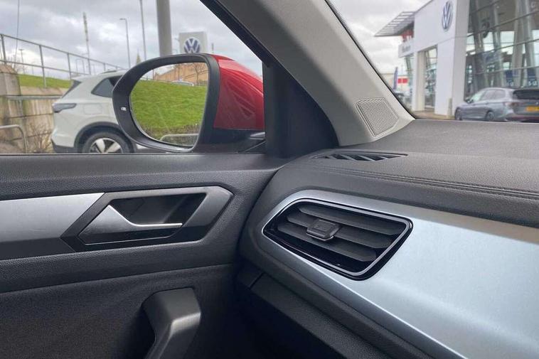 Advanced driver attention and drowsiness monitor, Bluetooth mobile phone interface, Driver tips and journey analysis, Emergency call service, Lane keeping system Lane Assist, Modified key software - reduce switch off time for key status change to Long no motion, Online services, Park assist including front and rear parking sensors, Power assisted speed sensitive steering, Service interval indicator, Tailgate/trunk lid release from outside, Think blue trainer driver tips and journey analysis, Warning sound and light for front seatbelts unfastened, Wireless app connect, Battery regeneration during braking, Front shock absorption, Rear shock absorption chassis with increased ride height, Start/stop function with battery regeneration, DAB Digital radio, Diversity antenna for FM reception, Music playback - MP3, WMA and AAC files, Premium USB cable in choice of either Apple or Android smartphone compatibility, SD card slot, Simultaneous pairing of 2 compatible mobile devices, Title and cover art display, We Connect and We Connect Plus functionality, 3rd brake light, Auto dimming interior rear view mirror, Automatic hazard lights activation under emergency braking, Automatic headlight control with LED separate daytime running lights with coming/leaving home function, Black roof rails, Body coloured bumpers and radiator grille with chrome trim and front fog lamps with chrome bezel, Body coloured exterior mirror housings and door handles, Extended roof spoiler, Exterior mirrors aspherical on driver side, convex on front passenger side, External USB type C socket and charging sockets, Front windscreen wiper with intermittent wipe and 4 position delay, Heated rear window, LED rear combination lamps, LED rear number plate lights, LED tail lamp rear comination lamps, Power windows with comfort operation and circuit breaker, Rain sensor, Rear exhaust tailpipe, Rear fog light on one side and reversing lights on both sides, Rear side wing doors, Rear wash/wipe with intermittent wipe setting, Remote electrically foldable door mirrors, puddle lights and reverse activated passenger's door mirror, 12V power socket in centre console, 3 rear head restraints, 3 seat bench in 2nd row, 4 load lashing points in luggage compartment, Air care climatronic air conditoning system with active combination filter and 2-zone temperature control, Ambient lighting with mirror logo projection, Cloth upholstery, Door and side trim panel in cloth, Drawer under drivers seat, Driver/front passenger seat height adjustment, Front centre armrest, Front comfort sports seats, Front cupholders x 2, Front reading light, Instrument lighting, white adjustable panel illumination, Interior light delay, Isofix child seat preparation, Leather gearshift handle, Load-through provision with cup holder when folded down ('Unsplit rear seat bench, split folding backrest, with centre armrest), Luggage compartment lighting, Lumbar support for driver's and front passengers seat, Non-folding front passenger seat backrest, Single front passenger seat, Storage compartment in left and right luggage area, Storage compartment in rear doors, Storage compartments in driver and front passenger doors, Sunvisors with illuminated vanity mirrors, Variable boot floor, height adjustable and removable, Driver assistance pack without proactive passenger protection - T-Roc, 3 point height adj front seatbelts + pretensioners, 3 point seatbelts in outer rear with ECE label, ABS, Child locks on rear doors, Driver and front passenger airbag with front passenger airbag deactivation, Driver and front passenger safety-optimised head restraints, Drivers seatbelt reminder, Electronic parking brake, Electronic Stability Control (ESC) inc EDL (Electronic Differential Lock) and ASR (Traction Control), Front and rear passengers curtain airbag system including front side airbags, Front assist with city emergency braking and pedestrian monitoring, Front disc brakes, Front seat side impact airbags, Hill start assist, Predictive pedestrian protection, Rear disc brakes, Two tone horn, Tyre pressure loss indicator, Volkswagen roadside assistance, Alarm with interior protection, Anti-theft alarm system with interior monitoring, backup horn, and towing protection, Remote central locking with SAFELOCK, radio remote control with 2 remote control folding keys, Pewter matt decorative inserts for intrument panel, centre console and door panels at the front, Trims for alloy wheels,