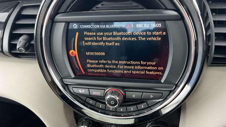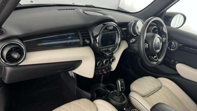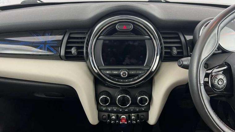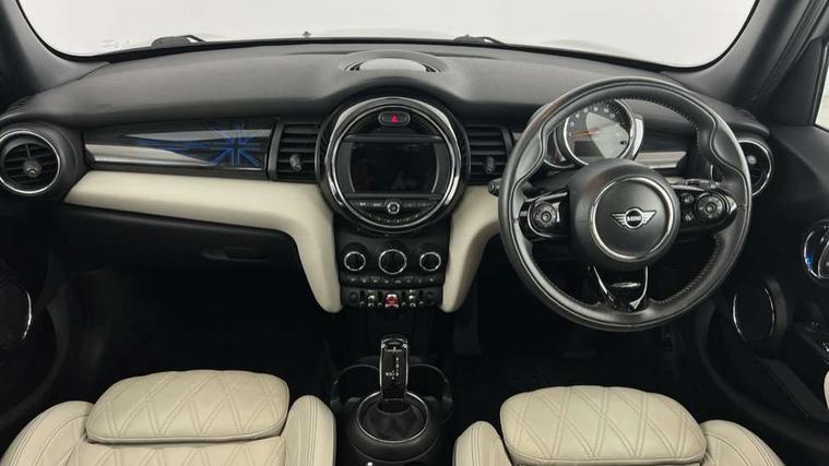 Automatic start/stop function with brake energy recuperation, Compatible mobile phone bluetooth with audio streaming, Electro-mechanical speed dependant steering assistance, Instrument cluster, Mini E-call, MINI TeleServices, On board computer, Service interval indicator, Double Vanos system, Fully variable valve control, High precision injection, Steptronic transmission with double clutch, 6.5" touchscreen with LED ring, FM tuner and DAB digital radio, Automatic headlight activation switch, Body colour fuel filler cap, Chrome border high gloss black slats radiator grille, Chrome line exterior, Dynamic brake lights, Electric front+rear windows, Heated rear window, Heated windscreen washer jets, LED headlight with closed ring and daytime driving lights, Left exhaust tailpipe with chrome finisher, Metal door sill strips with MINI imprint, Model logo Cooper on right of tailgate, Radiator grille bars, tailgate handle, lower front grille grating, rear central fog light in chrome, Rain sensor window wipers, Rear fog lights, Rear LED lights with union jack design, Rear window wiper, Side scuttle panel with integrated indicator, Sun/heat protection glass, White indicator lenses, 12V Accessory socket in centre console, 4 lashing eyes in luggage compartment, 60/40 split folding rear seat, Air vents, gear lever base, speakers in doors, door handles in chrome, Chrome interior highlights, Cupholders, Front and rear head restraints, Front and rear isofix with front passenger airbag deactivation, Glove compartment, Height and length steering column adjustment, Interior lighting with 12 basic colours selectable via toggle switch in roof, Leather gearshift lever and handbrake gaiters, LED reading lights, vanity mirror lights, front foot well light and spotlight on front seats, Manual air conditioning, Mechanical seat adjustment, driver seat height adjust, forward/back and front seats backrest, Mini logo projection on floor from drivers exterior mirror, MINI Yours leather steering wheel with silver contrasting stitching with MINI Yours badge, Multifunction steering wheel, Storage compartments in doors, Sunvisors with vanity mirrors, 3 point seatbelts on all five seats, 6 Airbags - front, side, head and seat belt tensioners, Anti-lock braking system (ABS), DSC - Dynamic Stability Control, Front and rear disc brakes, Hill start assist, Single tone fanfare horn, Tyre pressure monitoring system, Alarm system with tilt sensor, monitoring doors, bonnet interior and tailgate, Electronic vehicle immobiliser, Start/stop toggle with keyless go, Chrome line interior, Tool kit,