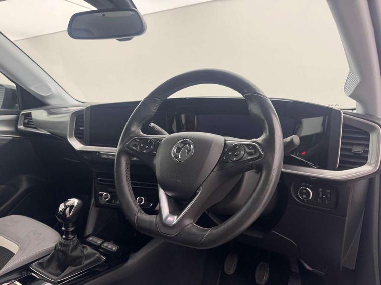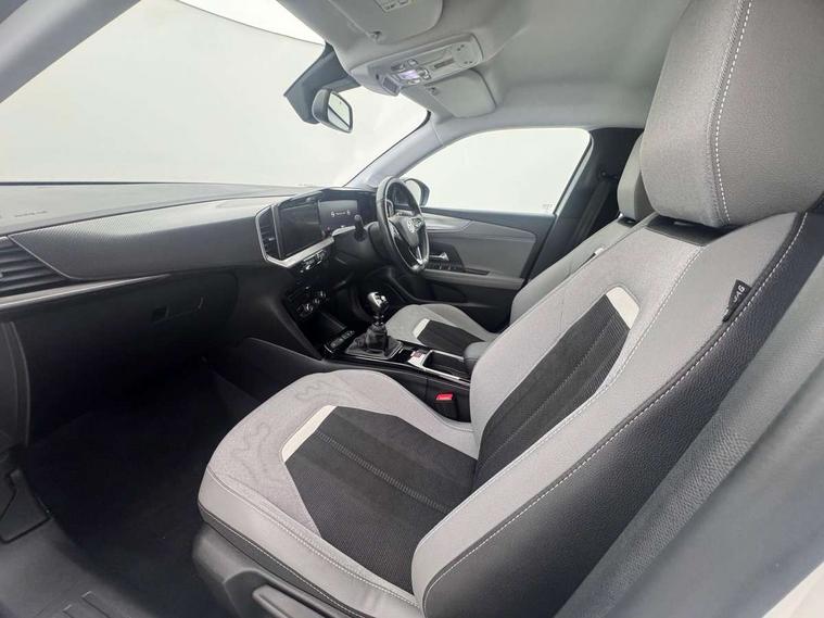Automatic adaptive cruise control, Driver drowsiness alert system, Engine start/stop button, Front and rear parking distance sensors, Front camera system, Lane keep assist system (LAS) with Lane departure warning system (LDWS), Lights on audible warning, Multi function trip computer, Panoramic rear view camera, Power assisted speed sensitive steering, Side blind spot alert and flank guard, Smartphone integration compatible with Apple CarPlay and Android Auto, Speed sign recognition, Start/stop system, Vauxhall connect with e-Call, 6 speed manual transmission, Chassis drive line front wheel drive, Electronic fuel system, Front chassis equipment, Rear chassis equipment, Standard chassis suspension system ride handling, Bluetooth A2DP audio streaming, Flexible Roof Mounted Radio Aerial, Front USB connection, Mobile phone portal - bluetooth connect, vehicle microphone, handsfree calls, SMS read out and reply, phone book access, Multimedia Navi pro infotainment with satellite nav, 10" colour touchscreen, 6 speakers, DAB radio, 12" instrument panel, Apple carplay/Android auto, Steering wheel mounted controls, Two rear USB sockets, 3rd brake light, Adaptive brake lights, Automatic lighting control with tunnel detection, Automatically dimming anti dazzle rear view mirror, Black door mirror housings, Black rear spoiler, Body colour door handles, Body colour front and rear bumpers, Chrome effect skid plates, Chrome effect upper window moulding, Electrically adjustable, heated and folding door mirrors, Electrically operated front and rear windows with safety auto reverse and one touch up/down facility, Hazard warning lights, Heated rear window+rear wash/wipe, High beam assist, LED daytime running lights, LED front fog lamps, LED side repeat indicators, LED tail lights, Manual headlamp level control, Rear foglight, Rear side wing doors, Rear wiper, Reversing light, Solar heat absorbing windscreen and windows, Two speed rain-sensitive windscreen wipers with variable intermittent wipe, Windscreen and side window demist vents, 12V Accessory socket, 3 seat bench in 2nd row, 3 spoke flat bottomed leather steering wheel with satin chrome bezel, 4 speed fan with illuminated controls, 6 way manual adjustable driver fore/aft, up/down with reclining seatback, 6 way manual adjustable front passenger fore/aft, up/down with reclining seatback, Air recirculation system, Cabin particulate filter - removes dust, airborne particles and pollen, Centre console with two cup holders at front and one in rear, Chrome effect interior door handles, Door pockets with two litre capacity, Driver and passenger seat pocket, Driver and passenger sun visors with vanity mirror, Electronic climate control (ECC), Fabric/leather upholstery with jet black fabric side bolsters, Four adjustable facia vents, Four load restraint lashing eyes, Front centre armrest with storage, Front map reading lights, Front seat back storage pockets, Fully carpeted load area, Heated front seats, Heated steering wheel, Height adjustable front/rear head restraints, Illuminated load area, Interior courtesy light, Interior tailgate handle, Luggage compartment cover, Luggage compartment lighting, Reach + rake adjustable steering column, Single front passenger seat, Twin gas assisted tailgate struts, 2x Isofix child seat fitting on outer rear seats, 3x3 point rear seat belts, Anti-lock braking system (ABS), Automatic emergency city braking, Child proof locks on rear doors, Cornering brake control, Deactivation switch for front passenger front and side impact airbags, Drag torque control, Driver and front passenger airbags, front seat side impact airbags, full size curtain airbags, Electronic brake force distribution, Electronic Stability Programme (ESP), Emergency brake assist, Forward collision alert at all speed, Hill start assist, Inertia reel lap and diagonal seatbelts for all seats, Seatbelt unfastened audible warning and warning light, Straight line stability control, Traction control, Tyre pressure monitoring system, Electronically protected audio equipment, Freewheeling door locks, Immobiliser, Key left in ignition audible warning, Keyless entry and start, Locking wheel nuts, Remote control ultrasonic security alarm system, Visible vehicle identification number, Atlantis black trim inserts of front doors, Black facia with silver trim insert, Instrument panel bar in Light Gravel, 17" bi colour alloy wheels,