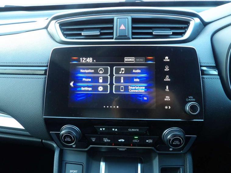 Adaptive cruise control, Agile handling assist, BLIS (Blind Spot Information System) with dual power heated blind spot mirrors, Bluetooth hands free telephone connection, E-call, Economy mode, Electric power steering, Emergency stop signalling system, Forward collision warning, Front parking sensors, Hands free tailgate, Head up Display, Honda CONNECT with GARMIN Navigation + 7" touchscreen, DAB radio, Apple CarPlay, Android Auto, Aha app integration and internet browsing, Intelligent multi info display, Lane departure warning system, Lane keep assist system, Low speed following, Rear parking sensors, Rear view camera, Road departure mitigation, Speed limiter, Traffic sign recognition, Wireless charging, Drive mode (Econ, Sport, EV), Vehicle stability assist, 2 USB sockets in rear, 2x USB sockets in front, 9 speakers, DAB Digital radio, Dashboard centre speaker, Front tweeters, Steering wheel mounted controls, Subwoofer, Aspheric door mirrors, Auto dimming rear view mirror, Auto wipers, Automatic headlights with dusk sensor, Body colour bumpers, Body colour door handles, Body colour door mirrors, Chrome grille, Cornering light, Door mirrors tilt when reversing, Electric front windows/one touch facility, Electric rear windows + one touch facility, Electrically adjustable and heated door mirrors, Electrically retractable door mirrors, Front LED Indicator lights, Front windscreen de-icer, High beam assist, LED daytime running lights, LED front fog lights, LED Headlights, LED rear lights, Panoramic opening glass sunroof, Rain sensor, Rear privacy glass, Rear side wing doors, Rear wiper, Roof rails, Shark fin roof aerial, Tailgate spoiler, Third brake light, Welcome home function, 3 seat bench in 2nd row, 60/40 split folding rear seat, 8 way electrically adjustable drivers seat + mirror memory, Accessory sockets, Ambient interior lighting, Ambient light in roof, AWD emblem rear, Cargo hooks, Courtesy lights, Driver's electric adjustable lumbar support, Driver/passenger front seatback pockets, Driver/passenger sunvisors with illuminated vanity mirrors, Dual zone automatic climate control, Electric lumbar adjustment on passenger's seat, Footwell ambient lighting, Front centre armrest, Front map lights, Front passenger seat height adjust, Heated front seats, Heated rear seats, Heated steering wheel, Hybrid emblem, Illuminated glovebox, Instrument panel with garnish wood film, Isofix child seat preparation, Leather steering wheel, Leather upholstery, Paddle shift controls, Rear air vents, Rear centre armrest, Rear headrests, Rear reading lights, Silver interior door handles, Silver interior panels, Single front passenger seat, Sunglasses holder with mirror, Tilt/telescopic adjustable steering wheel, Tonneau cover, Trunk light, 5 x 3 point seatbelts, ABS/EBD, Anti-whiplash front headrests, Brake assist function, Collision mitigation braking system, Deflation detection system, Driver airbag, Electronic parking brake with auto hold, Front and rear curtain airbags, Front and rear seat belts with emergency locking retractor (ELR), Front centre airbag, Front passenger airbag, Front side airbags, Hill start assist, Manual child lock in rear doors, Passenger airbag deactivate switch, Honda super locks, Immobiliser, Security alarm, Selectable door unlock, Smart entry + Smart start, Ultrasonic security sensor, Tyre repair kit,