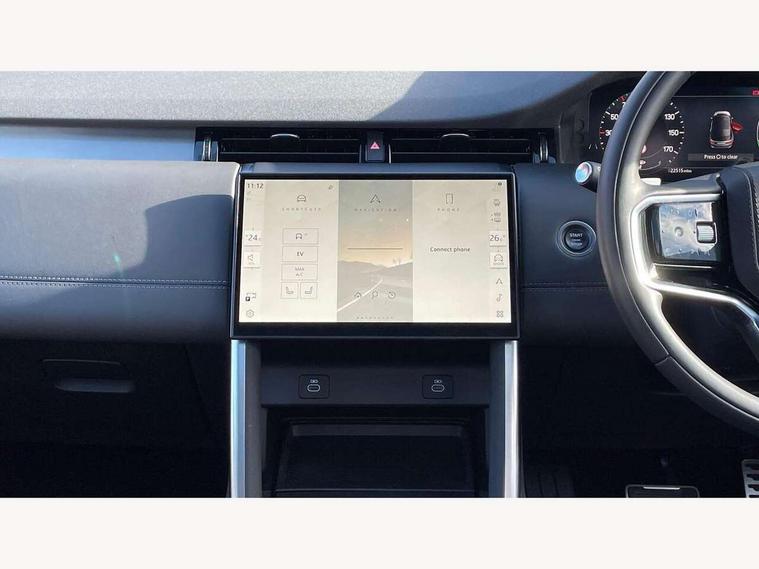11.4" touch screen, Adaptive cruise control, Android Auto, Apple CarPlay, Blind spot assist, Driver condition monitor, eCall emergency call system, Front and rear parking aid, Head up Display, InControl remote premium, Interactive driver display, Lane keep assist, Locking fuel flap, PAS, Pivi Pro connected navigation system with upgraded Infotainment, Powered tailgate/boot lid, Push button start, Rear collision monitor, Rear traffic monitor, Service interval indicator, Traffic sign recognition with adaptive speed limiter, Trip computer, Wireless device charging, 7 kW onboard charger, All terrain progress control, Coil suspension system, Dynamic stability control, Home charging cable, Public charging cable, Terrain Response 2, Bluetooth connectivity including audio streaming, Digital Audio Broadcast radio-DAB, Steering wheel mounted audio controls, 3rd brake light, Automatic headlight levelling, Automatic headlights, Electric front/rear windows, Electric heated/power fold door mirrors with approach lights and auto dimming driver side, Front and rear recovery eyes, Front fog lights, Heated rear window, Heated windscreen including heated washer jets, Illuminated metal treadplates with brand name script, Matrix LED headlights with signature DRL, front and rear LED animated directional indicators and intelligent high beam assist, P300e badge, Privacy glass, Rain sensing windscreen wipers, Rear fog lights, Rear side wing doors, Rear wing door, Rear wiper, 14 way electric front seats with driver memory, 2 way manual headrests and adjustable bolsters + 4 way electric lumbar support, 5 standard seating configuration, Bright metal pedals, Carpet mats, Centre console with armrest, Ebony morzine headlining, Electrically adjustable steering column with memory, Footwell lights, Front and rear 12V with front USB, Front and rear grab handles, Front passenger isofix child seat attachment, Full leather twin-rim steering wheel, Heated and cooled front seats, Heated steering wheel, Loadspace cover, Loadspace light, Manual slide and recline second row seats, Overhead lighting console, Overhead stowage for sunglasses, Rear headrests, Row 2 USB-C x 2 and row 3 USB-C x 1, Satin chrome gearshift paddles, Twin front cupholders with cover, Windsor leather upholstery, Online pack with data plan - Discovery, 3 point seatbelts on all seats, ABS, Brake hold function, Child locks on rear doors, Collision mitigation braking system, Cornering brake control (CBC), Driver/Front Passenger airbags, Drivers knee airbag, Electronic brake force distribution, Electronic parking brake, Emergency brake assist, ESP + traction control, Hill descent control, Hill launch assist, Pedestrian airbag system, Rear seat ISOFIX, Roll stability control, Side and curtain airbags for front and 2nd row seats, Trailer stability control, Tyre pressure monitoring system, Battery Back Up System (BBUS) with tilt sensor, Global lock and unlock switch on driver door, Intrusion sensor, Keyless entry, Locking wheel nuts, Centre stack rails in noble chrome,