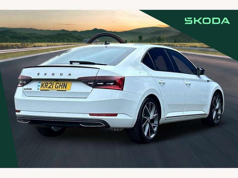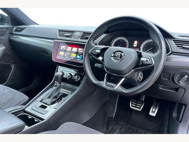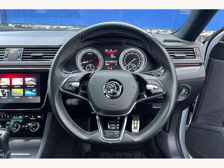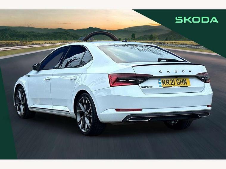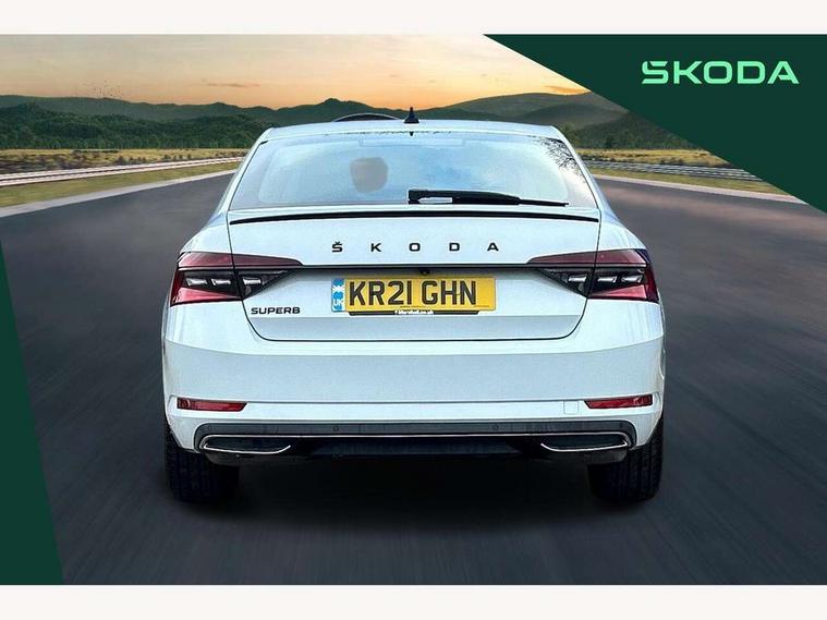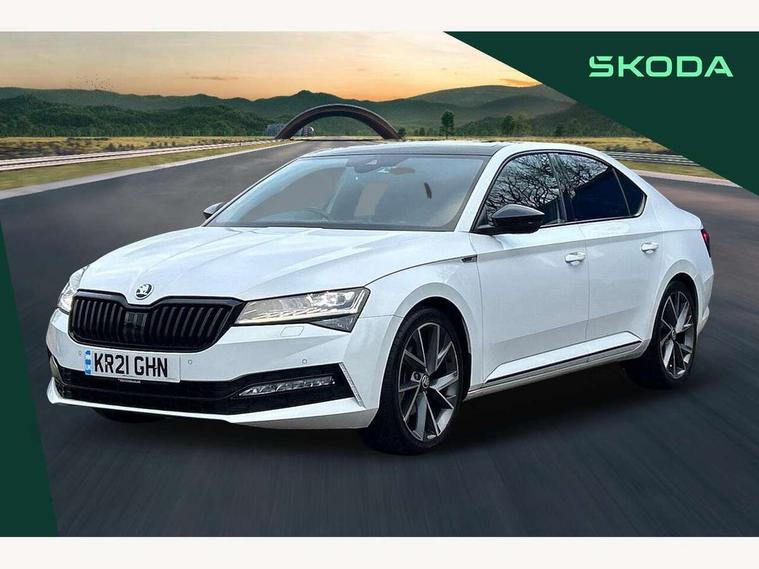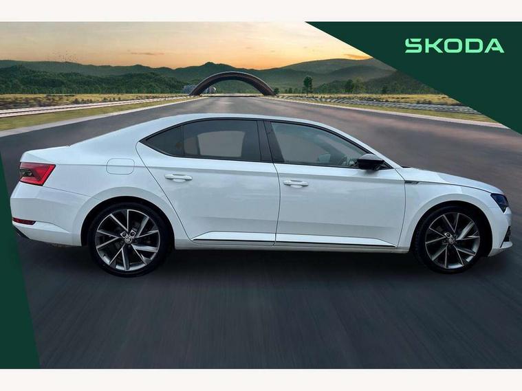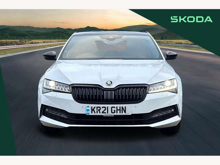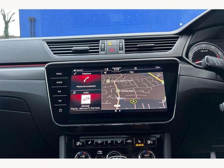 Bluetooth system, CareConnect and Emergency Call, Columbus HDD satellite 3D map navigation with 9.2" colour touch screen, web radio, integrated Wi-Fi, SmartLink+ with Apple CarPlay and Android Auto, Driver fatigue sensor, Front assist with pedestrian protection, Progressive dynamic steering, Stop/start engine system and energy recovery, Voice control system, XDS+, 2 USB ports, Bolero radio with 8" touchscreen display, DAB Digital radio, Aero front windscreen wipers with intermittent function, Auto dimming rear view mirror, Black rear badge, Body colour door handles, Cornering front fog lights, Electrically adjustable heated and folding door mirrors with memory function, Front and rear electric windows, Full matrix LED headlights with AFS LED DRL integrated with headlight washer LED rear lights(High function), dynamic indicators and lighting animation, Gloss black exterior door mirrors with sports styling including front grill, side strip and window surrounds, Gloss black grille surround with gloss black rib elements, Gloss black rear spoiler, Gloss black strip between rear lights, Light assistant (coming/leaving home/tunnel light), Privacy glass, Rain sensor, Rear exhaust diffuser styling elements, Sport Line badging, 12v power point in centre console, Alcantara/leather upholstery with silver diamond stitching sports seats, Black roof headlining, Carbon optic interior elements, Electric auxiliary air heater, Front armrest with storage box, Height adjustable front and rear head restraints, Ice scraper, Illuminated and cooled glovebox, Interior lights with control switches, Isofix child seat fittings on outer rear seats, One umbrella compartments in driver door with one umbrella in drivers door, Overhead glasses storage compartment, Rear centre armrest with cupholders, Removable parcel shelf, Split folding rear seats, Textile floor mat set, Ticket holder on A Pillar, LED package plus - Superb, 3 rear seatbelts, 7 airbags - Front, front side, curtain, driver's knee airbag with front passenger deactivation switch, Driver and passenger seatbelts with warning light, Electronic parking brake, ESC including ABS, EBV, MSR, ASR, EDS, HBA, DSR, RBS, CBC, multi-collision brake (MKB) and Auto hold, Hill start assist, Tyre pressure monitor, Alarm with interior monitoring tilt sensor and back up horn, Electronic engine immobiliser, Keyless entry and start/stop, Remote central locking with SAFE system, Third remote key,