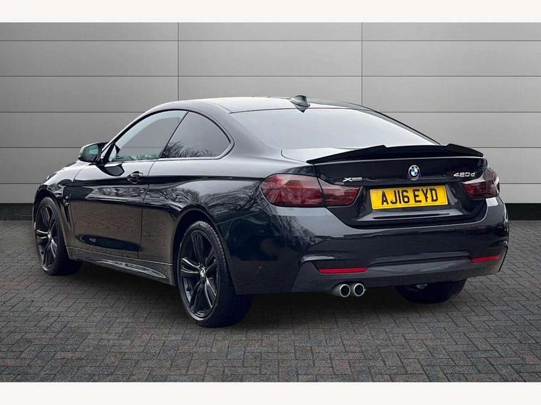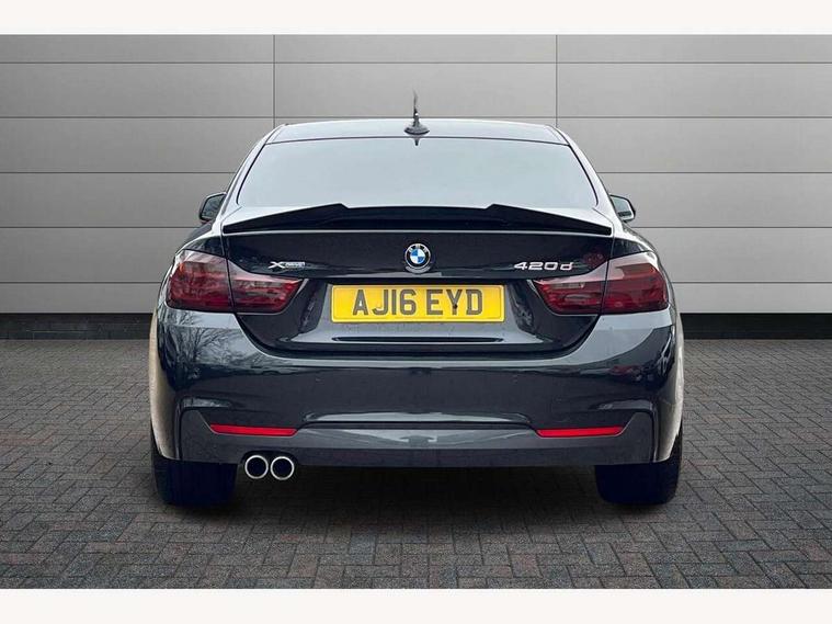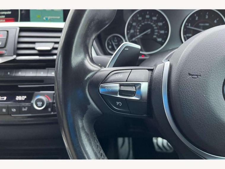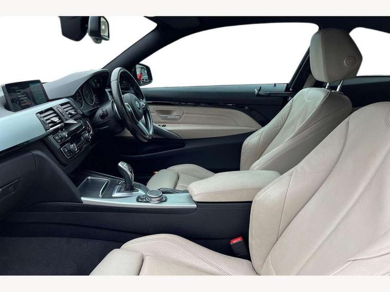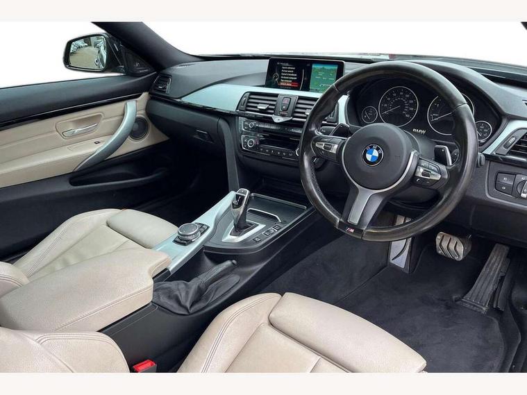 BMW Online services, BMW Teleservices, Brake pad wear indicator warning light, Check control system, Door/boot open warning, Front/rear Parking distance control, Lights on warning, Oil temperature gauge, On board computer, Outside temperature display, Run flat indicator, Service interval indicator, Stop/start button, Diesel particulate filter, Drive Performance Control, Auxiliary point for auxiliary devices, Bluetooth audio streaming, BMW professional radio/CD/MP3, DAB Digital radio, 2 speed adjustable intermittent wipers with wash/wipe function, Auto dimming rear view mirror, Body colour bumpers, Body colour door handles, Body colour door mirrors, Body colour roof mouldings, Chrome exhaust tailpipe, Chrome kidney grille with chrome vertical slats, Daytime running lights, Door sill finishers, Electric adjustable heated door mirrors, Electric front windows/one touch facility, Follow me home headlights, Front fog lights, Headlight washers, Heat insulating tinted glass, Heated windscreen washer jets, High gloss shadow line, M aerodynamic bodystyling, Rain sensor including auto headlights activation, Windscreen with grey shadeband, 12V sockets in front centre console and passenger footwell, 3 spoke leather M sport multifunction sports steering wheel, 4 grab handles, Anthracite headlining, Anthracite Velour floor mats, Dual zone climate control, Folding storage compartment with glasses holder + coin tray, Front centre armrest with storage compartment, Front cupholders x 2, Front head restraints, Front sports seats with electric side bolster adjustment, Front/rear armrests within door panels, Full black panel display, Glovebox with lid, Heated front seats, Integrated rear head restraints, ISOFIX child seat preparation+airbag deactivation, Lashing eyelets in boot, Leather gearknob, Leather handbrake grip, Reach + rake adjustable steering column, Rear centre armrest, Storage compartment in rear centre console, Sunvisors with vanity mirrors, Toolkit located in luggage compartment, Extended lights package - 4 Series, Media pack - Professional - 4 Series, 3 point seatbelts on all seats, ABS/EBD, Automatic Stability Control (ASC), BMW emergency call, Cornering brake control (CBC), Crash Sensor - activates hazard/interior lighting + unlocks doors, Driver seatbelt warning indicator, Driver/Front Passenger airbags, DSC+, Dynamic brake control, Dynamic Traction Control - DTC, Front seatbelt force limiters, Front seatbelt pretensioner, Front side airbags, Hill start assist, ITS head airbags for front/rear, Tyre pressure monitor, Warning triangle and first aid kit, Drive away door locking, Electronic immobiliser, Remote central locking, Remote control Thatcham category 1 alarm,