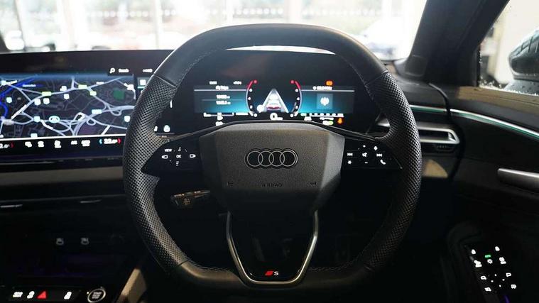 Adaptive cruise control, Advanced driver attention and fatigue montior, Audi application store, Audi assistant, Audi connect emergency call and service, Audi drive select, Audi smartphone interface, Audi virtual cockpit plus with 11.9" OLED colour display, Automatic start/stop system with coasting functionality, Camera based traffic sign recognition, Intersection assist, Lane departure warning, MMI navigation plus with high resolution 14.5" OLED touchscreen colour display, Park assist plus, Parking system plus with 360 display, Progressive steering with servotronic, Rear view camera, Swerve assist and turn assist, Traffic sign based speed limiter, Sports suspension lowered by 20mm, 2 USB-C ports in both the front and rear, Audi sound system impressive sound with 10 loudspeakers including centre speaker and subwoofer, 6-channel amplifier with a total output of 180 watts, DAB digital radio reception, Smartphone compartment with wireless charging, Aluminium window trims, Auto dimming rear view mirror, Body colour door mirrors, Door mirrors - electrically adjustable, heated, folding and auto dimming on both sides, Front and rear electric windows, Front door sill trims with aluminium inlays, illuminated with 'S' logo, High beam assist, LED headlights Plus incl. digital daytime running lights, turning light, all-weather light, motorway light, manouevring light and intersection light, LED rear lights pro incl. dynamic rear indicators and illuminated light strip with animated coming and leaving home function, LED third brake light, Privacy glass, Rear and side windows with heat insulating glass, Rear boot, Rear side wing doors, S Line badges on the front wings, S line bumpers, radiator grille and diffuser in phantom black and diffuser insert in matt anthracite, White rhombus logo projection light in exterior mirrors, Windscreen with acoustic glazing, 3 rear headrests, 3 seat rear bench, 3 spoke leather steering wheel with multi-function buttons with touch control, flattened on top and bottom, with S badging and contrast stitching, 3-zone automatic climate control, 40:20:40 split folding rear seat bench with centre armrest and cup holders, Comfort front centre armrest, Front and rear floor mats, Front seats with manual adjustment for position and 4-way electric lumbar support, Front sport seats with integrated headrest and S embossed logo, Headlining in black cloth, Heated front seats, i-Size child seat mounting on the front passenger side and outer rear seats, i-Size and top tether on the outer rear seats, Luggage compartment lid, electrically opening and closing, Manual steering column height and depth adjustment, Single front passenger seat, Stainless steel pedals and footrest, Steering wheel grips in perforated leather and shift paddles, Ambient lighting package plus - A5, 3x3 point rear seat belts, Driver airbag, Electric child safety locks, First aid kit with warning triangle and vests, Front emergency brake assist, Front passenger airbag, Front passenger airbag deactivation, Front side airbags with head airbag system and front interaction airbag, Hill hold assist, Seat belt monitoring with rear seat occupant reminder, Tyre pressure loss indicator, Anti theft alarm, Anti-theft wheel bolts, Keyless Go, Accent surfaces and control buttons in gloss black, Black dashboard with contrast stitching, Inlays in matt brushed aluminium with linear embossing, anthracite, Softwrap in leatherette with contrast stitching, Upper and lower interior elements in leatherette, Tyre repair kit,