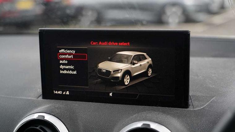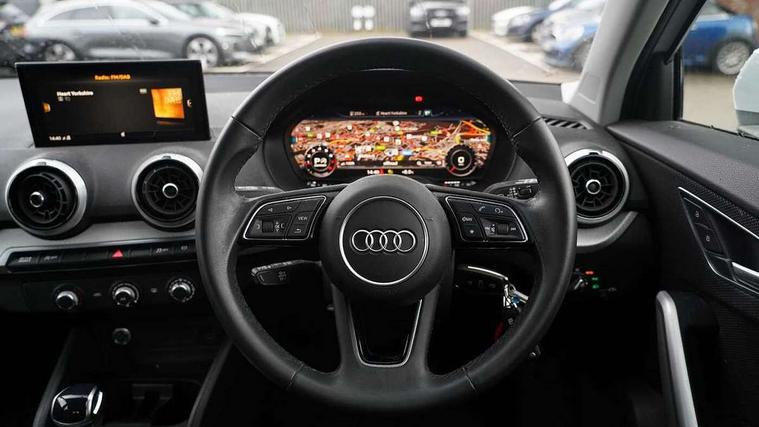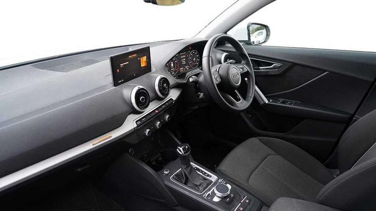 3D map display, Audi connect navigation and infotainment includes innovative services, Audi connect remote and control connects your vehicle to your smartphone, Audi drive select: S tronic - power steering assistance + engine + gearshift (modes: comfort, auto, dynamic, efficiency, individual), Audi smartphone interface - Apple carplay/Android Auto, USB connect, 2xSDXC card readers, voice control for navi, telephone, music and 3rd party apps, Audi virtual cockpit, Automatic start/stop system with recuperation, Bluetooth interface includes bluetooth audio streaming, Camera based traffic sign recognition, Cruise control, Distraction and Fatigue warning, E-call, Jukebox hard drive memory for music (10GB), Lane departure warning, MMI navigation plus with 8.8" touchscreen, Natural voice recognition, Power operated tailgate, Progressive steering, DAB Digital radio, USB type C port, Auto dimming rear view mirror, Black window trims, Body colour door mirrors, Contrast bumpers in Manhattan grey, Electrically adjustable, folding, auto dimming and heated door mirrors with integrated LED side indicators, Front windscreen with grey tinted sunband, LED daytime running lights, LED headlights with dipped beam, high beam, position lights, indicators, LED third brake light, Rear side wing doors, Rear wiper, Side skirts in manhattan grey, Variable front intermittent wipers, Wheel arch trims in manhattan grey, 12V socket in front, 3 seat bench in 2nd row, 3 spoke leather trimmed multi-function steering wheel with height and reach adjustable, 4-way electric lumbar support for front seats including manual seat height adjustment for both front seats, 60/40 split folding rear seat bench, Black carpets, Front and rear head restraints, Front centre armrest, Front sport seats, Front/rear floor mats, Grey cloth headlining, Height/reach adjust steering wheel, Index cloth upholstery, ISOFIX child seat mounting in front passenger and rear outer seats, Manual air conditioning, Single front passenger seat, Technology pack - Q2, 3x3 point rear seatbelts, 6 airbags - Front, curtain and front side airbags, Electromechanical parking brake, Electronic stabilisation control including ABS, ASR and EDL, Front passenger airbag deactivation, Hill hold assist, Pre-sense front with pedestrian recognition, Seatbelt monitoring, Tyre pressure warning light with visual and acoustic warning, Warning triangle and first aid kit, Anti theft wheel bolts, Electronically operated child locks, Remote central door locking, Thatcham category 1 alarm, Aluminium interior element, Black dashboard, Gloss black centre console, Inlays in silver grey diamond paint, Tool kit,