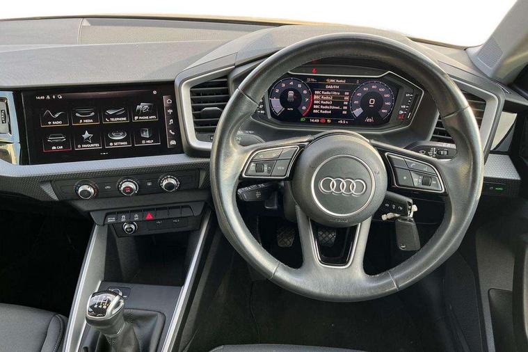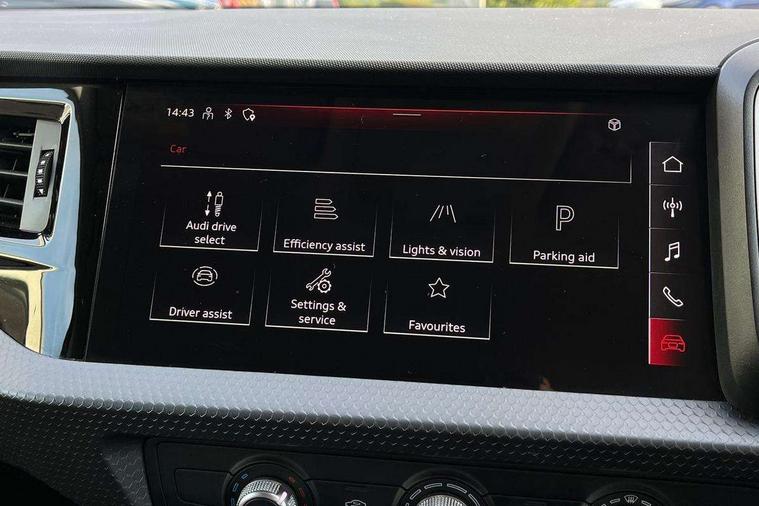 10.25" Digital instrument cluster display classis style instrument dials + speed, odometer, time, outside temperature, telephone menu + fuel level warning, Audi drive select - power steering assistance + engine, Audi smartphone interface with connect compatible smartphone via USB directly MMI display + Nav, music, third party apps controlled via MMI controller, Automatic start/stop system, Bluetooth interface, Cruise control, Driver's information system, Electromechanical power steering, Emergency e-call, Lane departure warning system, Rear parking sensor, Service interval indicator, Speed limiter, Voice control system, Washer fluid level indicator, Dynamic suspension, 2 x USB type C connection points, 6 passive loudspeakers, DAB Digital radio, MMI radio plus with 10.1" colour MMI display screen and MMI touch, Auto dimming rear view mirror, Body coloured bumpers, Body coloured door mirrors, Electric front and rear windows, Electrically adjustable, heated, folding door mirrors with integrated LED side indicator, Front side air inlets in grained matt black and C frame in anthracite black, Heat insulating glass windscreen and side windows, Heated rear windscreen, High level LED brake light, LED headlights with LED rear lights + dynamic rear indicators + headlight adjustment and high beam, turning light + LED daytime running lights, Radiator grille and rear diffuser in matt anthracite black, Radiator protective grille frame in matt aluminium silver, Rain and light sensors, Rear fog lights, Rear side wing doors, Rear wiper, Side front spoiler lips in grained matt black, 12V socket in centre console with two cup holders, 3 rear seats with headrests, 3 seat bench in 2nd row, 3 spoke leather multifunction plus steering wheel, 40:60 Split folding rear seat or folded fully, Black front and rear floor mats, Door sill trims with aluminium inlay, Driver and passenger seat with manual height adjust with forward and backwards adjustment, Front head restraints, Front passenger seat, Grey cloth headlining, Height and reach adjustable steering wheel, ISOFIX child seat mounting for front passenger and outer rear seats including top tether attachment point of outer rear seats, Leather gear knob with aluminium trim, Leatherette handbrake grip, Luggage compartment light with front and rear reading lights, Manual air conditioning, Manually adjustable lumbar support in front seats, Novum cloth upholstery with front sport seats, Luggage compartment pack - A1, 3x3 point rear seatbelts, Audi pre-sense front with pedestrain and cyclist recognition, Brake assist function, Driver and front passenger airbag with front side and head airbags, Electronic Stability Control including ABS, EBD, ASR and EDL, Front passenger airbag deactivation switch, Hill hold assist, Manual rear child locks, Seatbelt height adjustment for front seats, Seatbelt monitoring, Tyre pressure warning light, Warning triangle and first aid kit, Anti theft alarm, Anti theft wheel bolts and loose wheel warning, Immobiliser, Remote central locking with 2 foldaway keys, Aluminium trim for control switches, air vents and digital instrument cluster, Black dashboard, Silver grey accent areas including air vents, door handle recesses and centre console in diamond paint finish, Slate grey inlays polygon structure in fine paint finish,