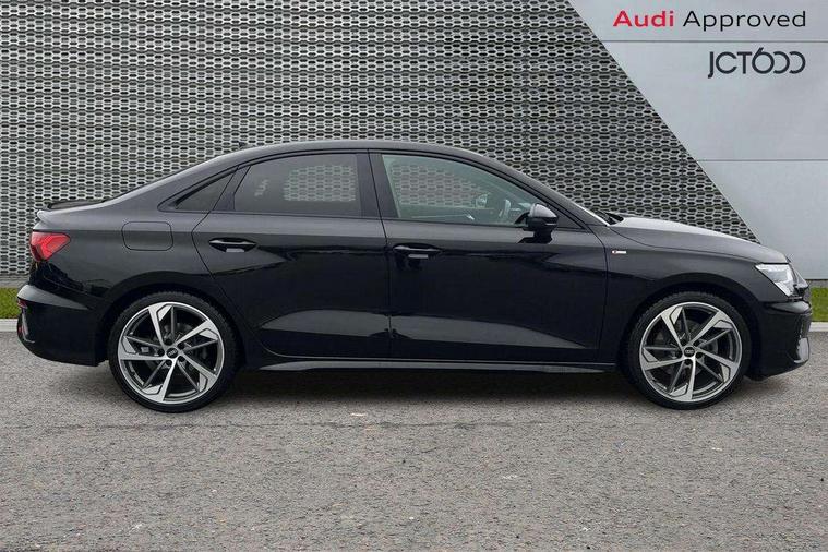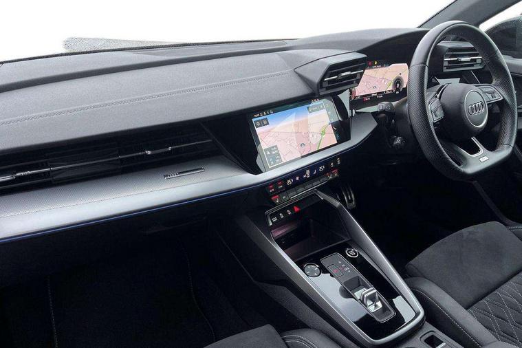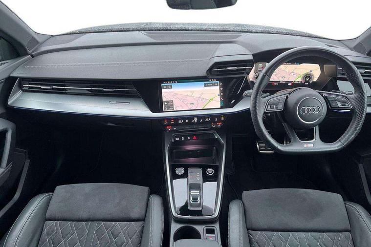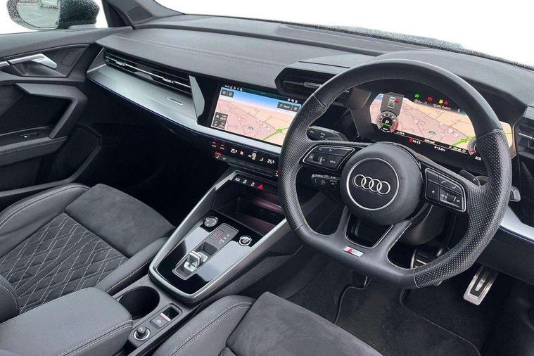 Audi connect emergency call and service, Audi drive select (Auto, Comfort, Dynamic, Efficiency and Individual), Audi smartphone interface, Audi virtual cockpit plus - 12.3" dynamic digital instrument cluster, Automatic start/stop system with recuperation, Bluetooth interface, Collision avoidance assistant, Electromechanical power speed sensitive steering, Lane departure warning system, MMI Navigation Plus with high resolution 10.1" colour touch screen display, Service indicator, Voice control system with natural language interaction, Sports suspension, 2x USB Type C ports (for charging and data transfer), 6 passive loudspeakers, CD player, DAB Digital radio, 3rd brake light, Acoustic glass windscreen, Audi matrix LED headlights, LED rear lights, dynamic front and rear indicators and headlight cleaning system, Auto dimming frameless rear view mirror, Electrically adj heated/folding + automatically dimming exterior mirrors + automatic kerb side function for passenger side exterior mirror, Front electric windows, Illuminated door sills with aluminium inserts at the front with S logo, Integrated LED indicators in door mirrors, LED daytime running lights, Light and rain sensors, Model and engine designation badges at rear, Privacy glass - dark tinted rear window, rear door and side windows, Rear boot, Rear electric windows, Rear side wing doors, S roof spoiler, 12V socket and storage compartment in front centre console, 3 seat bench in 2nd row, 4 way electrically adjustable lumbar support for driver and front passenger, 40/20/40 split folding rear seat bench with cupholder, Black cloth headlining, Dual zone electronic climate control, Electrically adjustable front seats, Front and rear centre armrest in leather, Front and rear headrests, Front/rear floor mats, Heated front seats, Height and reach adjustable steering wheel, Illuminated vanity mirror, Interior lighting - glove compartment light and right hand side, Luggage compartment floor covering, Manual boot compartment lid, Single front passenger seat, Stainless steel pedals and front footrest in black, Aluminium interior elements pack - A3, Black styling pack - A3/S3, Dinamica microfibre/mono.pur 550 artificial leather pack - A3 Saloon, Extended ambient lighting pack - A3/S3 Saloon, LED interior lighting pack - A3 Saloon, 3x3 point rear seat belts, Driver and front passenger airbag with passenger airbag deactivation, Electronic Stabilisation Control (ESC) including ABS, ASR and EDL, First aid kit with warning triangle and 2 safety vests, Front side airbags with head airbags and interaction airbag, Hill hold assist, Pre-sense front with pedestrian and cyclist detection, Seatbelt monitoring, Tyre pressure loss indicator, Anti theft alarm, Anti-theft wheel bolts, Electronically operated child locks, Immobiliser, Remote control central locking, Aluminium air vent surrounds, Aluminium trim elements, Dark spectrum aluminium inlays, accent surfaces in the dashboard and centre console in platinum grey silk effect paint finish, 19" 5 arm trapezoid design alloy wheels in matt grey with diamond cut finish,