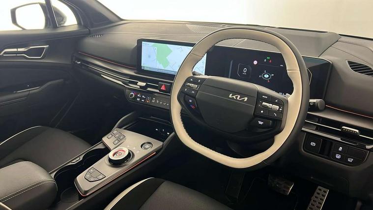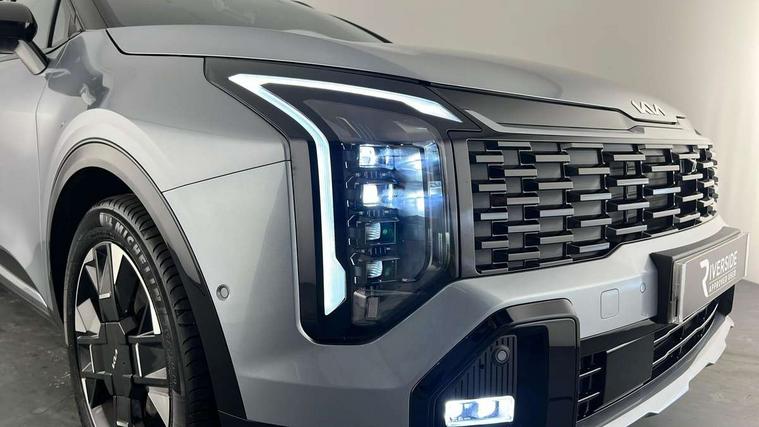 12.3" Driver display screen, 12.3" Touchscreen navigation system, 360 degree around view monitor, Blind spot collision avoidance assist, Blind spot view monitor, Bluetooth connection, Customisable head-up display, Digital key 2.0, Drive mode selector, Driver attention warning, E-call, Emergency stop signalling system, Forward collision avoidance assist 2.0, Front and rear parking sensors, Highway Driving Assist (HDA 2.0), Intelligent speed limit assist, Kia Connect (UVO), Lane Following Assist (LFA), Lane keep assist, Low washer fluid warning, Motor driven power steering, Over the air (OTA) functionality, Parking collision avoidance assist (PCA), Rear cross traffic collision avoidance assist (RCCA), Remote smart parking assist, Reversing camera, Safe exit warning (SEW), Smart cruise control with stop and go functionality, Smart power tailgate, Speed limiter, Trip computer, Windscreen washer level indicator, Wireless apple car play/android Auto, Wireless Smartphone charger, Terrain mode select (Mud, Snow, Sand), DAB Radio with MP3, Front passenger 1x USB-C port, Harman Kardon premium sound system with 8 speakers, Rear passenger 2x USB-C port, Steering wheel mounted audio controls, USB-C port for connection of a media device, Auto dimming rear view mirror, Automatic defog system, Automatic headlight control system, Black and body coloured bumpers, Black window surrounds, Body colour exterior door handles, Body colour radiator upper garnish and door garnish, Dual LED headlights with adaptive driving beam, Electric front and rear windows with front one touch function, Electrically adjustable/heated/folding door mirrors with LED indicators, Front and rear body colour skid plates, Gloss black door mirrors, Gloss black radiator grille, Gloss black wheel arches, Glossy black roof rails, GT-Line exterior styling, Heated rear window, High beam assist, LED daytime running lights, LED front fog lamps, LED High mounted stop light, LED rear lights, Panoramic sunroof with tilting and sliding function with electric blind, Privacy glass in rear windows and tailgate, Rain sensing wipers, Rear fog lamp, Rear roof spoiler, Rear side wing doors, Rear wiper, Satin finished beltline, Trailer stability assist, 12V power socket in front and luggage compartment, 3 seat bench in 2nd row, 3 x passenger assist grips, 40/20/40 split folding rear seat, All-round height adjustable headrests, Alloy pedals, Automatic air conditioning, Black headlining, Centre console storage box, Cupholders in rear armrest, Customisable ambient lighting, Door courtesy lamps, Driver and front passenger sunvisors with illuminated vanity mirrors, Drivers seat power lumbar support, Electric adjustable driver seat with memory function, Electric adjustable front passenger seat, Front and rear door storage, Front seat and rear pockets, Gear shift indicator, Glovebox, GT-Line Interior Styling, Heated front and outer rear seats, Heated steering wheel, ISOFIX Child seat top tethers and anchor fixings outer rear seats, Leather steering wheel, Leather/suede upholstery, LED front cabin light, LED interior personal lamp, LED lighting in overhead console, LED rear reading lights, Luggage area LED light, Luggage area load cover, Luggage area parcel shelf, Luggage board, Luggage compartment under floor storage, Luggage net hooks, Manual adjust steering wheel, Metal paint interior door handles, Paddle shift controls, Rear air conditioning, Rear cabin light, Rear coat hooks, Single front passenger seat, Ventilated front seats, Ventilation ducts to rear compartment, Active front headrests, All round 3-point seatbelts, Anti-lock braking system (ABS), Dual front side airbags, Dual horn, Dynamic brake control, Electronic parking brake with auto hold function, Electronic stability control with downhill brake control, Front passenger airbag cut-off switch, Front seatbelt pretensioners + load limiters, Height adjustable front seatbelts, Hill start assist control (HAC), Impact sensing auto door unlocking, Multi collision brake assist, Rear airbags, Rear door child safety locks, Rear seat alert system, Seatbelt reminder warning, Traction control, Twin curtain airbags, Twin front airbags, Tyre pressure monitoring system, Vehicle stability management, Customisable automatic door locking, Customisable automatic door unlocking, Door deadlocks, Engine Start/Stop Button with Smart Entry System, Locking wheel nuts, Smart key with motion sensor, Speed sensitive auto door locking, Thatcham category 2 security alarm and immobiliser, Visible vehicle identification number, 19" GT-Line alloy wheels, Tyre mobility kit,