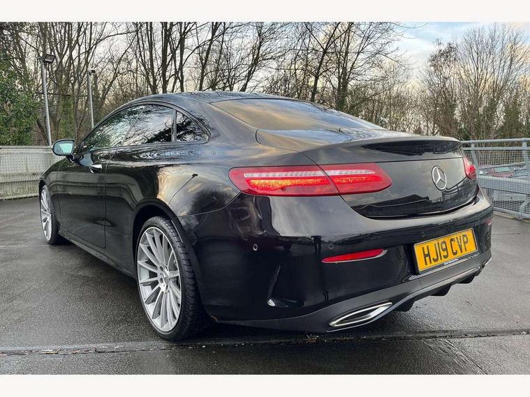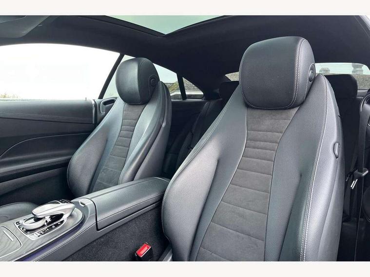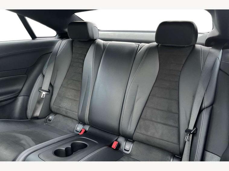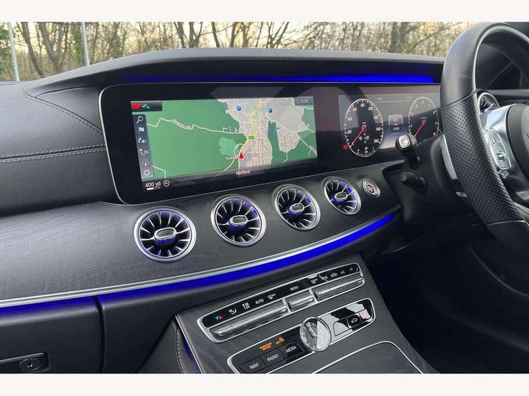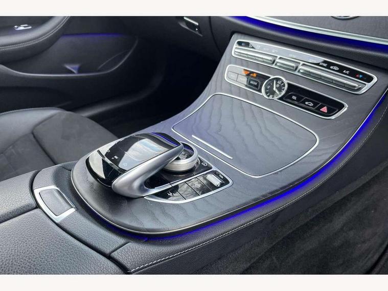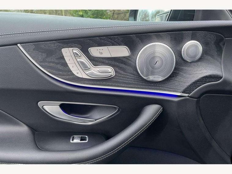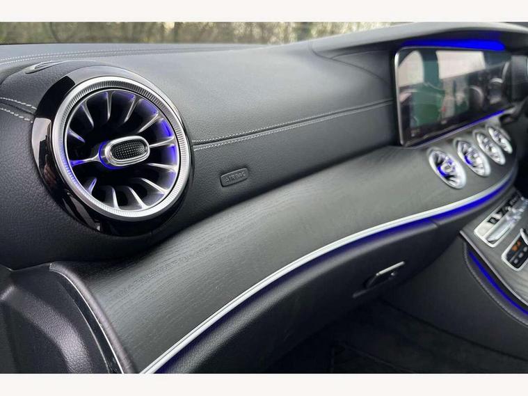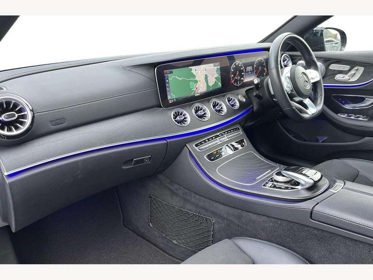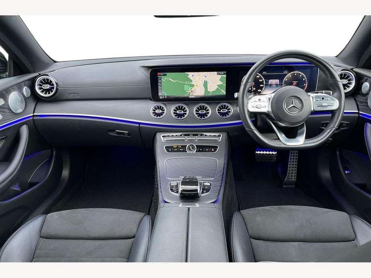 Active parking assist including front and rear parking sensors, Analogue clock, Attention assist, Blind spot assist, Bluetooth interface for hands free telephone, Brake wear warning display, Cockpit display 12.3" widescreen digital instrument cluster, Collision prevention assist plus, Direct steer speed sensitive steering, Direct steering, DYNAMIC SELECT with a choice of driving modes (ECO, Comfort, Sport, Sport+ and Individual), ECO start/stop function, Engine start/stop button, High resolution 12.3" multimedia colour display, Mercedes connect me, Multi function trip computer, Outside temperature display, Remote boot release, Reversing camera, SD card based satellite navigation system, Service indicator (ASSYST), Status display for rear seat belts in instrument cluster, Touchpad with control wheel, 66 litre fuel tank, Agility control sports suspension with selective damping system, 2 USB ports in centre console, Audio 20 with USB, touchpad and control wheel with Media Interface with Bluetooth interface and hands-free function, DAB Digital radio, Adaptive brake lights, AMG bodystyling front and rear aprons, side skirts, AMG boot lid spoiler in body colour, AMG front, rear apron and side skirts, Body colour door handles, Body coloured bumpers, Electric windows with one touch opening/closing and obstruction sensors, Exterior mirrors heated and electronically adjustable, Illuminated front door sill panels with Mercedes-Benz lettering, LED high performance headlamps with integrated LED daytime running lights, Magic Vision Control heated windscreen wiper system, Pre-installation for roof rail systems, Privacy glass Includes rear side windows and rear windscreen, Rain sensing windscreen wipers, Rear LED lights, Sports exhaust system, Top surround of side windows in polished aluminium, Visible twin pipe exhaust system integrated into bumper, 3-spoke flat bottom multifunction AMG steering wheel with Touch Control buttons, trimmed in black nappa leather, 4 way adjustable front head restraints and 2 way rear head restraints, 40:20:40 split folding rear seats, Artico man-made leather upper dashboard and beltlines with contrast stitching, Automatic child seat recognition sensor, Automatic two zone climate control, Bag hook in luggage compartment, Belt feeder driver and front passenger seat belt automatically positioned within easier reach, Black roof lining, Central stowage compartment with 12 V socket in centre console, Centre armrest and door handle illumination, Chrome door pins, Easy entry seats, Floor mats with AMG lettering, Front and rear door pockets, Front centre armrest with stowage compartment, Front footwell lights, Glasses compartment in overhead control panel, Glove compartment - lockable, air conditioned and illuminated, Heated front seats, Interior lighting - 64 colour Ambient lighting, Interior rear light/integral reading lights, Isofix rear child seat fastenings, Multi contour front sports seats, Multi function steering wheel, Partial electric front seats/backrest/height adjust, Rear centre armrest with 2 cupholders + storage, Seat occupancy sensor for front passenger seat, Sports pedals in brushed stainless steel with black rubber studs, Steering column manually adjustable for height and reach, Steering wheel gearshift paddles, Steering wheel touch control buttons for audio and onboard settings, Storage net in luggage compartment, Sunvisors with illuminated vanity mirrors, Twin front cupholders, Mirror pack - E Class, Seat comfort pack - E Class, Stowage pack - E Class, Active bonnet, Active brake assist, Adaptive brake system, Adaptive driver and front passenger airbags, Anti-lock braking system (ABS), Crash sensor (auto door unlocking), Drivers knee airbag, Electric parking brake, Electronic Stability Programme, Front and rear window airbags, Front seatbelt pretensioners, Front side airbags, Head airbags, Hill hold function, Perforated front brake discs with "Mercedes-Benz" lettering, Seatbelt warning, Three point rear seat belts, Tyre pressure monitoring system, Warning triangle and first aid kit, Alarm system/interior protection/immobiliser, Central locking with interior switch, automatic locking and crash sensor with emergency opening function, Chrome surround electric key, Keyless entry go starting function, Black open pore ash wood, Open pore black ash wood centre console, Run flat tyres,