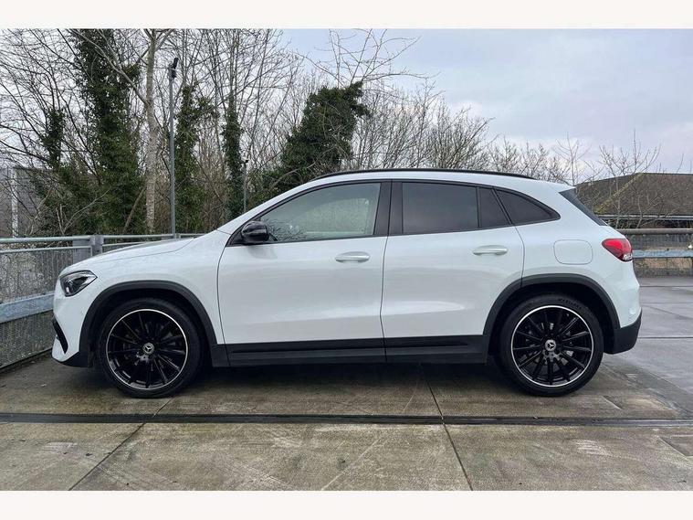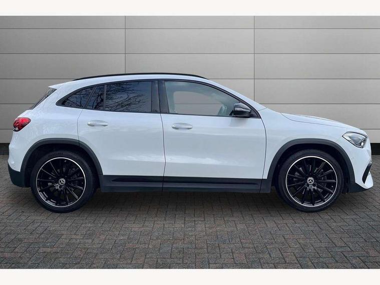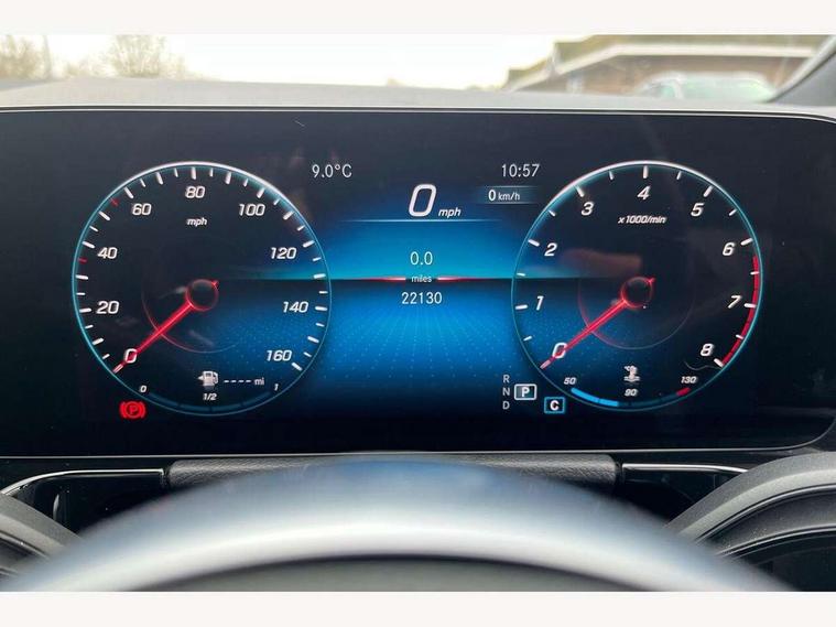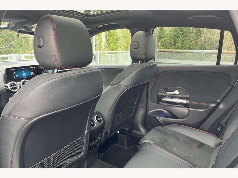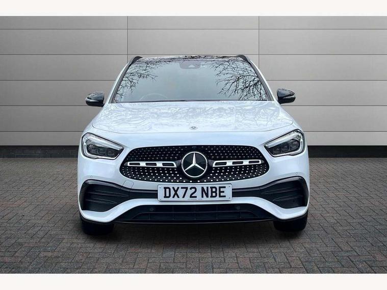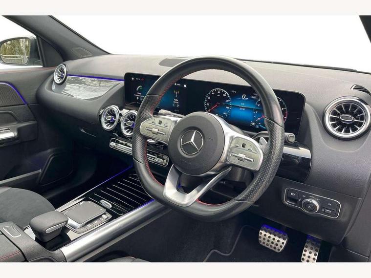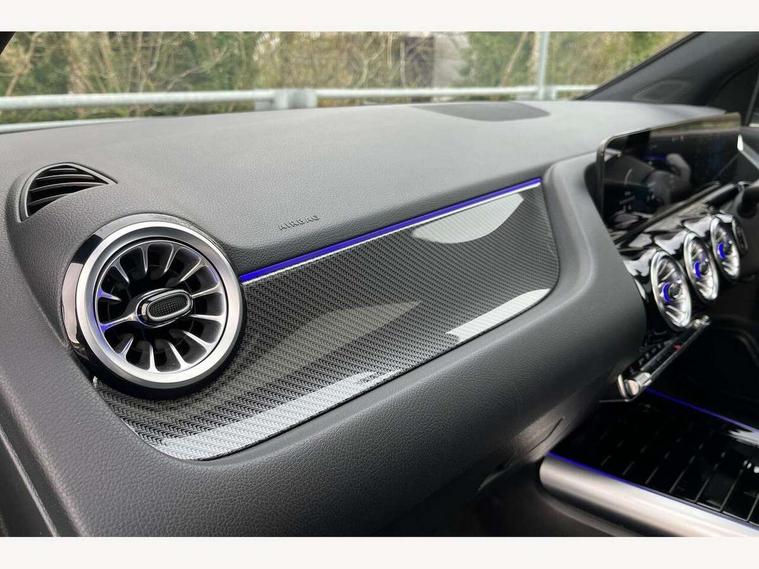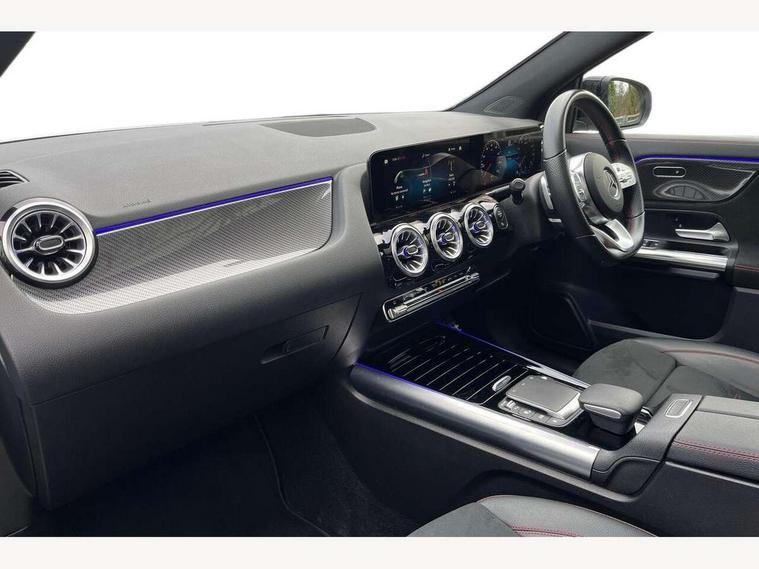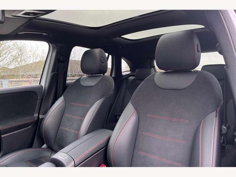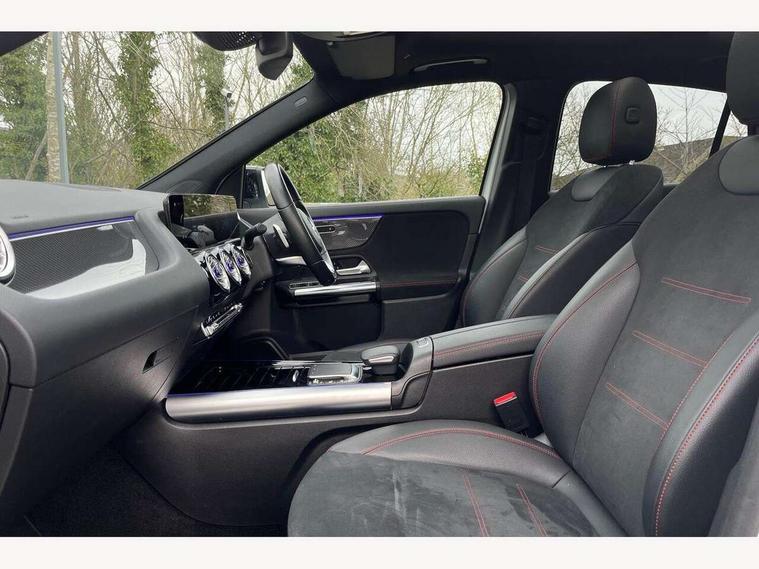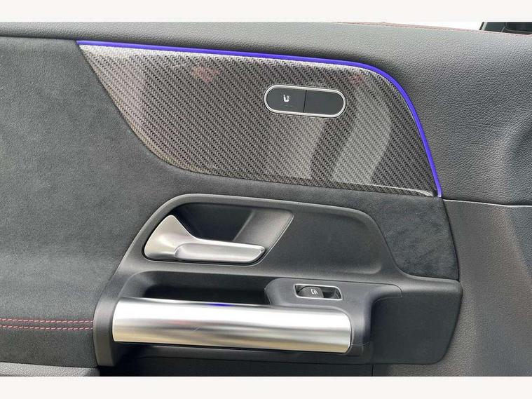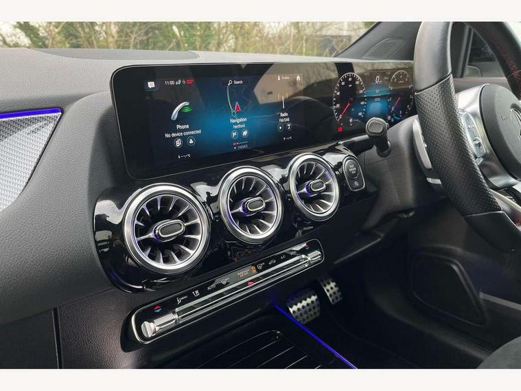 10.25 inch touchscreen central media display, 10.25" Digital instrument cluster display screen, Active lane keeping assist, Attention assist, Cruise control + speed limiter, Direct steering, DYNAMIC SELECT with a choice of driving modes (ECO, Comfort, Sport and Individual), ECO start/stop function, Fluid level warning indicator for fuel, oil, coolant and washer fluid, Hard-disk navigation, Hey Mercedes Voice activation, Lamp failure indicator, Mercedes me connect including emergency call system, accident recovery, breakdown management and maintenance, Mercedes me remote services, Multi function trip computer, Outside temperature gauge, Owners manual and service booklet in English, Pre-installation of private car share, Radio aerial integrated into front and rear windshields, Service indicator (ASSYST), Smartphone integration with Apple CarPlay and Android auto, Speed limit assist, Status display for rear seat belts in instrument cluster, Traffic sign assist, Lowered comfort suspension, Rear axle multi-link, 2 USB ports (type C) in rear stowage compartment and one in front of center console, Bluetooth connectivity including audio streaming, DAB Digital radio, MBUX multimedia system, Media interface, Mercedes-Benz (225w) sound system with 10 speakers, Adaptive brake lights, Adaptive LED tail lights, Aerial for GPS, AMG front and rear apron, AMG specific/dual flow exhaust pipes in chrome (non-functional), Automatic headlamp activation, Beltline strips and weather strip in chrome, Black grained claddings with chrome parts, Body colour bumpers, Body coloured door handles with chrome insert for keyless entry, Car wash function, Dark privacy glass from B-pillar backwards, Electric front windows, Electric rear windows, Electrically adjustable and heated door mirrors with integrated LED indicators, Front bumper with underride guard in high gloss chrome, Heat insulating dark tinted glass, Heated glass rear windscreen + timer control, Heated windscreen wash system, Interior mirror with black reading lamps and frameless, LED daytime running lights, LED third brake light, Matt titanium grey front and rear apron trim, Multibeam LED headlamps with adaptive highbeam assist and cornering function, Panoramic sunroof, Rain sensor windscreen wipers, Rear fog lights, Rear side wing doors, Rear wiper, Roof spoiler, Single lamella raditor grille with chrome dotted diamond grille and inlay, 12V power socket in centre console, 3 seat bench in 2nd row, 3 spoke multifunction sports steering wheel in nappa leather with flattened bottom and perforated grip area, 40:20:40 split folding rear seats with backrest, Adjustable head restraints, Air conditioning - Two zone thermotronic luxury automatic climate control with display, Ambient lighting in front headrests, AMG floor mats in black with AMG lettering in front, Artico man-made leather/Microcut microfibre upholstery with red contrast stitching, Auto Mercedes-Benz child seat recognition sensor, Black roof lining, Brushed door pulls in silver chrome, Courtesy light in boot, Electrically adjustable front memory seats with four way lumbar support, Floor mats in velour, Front centre armrest with stowage, Galvanished gear shift paddles on steering wheel, Heated front seats, illuminated door sills with changeable cover, Illuminated glovebox, Interior lighting - 64 colour Ambient lighting, Leather trimmed gearknob, Luggage net on driver/front passenger seat backrest, Manually height and reach adjustable steering column, Multi-gesture touchpad control on center console, Single front passenger seat, Sports pedals in brushed stainless steel with black rubber studs, Sports seats, Stowage compartment in centre console, Stowage compartment with retractable cover, Sunvisors with illuminated vanity mirrors, Twin front cup holders, Two outer rear seat isofix and top tether child seat fixing points, AMG body styling pack - GLA, Interior lighting with light and sight pack - GLA, Keyless go comfort package - GLA, Load compartment pack - GLA, Mirror pack - GLA Class, Night package - GLA, Parking pack - GLA, 3 rear 3 point seatbelts, ABS with Brake Assist, Active bonnet pedestrain safety measure which detects an impact and raises bonnet by 65mm, Active brake assist includes forward collision warning system with autonomous braking, Adaptive brake assist with hold function and hill start assist, Bonnet with power domes, Brake pad wear warning indicator, Childproof locks manually operated for rear doors and electrically operated for rear power windows, Crash responsive emergency lighting, Driver and passenger head and side airbags, Drivers knee airbag, Dual stage driver/passenger airbags, Electronic parking brake, ESP curve dynamic assist, ESP with ASR, Front and rear seatbelt reminder, Front brake callipers with Mercedes Benz logo lettering on front, Front passenger seat occupancy sensor, Internally ventilated brakes with perforated brake discs at the front, Sports braking system, Tyre pressure monitoring system, Warning triangle and first aid kit, Window airbags, Alarm system with immobiliser and interior protection -Thatcham category 1, Keyless entry lock/unlock, Keyless Go starting function, Remote central locking and crash sensor with emergency opening function, Urban guard vehicle protection, Vehicle key with decorative surround in chrome, Carbon structure trim, Chrome air vent surrounds, 20" AMG multi spoke light alloy wheels painted in high gloss black with high sheen rim flange, Summer tyres, Tirefit tyre sealant kit,