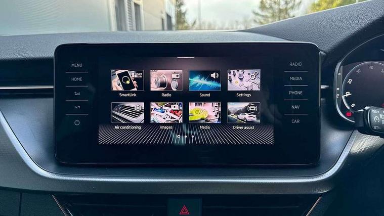 Amundsen satellite navigation with 9.2" glass colour touchscreen with virtual cockpit, web radio, Android Auto, Bluetooth system, Colour multifunction trip computer, eCall emergency system, PAS, Rain and light assist with auto dimming rear view mirror, Rear view camera, Speed limiter, Tailgate, Traffic sign recognition, Virtual cockpit, Voice control system, Wireless SmartLink for Apple Car Play, 2 USB - C ports, 8 loudspeakers, DAB Digital radio, 3rd brake light, Automatic headlamp activation with Coming home and Leaving home feature, Body colour door mirrors and handles, Chrome grille surround, Dimming rear view mirror with black frame, Electric folding door mirrors, Electrically adjustable and heated door mirrors, Front and rear electric windows, Front fog lights with cornering function, LED rear tail lights with dynamic indicators, Privacy glass, Rear side wing doors, Rear wiper, Tinted windows, 12V Accessory socket in centre console, 3 seat bench in 2nd row, Chrome inner door handles, Chrome on gear and handbrake lever, Chrome strip on the dash and door panel, Dual zone climate control, Front head restraints, Glasses storage in roof liner, Instrument cluster with chrome painted decor ring, ISOFIX for rear passenger seat, Leather gearknob and handbrake lever, Manual lumbar support for front seats, Net in centre console, Reading lights for driver and front passenger, Single front passenger seat, Sun visor with make up mirror for front passenger, Textile floor mats, Third rear headrest, Umbrella, 3x3 point rear seatbelts, Curtain airbags, Emergency call and proactive services, Front head and side airbags, Hill hold control, Manual rear child locks, One tone horn, Passenger airbag switch off function, Seat belt reminder for all seats, Alarm, Anti-theft wheel bolts, Keyless entry with start/stop button, Remote central locking with 2 remote folding keys, SAFE function for remote central locking, Latice grey decorative insert with copper hot stamping, Temporary space saver wheel,