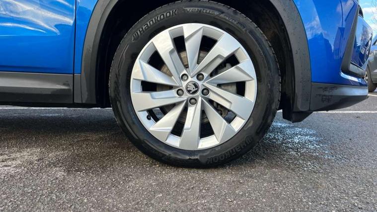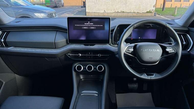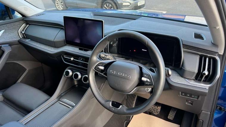13" satellite navigation touchscreen display, Blind spot detection with door exit warning, Bluetooth system, ChatGPT functionality, Driver alert - Fatigue and drowsiness monitor, Dry display cleaner, Emergency call, Front and rear parking sensors, Front cross traffic assist, Lane assist, PAS, Rear traffic assist, Tailgate unlocking from outside, Traffic sign recognition, USB C Port x 2 in front centre console, Virtual Cockpit - 10.25" digital display, Voice control system, Wireless charging for two smartphones (15W) with cooling function, Wireless SmartLink for Apple CarPlay and Android Auto, Stop/start function, 2x USB-C in the rear, DAB Digital radio, Aero front windscreen wipers with intermittent function, Auto dimming rear view mirror, AWL (all weather lighting) and all weather light with cornering function, Black wheel arch surrounds, Body colour bumpers, Body colour door mirrors and handles, Cornering light and poor weather light, Electric folding /adjustable/separted heated/folding door mirrors, auto dimming with boarding sports and memory function, Electric front and rear windows, Exterior black decorative trims, Heat insulating glass in windshield, Heated rear window, Ice scraper in fuel tank cap, Invisible tailpipe, LED daytime running lights, LED third brake light in rear spoiler, Light assistant with automatic headlight control and coming home feature, Logo projection in door mirrors, Privacy glass, Rear roof spoiler, Rear side wing doors, Rear window wiper, Red decorative strip between rear LED lights, Safety reflectors on front and rear doors, Unique dark chrome design logo on alloy wheels, Window control switches with black trim, Windscreen wipers with rain sensor, Without engine designation, 1.5l bottle holder points in all door, 1x centre rear reading light, 2 seat bench in 3rd row, 3 configurable smart dials with 32mm coloured display, 3 seat bench in 2nd row, 4 foldable roof handles with rear coat hooks, Ambient interior lighting - Dashboard, front-door stowage compartments, front and rear door panels and footwell lighting, Automatic gear selector on steering column, Chrome interior door handles, Driver/front passenger reading lights, Fabric headlining, Fixed bench 40:60:40 split folding backrests, Front and rear floor mats, Front centre armrest with jumbo box storage compartment, cup holder and 12V socket, Height adjustable front headrests, Isofix child seat fittings in outer middle row rear seats and front passenger with top tether, Manually adjustable steering column, Pollen filter, Rear centre armrest with cupholders, Rear seat boot backrest release, Single front passenger seat, Skoda lettering on steering wheel, Storage pocket including mobile phone pockets on the backs of the front seats, Sunvisors with illuminated vanity mirrors, Three rear height adjustable headrests, Ticket holder on A Pillar, Tri zone climate control, Umbrella in door panel x1 made from sustainable materials, Upper and lower glovebox with card holder and coin compartment, USB C port by rear view mirror for charging only (15W), Exterior styling pack - Kodiaq, Auto door release and activation of warning lights in the event of an accident, Driver and front passenger airbag with knee airbag and front passenger airbag deactivation, Electric child locks, Electronic parking brake, ESC (incl. ABS+EMD+MSR+ASR+EDL+HBA+DSR+RBS+ESBS+MCB+TSA+XDS), Front assist with braking reaction to vehicles, pedestrians and cyclists, Front disc brakes, Fuel cut off safety device, Height adjustable front 3 point seatbelts + pretensioners, Hill hold assist, Junction assist with automatic emergency braking, Rear disc brakes, Safety vest holder in door, Seat belt reminder for all seats, Three point rear seat belts, Two tone horn, Tyre pressure monitor, Anti-theft wheel bolts, Immobiliser, Remote central locking with 2 keys,