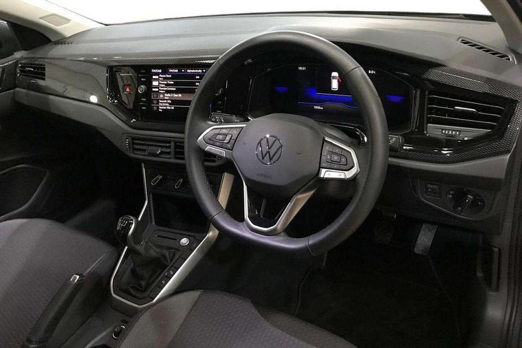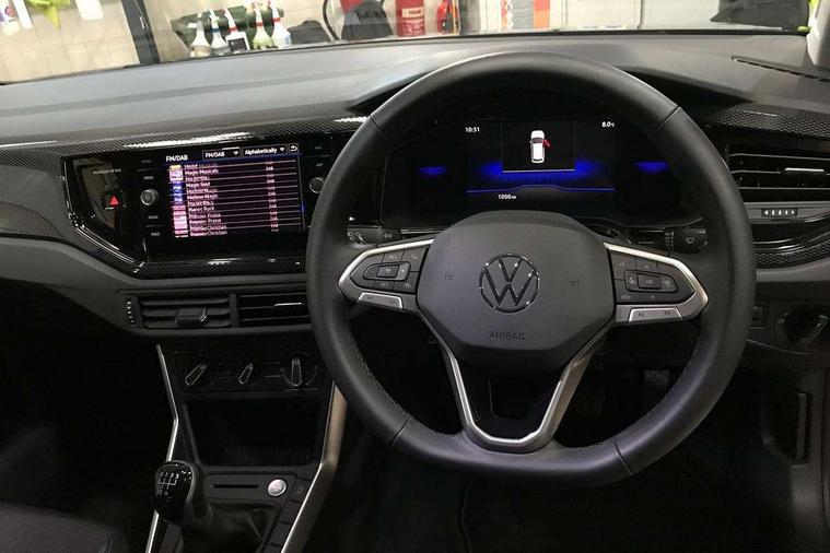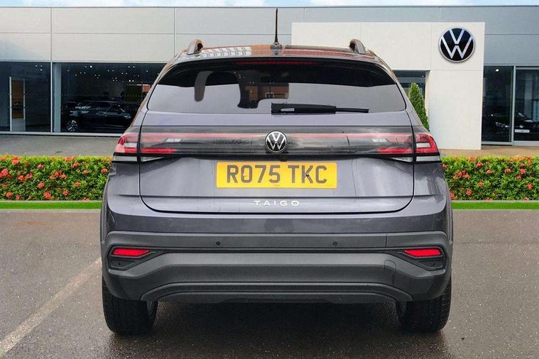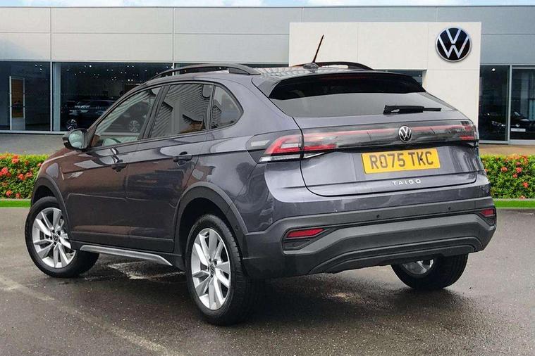 8" Digital cockpit basic display, Advanced driver attention and drowsiness monitor, Dynamic road sign display, e-Call (emergency call), Power Steering, Predictive adaptive cruise control, Rear view camera, Travel assist including emergency assist, Washer fluid level indicator, Wireless Charging including Bluetooth, Start-stop system with battery regeneration (recuperation - energy recovery during braking), Digital radio reception (DAB+), WeConnect plus, Ambient lighting with logo projection, Aspherical driver's exterior mirror, Body coloured bumpers, Body coloured exterior mirror housings and door handles, Electric windows, External USB type C socket and charging sockets, Heat insulating glass windscreen, LED rear combination lamp, LED third brake light, Left convex exterior mirror, Power folding adjustable/heated exterior mirrors and front passenger exterior mirror lowering function, Rear fog light on one side, reversing light on both sides, Rear side wing doors, Rear wash/wipe with intermittent wipe setting, Side windows in heat-insulating glass, from B-pillar and rear window dark tinted, 'Slash/ Austin' Cloth upholstery, 12V socket in centre console, 2 front reading lights, 3 rear head restraints, 3 seat bench in 2nd row, Black carpets, Ceramique headliner, Child seat anchor for child seat system i-Size, 2x top tether and child seat anchor in front on front passenger side, Door and side trim panels in titan black, Driver and front passenger seat height adjustment, Front centre armrest, Handbrake lever handle in leather, Height and reach adjustable steering wheel, Leather trimmed gear knob, Leather wrapped multifunction steering wheel, Luggage compartment floor, Luggage compartment light, Lumbar support for driver's and front passengers seat, Seat covers in titanium black, Single front passenger seat, Split folding backrest with centre armrest and unsplit rear seat bench, Storage compartment under front seats, Sun visors with illuminated vanity mirrors, Titanium black instrument panel, Chrome Package - Taigo, Drivers assistance package - Taigo, Light and sight pack - Taigo, 2 x 3-point seatbelts/outer rear seats with ECE label, 3-point seat belts in front with pretensioner and height adjustment, 3-point seatbelt for centre rear seat, Driver and front passenger airbag with front passenger airbag deactivation, Driver and front passenger safety-optimised head restraints, Electronic stability control, Extended and predictive pedestrian/ cyclist protection, Front and rear disc brakes, Front curtain and side airbags with center airbag, Hill start assist, Manual rear child locks, Single tone horn, Tyre pressure loss indicator, Anti-theft alarm system with interior monitoring, backup horn, and towing protection, Keyless locking and starting system keyless access with safelock, Black (slush) Dashboard, Lava stone black gloss/matt decorative inserts in dash and front door panels, Low rolling resistance tyres,