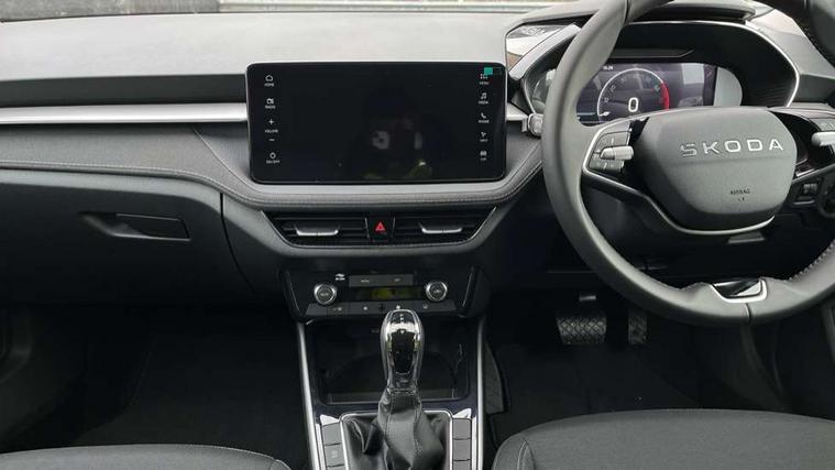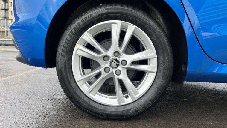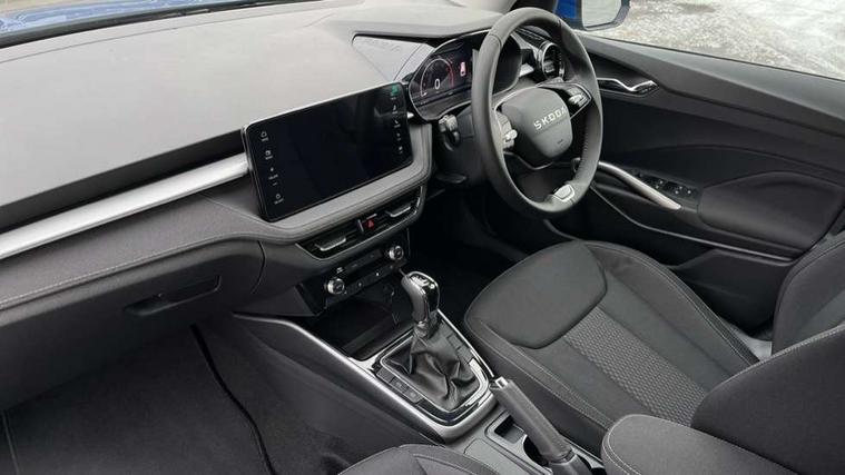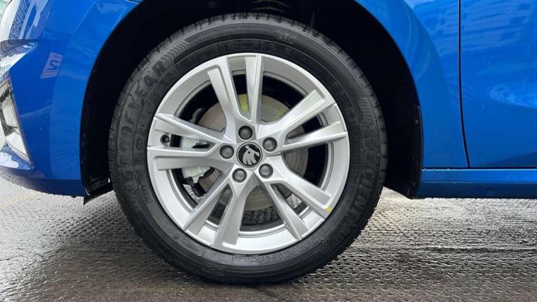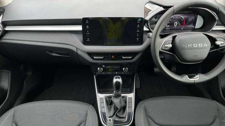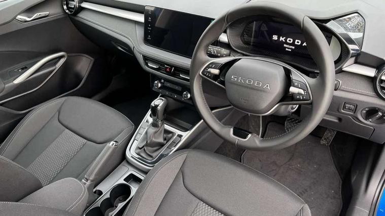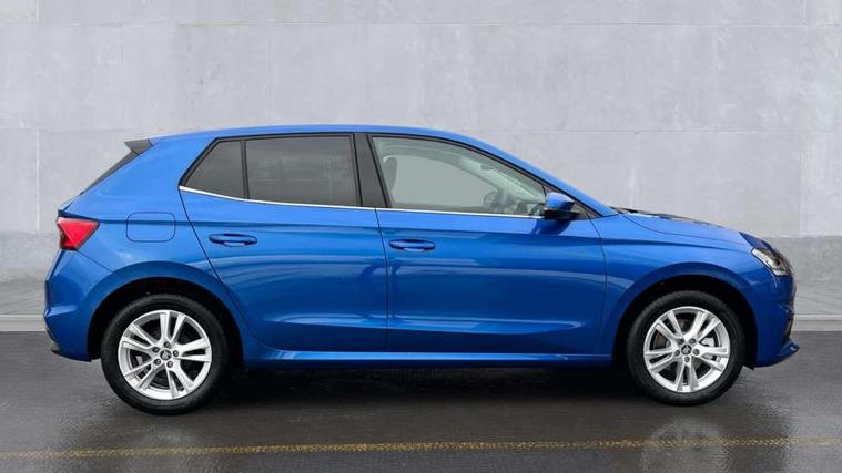 Advanced driver attention and drowsiness monitor, Bluetooth connection, Driver alert system, Electromechanical power steering, Exterior temperature gauge, Service interval indicator, Traffic sign recognition, Virtual cockpit with 10.25" colour display, Wireless SmartLink for Apple CarPlay and Android Auto, 6 Speakers (4 in front and 2 in rear), 9.2" colour display skoda navigation system with voice control and web radio, Auxiliary socket for external MP3 player, DAB digital radio reception, Auto dimming rear view mirror, Body colour door mirrors, Body coloured bumpers, Chrome window surround, Door mirror integrated indicators, Front and rear electric windows, Front window wiper intermittent control, Headlight range control - Automatic, Ice scraper in fuel cap, LED 3rd brake light, LED daytime running lights with coming and leaving home feature, LED rear lights, Privacy glass, Rear LED fog light, Rear side wing doors, Rear window wiper with washing nozzles, Roof mounted spoiler, SKODA tailgate lettering in chrome, Unique dark chrome design logo on alloy wheels, 2 LED reading lights in front and rear, 3 rear headrests, Backrest split and folding, Central console with fixed cup holder and storage box, Chrome handbrake release button, Comfort seats, Door sills with fabia badging, Dual zone air conditioning with climatronic electronic control, Fabric upholstery, Front centre armrest, Gearshift knob/handle in leather, Grain satin black interior door handles, Hand brake lever handle in leather, Height adjustable front headrests, Height adjustable front seats, Height adjustable steering wheel, ISOFIX and TopTether anchorage points to the outer rear seats, ISOFIX and TopTether on the front passenger seat, Luggage compartment lighting, Manually adjustable lumbar support in front seats, Pollen filter, Rear seat bench unsplit, Single front passenger seat, Skoda lettering on steering wheel, Storm grey headlining, Sun visors with mirror and airbag label on passenger side, Textile floor mats, Ticket holder, Ambient lighting pack - Fabia Hatchback, 3-point height adjustable front seats belts with pretensioner and force limiter, Automatic warning lights in case of crash, Driver and passengers airbag with switch off function, e-Call+, ESC including ABS, MSR, ASR, EDS, HBA and XDS, Front and rear seat belt warning, FRONT ASSIST (AEB City and AEB Inter Urban), Front side airbags, Head airbags, Hill hold control, One tone horn, Pedestrian protection, Three rear 3-points safety seat belts with pretensioner and force limiter including stop function for outer rear seat belts, Tyre pressure monitoring system, Anti-theft alarm system including immobiliser, interior monitoring, backup horn, and towing protection, Central locking with radio remote control, interior controls, SAFE function and 2 foldable keys, Chrome edged air vents, Grain satin black central console cover, Metallic grey upper decorative trim, Satin black door and side trim panel in front, Textile microsuede grey lower decorative trim with art grey stitching, Anti-theft wheel bolts protection, Super-low rolling resistance tyres,