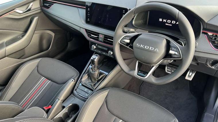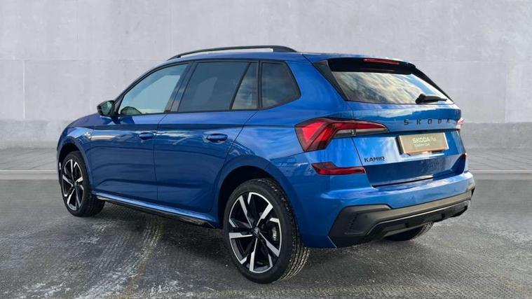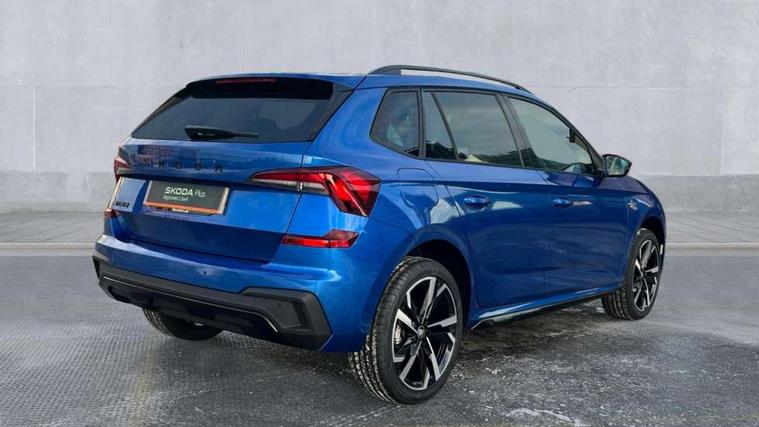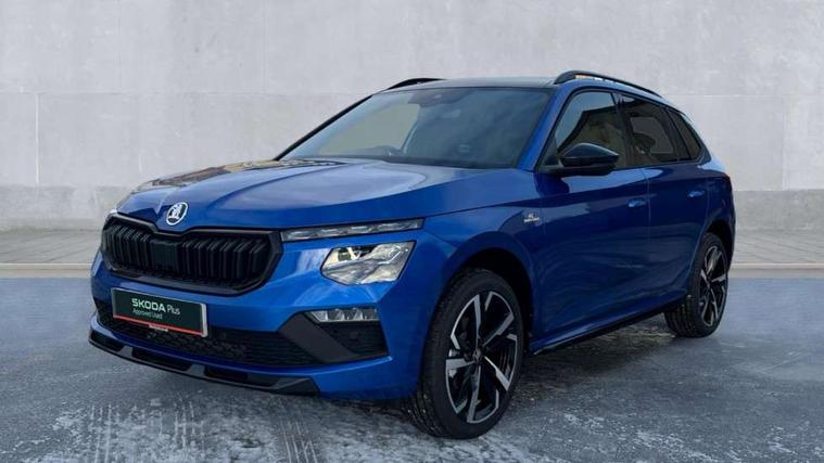 Advanced driver attention and drowsiness monitor, Bluetooth system, E-call, Front assist system, PAS, Rear parking sensors, Rear view camera, Service indicator, Speed limiter, Traffic sign recognition, Virtual cockpit with 10.25" display, Voice control system, Wireless smartlink, 4 USB C ports, 8 Speakers, 9.2" Skoda navigation display, DAB Digital radio, Auto dimming rear view mirror, Automatic headlight control with coming home and leaving home feature, Black door mirrors, Black radiator grille, Black rear diffuser, Black roof spoiler, Body colour bumpers, Body colour door handles, Boot lettering in black, Extended tailgate glass, Fixed panoramic sunroof with black roof rails, Front and rear electric windows, Heated rear window, LED daytime running lights, LED high beam, LED low beam, LED third brake light, Light sensors, Monte carlo plaque, Privacy glass, Rear side wing doors, Rear wiper, Ticket holder inside windscreen, 12V socket in luggage compartment, 3 seat bench in 2nd row, Aluminium pedals, Ambient lighting in white/red, Art leather carbon decor inserts, Art leather carbon door inserts, Black roof lining, Cargo elements, Chrome inner door handles, Driver and passenger sun visors with vanity mirror, Dual zone climate control, Front and rear roof lights, Front centre armrest, Front head restraints, Glove compartment with illumination, Height adjustable driver seat, Height adjustable front passenger seat, Ice scraper, Inner circulation control with pollen filter, ISOFIX on front passenger seat, Isofix preparation for back seats, Leather gearknob and handbrake lever, Manual lumbar support for front seats, Monte Carlo cloth upholstery, Net package and top tether hooks in boot space, Net under rear shelf, Pocket on the back of both front seats include mobile phone pockets, Rake/reach adjustable steering wheel, Reading lights, Rear centre armrests, Red hotstamping, Single front passenger seat, Sports seats, Textile floor mats, Third rear headrest, Top tether for front passenger seat, Umbrella in driver's door, Light and view plus package - Kamiq, 3x3 point rear seatbelts, Airbags - driver and front passenger, Disc brakes, ESP, Extended and predictive pedestrian/cyclist protection, Front passenger airbag deactivation switch, Front side airbags with curtain airbags, Hill hold control, Manual leather parking brake, Manual rear child locks, One tone horn, Seatbelt reminder for driver an co-driver, Traction control, Tyre pressure monitor, Anti-theft alarm system with interior monitoring, backup horn, towing protection and remote central locking with SAFE system, Anti-theft wheel bolts, Electronic engine immobilizer, 18" Ursa black diamond cut alloy wheels,