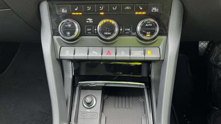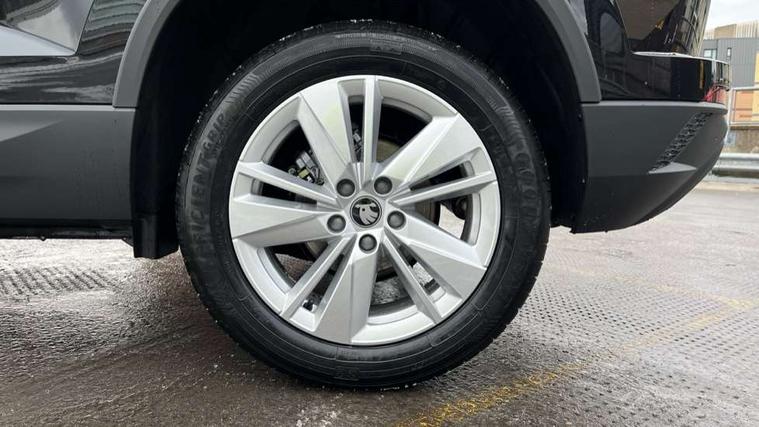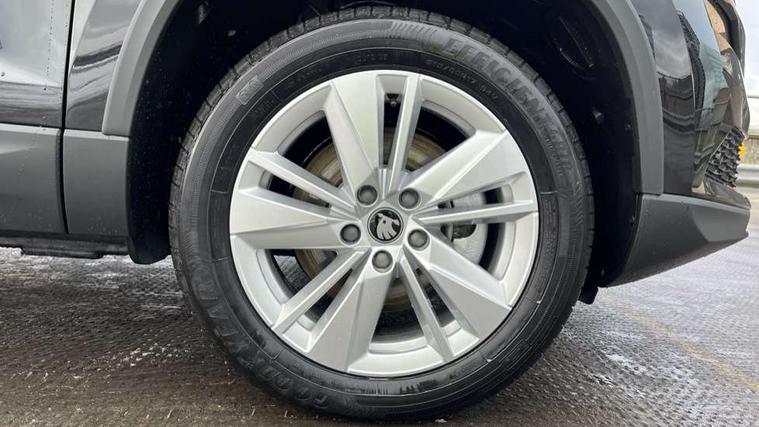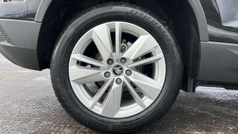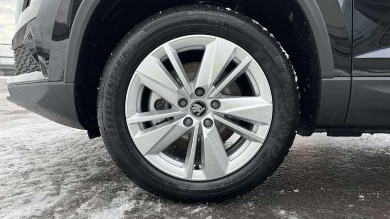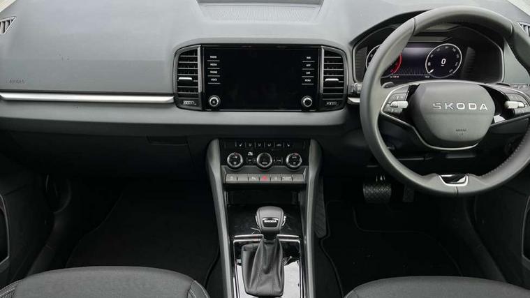 Advanced driver attention and drowsiness monitor, Amundsen navigation system with 8" touchscreen display and integrated WLAN and web radio, Electro-mechanical PAS, Emergency services call system, Lane assist, Outside temperature gauge, Sensor for driver assistance systems, Service interval indicator, SmartLink wireless for Apple and wired for Android, Start/stop system with regenerative braking, Traffic sign recognition, USB C Port x 2 in front centre console, Virtual Cockpit - 10.25" digital display, Wireless smartphone charging, 8 Speakers, DAB radio with Bluetooth, USB connection, Acoustic glass, Aero front windscreen wipers with intermittent function, Auto dimming rear view mirror with light and rain sensors, Black electric window control buttons, Body colour door mirrors and handles, Electric front and rear windows with child proof lock, Electrically adjustable heated folding and auto dimming door mirrors, Front fog lights, Headlight range control, Heated rear windscreen, LED daytime running lights, LED Headlights, LED rear lights with high functionality welcome effect and dynamic indicators, Light assistant (coming/leaving home/tunnel light), Plastic scuff plates in door apertures, Privacy glass, Rear side wing doors, Rear window wiper with washer system and intermittent control, Safety reflectors on front doors, Third brake light, Unique dark chrome design logo on alloy wheels, 1.5 litre bottle holders in driver and front passenger door panels, 12V socket in boot, 12v socket in front centre armrest with storage compartment and rear air vents, 2 spoke leather heated multifunction steering wheel with DSG paddles, 2 x Tablet holder, 3 rear height adjustable headrests, 3 seat bench in 2nd row, 4 foldable roof handles with rear coat hooks, Black floor carpet, Cargo elements in boot, Chrome inner door handles, Driver/front passenger reading lights, Foldable hooks in the boot, Folding tables on the front seat backrests, Front head restraints, Height adjustable driver and passenger seat, Height adjustable front three point seats belts with tensioners, Height/reach adjust steering wheel, Ice scraper, Illuminated glovebox, Illuminated luggage compartment, Interior noise suppression, Isofix child seat preparation for front passenger seat, Isofix child seat preparation outer rear, Loft fabric upholstery, Manual lumbar support for front seats, Pearl grey interior ceiling, Pen holder, Pollen filter, Rear boot cover, Rear package tray, Rear reading lights, Rubbish bin door, Safety vest holder, Single front passenger seat, Skoda lettering on steering wheel, Storage box in upper central dashboard closed, Sunvisors with illuminated vanity mirrors, Textile floor mats, Ticket holder, Umbrella under passenger seat, Under passenger seat storage compartment, Non Smokers pack, Parking pack - Karoq, Winter pack with heated front seats - Karoq, Automatic door unlocking in case of crash, Automatic fuel cut off in case of crash, Driver airbag, Electronic parking brake with auto hold function, Emergency rear braking signal, ESC (incl. ABS+MSR+ASR+EDS+HBA+DSR+RBS+MKB), Front assist, Front side airbags, Head airbags, Hill hold control, Knee airbags, Passenger airbag with switch-off function, Pedestrian monitor, Power operated child safety locks, Seatbelt reminder signalisation and pretensioner for all seats, Three point seatbelts rear, Two tone horn, Tyre pressure monitor, Alarm with interior monitoring, back up horn and tilt sensor with safe function, Electronic engine immobiliser, Keyless entry and start/stop, Remote central locking with 2 remote folding keys, Anodized cross door decor, Black centre console, Chrome framed air vents, Satin black dashboard, Satin black door trim, Anti-theft wheel bolts protection, Breakdown and tool kit,