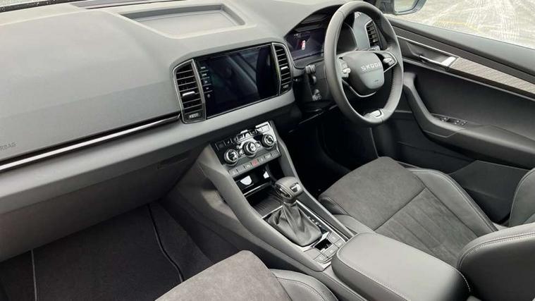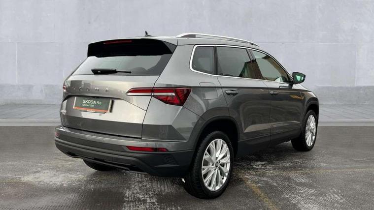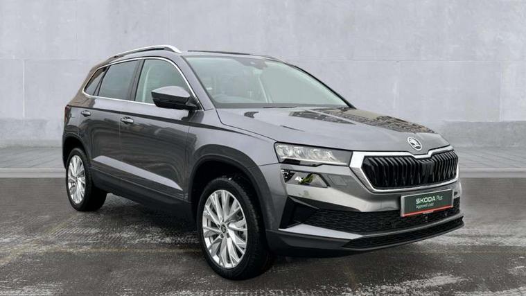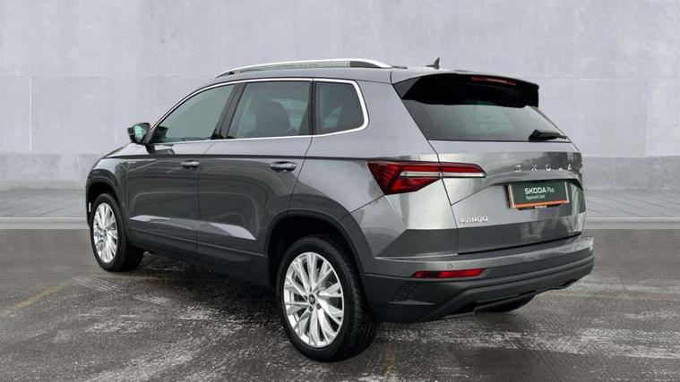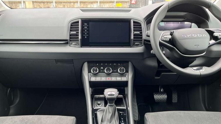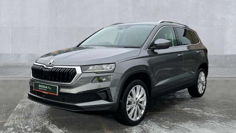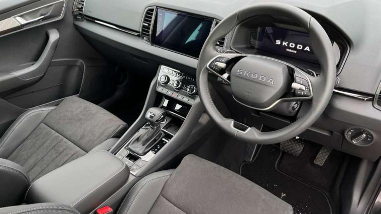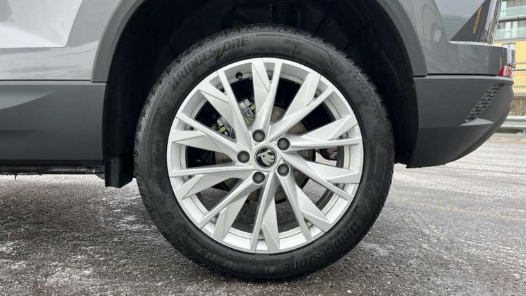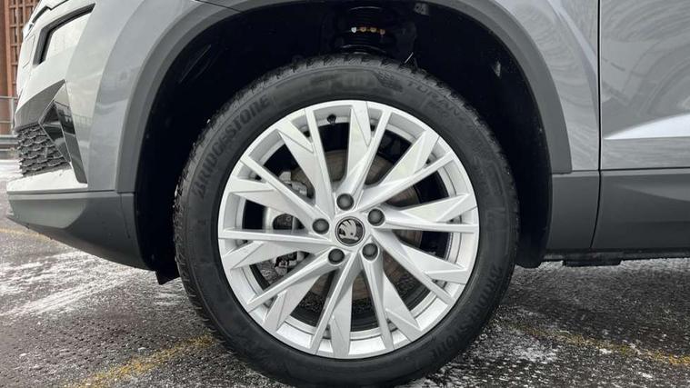 Advanced driver attention and drowsiness monitor, Drive Mode Selection including ECO function, Electro-mechanical PAS, Emergency services call system, Outside temperature gauge, Sensor for driver assistance systems, Service interval indicator, SmartLink wireless for Apple and wired for Android, Start/stop system with regenerative braking, Traffic sign recognition, USB C Port x 2 in front centre console, Virtual Cockpit - 10.25" digital display, Virtual pedal with electrically operated boot door, Wireless smartphone charging, DAB radio with Bluetooth, USB connection, Acoustic glass, Aero front windscreen wipers with intermittent function, Auto dimming rear view mirror with light and rain sensors, Black electric window control buttons, Body colour door mirrors and handles, Electric front and rear windows with child proof lock, Extended rear roof spoiler, Heated rear windscreen, LED daytime running lights, LED rear lights with high functionality welcome effect and dynamic indicators, Light assistant (coming/leaving home/tunnel light), Plastic scuff plates in door apertures, Privacy glass, Rear side wing doors, Rear window wiper with washer system and intermittent control, Safety reflectors on front doors, Third brake light, Unique dark chrome design logo on alloy wheels, 1.5 litre bottle holders in driver and front passenger door panels, 12V socket in boot, 12v socket in front centre armrest with storage compartment and rear air vents, 2 spoke leather heated multifunction steering wheel with DSG paddles, 2 x Tablet holder, 3 rear height adjustable headrests, 3 seat bench in 2nd row, 4 foldable roof handles with rear coat hooks, Black floor carpet, Cargo elements in boot, Chrome inner door handles, Decorative door sills with KAROQ badging, Foldable hooks in the boot, Front head restraints, Height adjustable front three point seats belts with tensioners, Height/reach adjust steering wheel, Ice scraper, Illuminated glovebox, Illuminated luggage compartment, Interior noise suppression, Isofix child seat preparation for front passenger seat, Isofix child seat preparation outer rear, Manual lumbar support for front seats, Pearl grey interior ceiling, Pen holder, Pollen filter, Rear boot cover, Rear package tray, Rear reading lights, Rubbish bin door, Safety vest holder, Single front passenger seat, Skoda lettering on steering wheel, Storage box in upper central dashboard closed, Sunvisors with illuminated vanity mirrors, Textile floor mats, Ticket holder, Columbus pack - Karoq, Design Pack - Karoq, Non Smokers pack, Parking pack - Karoq, Automatic door unlocking in case of crash, Automatic fuel cut off in case of crash, Driver airbag, Electronic parking brake with auto hold function, Emergency rear braking signal, ESC (incl. ABS+MSR+ASR+EDS+HBA+DSR+RBS+MKB), Front side airbags, Head airbags, Hill hold control, Knee airbags, Passenger airbag with switch-off function, Pedestrian monitor, Power operated child safety locks, Seatbelt reminder signalisation and pretensioner for all seats, Three point seatbelts rear, Two tone horn, Tyre pressure monitor, Alarm with interior monitoring, back up horn and tilt sensor with safe function, Electronic engine immobiliser, Keyless entry and start/stop, Remote central locking with 2 remote folding keys, Black centre console, Chrome framed air vents, Satin black dashboard, Anti-theft wheel bolts protection, Breakdown and tool kit,