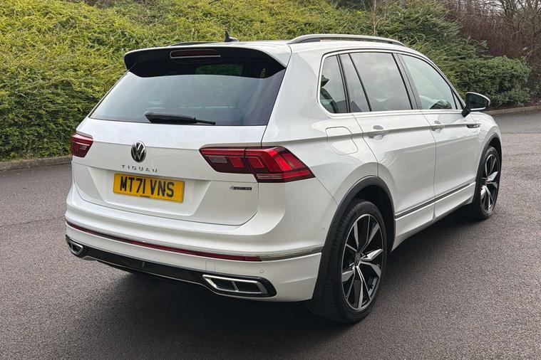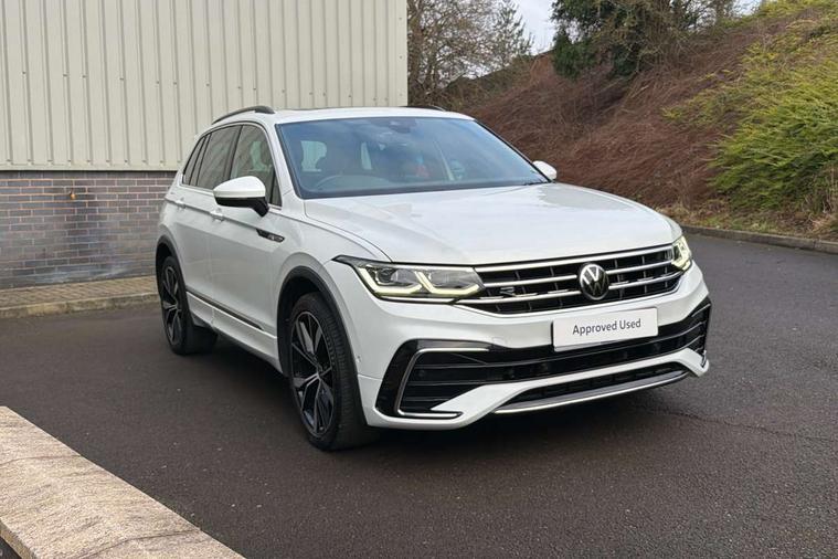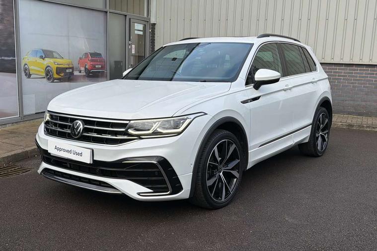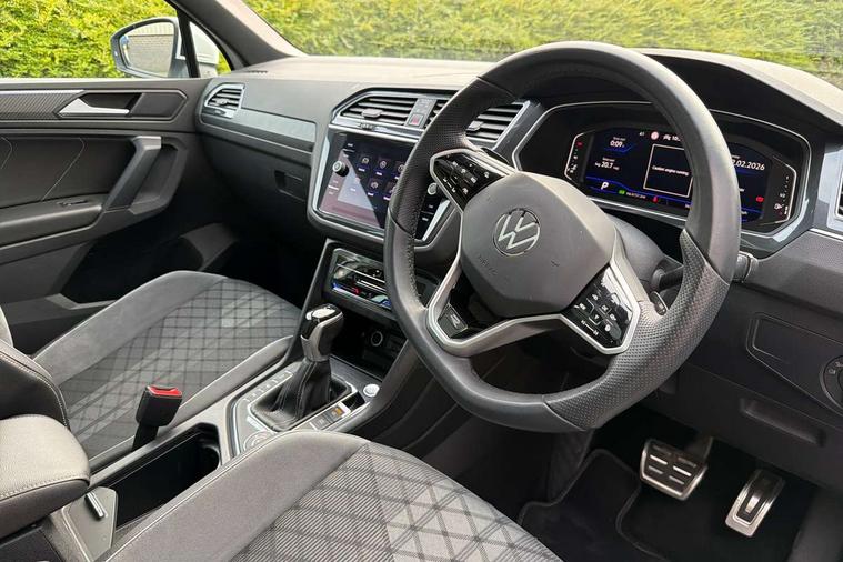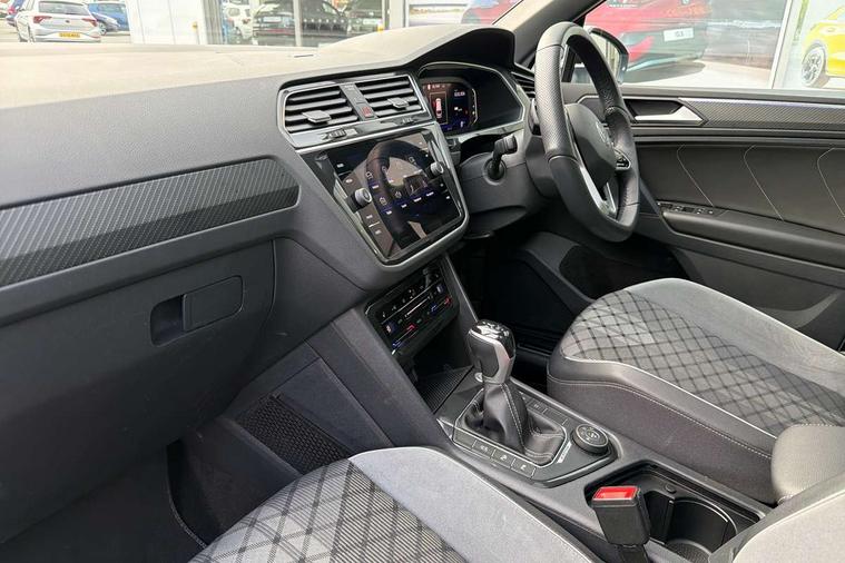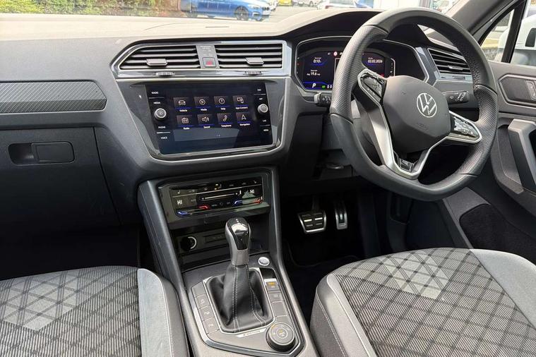 Adaptive cruise control ACC stop and go including speed limiter, App-Connect incl. App-Connect Wireless for Apple CarPlay and Android Auto, Bluetooth phone integration system, Digital Cockpit Pro - Active info display, Distance control assist, Driver alert system, Driver profile selection, Dynamic road sign display, eCall emergency call system, Electromechanical speed sensitive power steering, Engine start/stop button, Lane keeping system Lane Assist, Lights on warning, Multifunction front facing camera, Outside temperature display, Premium multifunction display with multi colour display, Remote control boot opening, Rev counter, Revision / skills operating concept travel assistant, Service interval indicator, Speed limit display, Start/stop system with regenerative braking, Trip computer, Warning sound and light for doors and tailgate open, All wheel drive - 4Motion, Battery regeneration during braking, Diesel particulate filter, Misfuel prevention device for diesel engine, Selective Catalytic Reduction, XDS electronic differential lock for improved traction and handling, 2 USB-C ports in the front, 1 USB-C charging socket on the center console in the rear, Diversity antenna for FM reception, Radio, SD card slot, Simultaneous pairing of 2 compatible mobile devices, SMS functionality - read, compose and send SMS messages using touch-screen display, Title and cover art display, Auto dimming interior rear view mirror, Automatic headlight control system, Black roof rails, Body colour door handles, Body coloured bumpers in R Line style, Body coloured door mirrors with integrated indicators, Chrome moldings on the side windows, Coming/leaving home lighting function, Dynamic headlight range control, Front and rear electric windows, Heated rear window, High level 3rd brake light, Laminated safety glass windshield, heat and sound insulating, LED rear number plate lights, License plate carrier in front and rear, Poor weather light and cornering light, Privacy glass for rear side windows and rear window, R Line body kit, R Line side sills, Rain sensor windscreen wipers, Rear exhaust tailpipe, Rear fog lamp, Rear side wing doors, Rear spoiler in R style, Rear windscreen washer and wiper with interval delay, Side and rear windows in heat insulating glass, Trailer Stability Programme, Unique R Line badging, Windscreen wipers/ intermittent wipe + 4 position delay, 12V outlet in center console rear and in luggage compartment, 12V outlet in front and tray, 2 cup holders in front, 2 LED front reading lights, 2 LED rear reading lights, 3 bench rear seats in 2nd row, 3 rear headrests, 4 load lashing points, 40:20:40 split folding rear seats, Air Care Climatronic 3 zone automatic climate control with enhanced air filter and controls in the rear, Backrest release for left front seat, Black headlining, Brushed stainless steel pedals and footrest, Carpet mats in front and rear with decorative stitching in Gray, Climate control unit rear with touch function, Door and side trim panel in foam film, insert in leatherette, Front centre armrest, Front footwell illumination, Front seats head restraints (x-adjustment), Height adjustable front seats, Height/reach adjust steering wheel, Instrument lighting white adjustable panel illumination, Interior light with delay, Isofix Preparation 2 Rear child seats, Leather gear knob, Lockable cooled glovebox, Luggage compartment lighting, Luggage net, Rear bench seat asymetrically split folding, longitudinally movable and folding with load-through hatch and center armrest, Remote unlocking for rear seat backrest, Removable luggage cover, Removable rear headrests, Safety optimised front head restraints, Single front passenger seat, Sliding/reclining rear seats, Standard rear seat release, Storage compartment in driver's door, Storage compartment in passenger's door, Storage compartment in rear doors, Storage compartments in luggage area left and right, Storage tray on dashboard, Sun visors with illuminated vanity mirrors, Top front comfort seats, Variable boot floor, height adjustable and removable, Ambience pack - Tiguan R Line, Driver assistance pack plus - Tiguan DSG, Park assist pack - Tiguan, 3 point seat belt for centre rear seats, 3 point seat belts with seat belt pretensioners for the outer rear seats, Active bonnet, Curtain airbags for front and rear passengers, Driver/Front Passenger airbags, Drivers knee airbag, Electronic parking brake with auto hold, Electronic Stability Control with driver steering recommendation, ABS, ASR, EDL, EDTC and trailer stabilization, Front assist with autonomous emergency braking (for Adaptive Cruise Control ACC up to 130 mph), Front disc brakes, Front passenger airbag deactivation, Front side airbags, Height adjustable front 3 point seatbelts + pretensioners, Hill hold control, Manual child proof rear door locks, Pedestrian monitoring system, Power assisted brakes, Proactive passenger protection system in combination with front assist, Rear disc brakes, Rigid safety cell with front and rear crumple zones, Two tone horn, Warning sound and light for front seat belts if unfastened, Anti theft alarm system with interior monitoring, backup horn and towing protection, Anti theft wheel bolts, Electronic engine immobiliser, 20" Misano black with diamond turned surface alloy wheels with Airstop tyres, Tool kit,