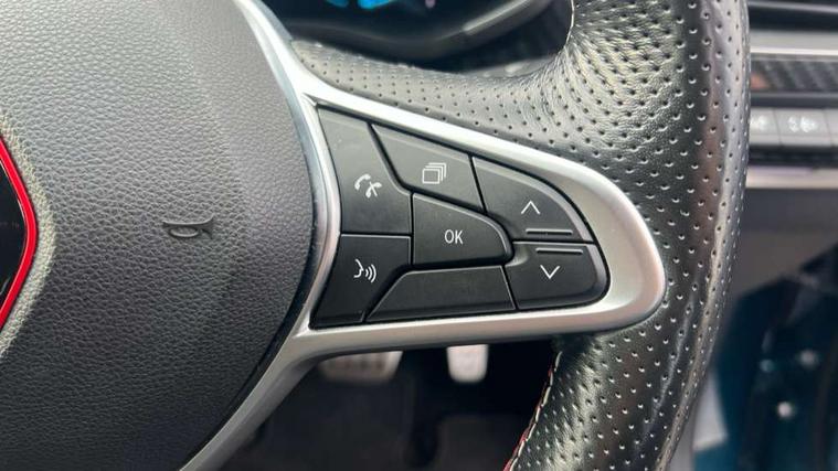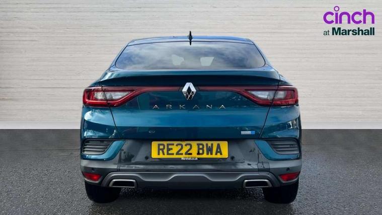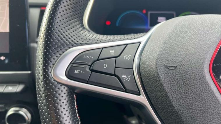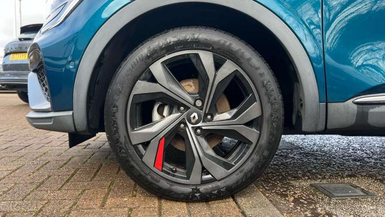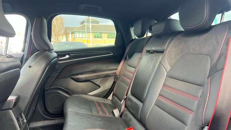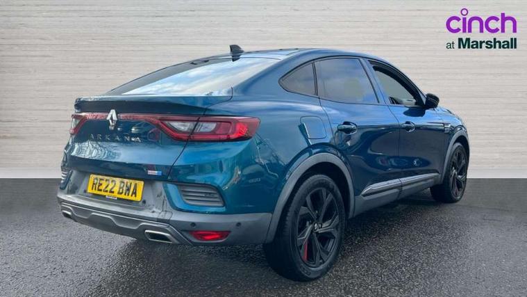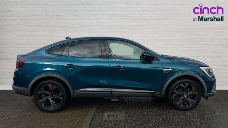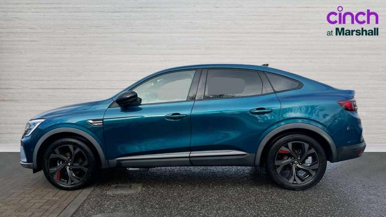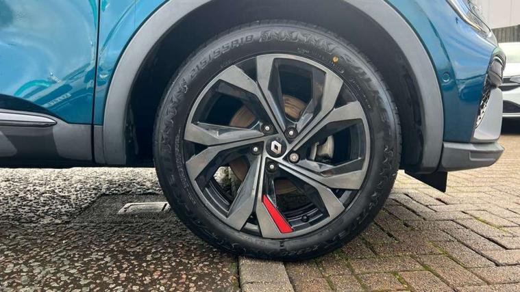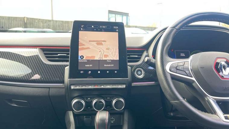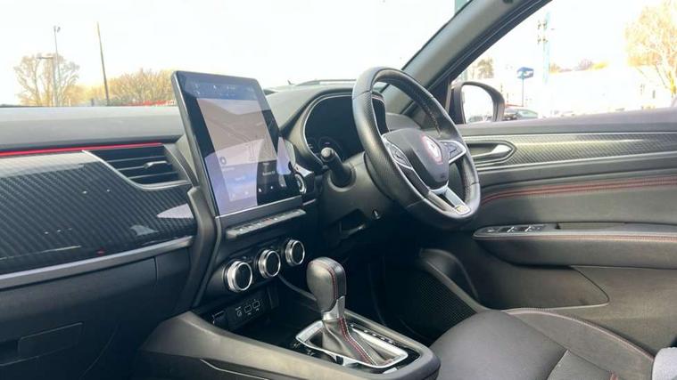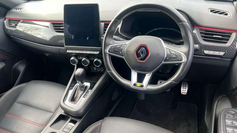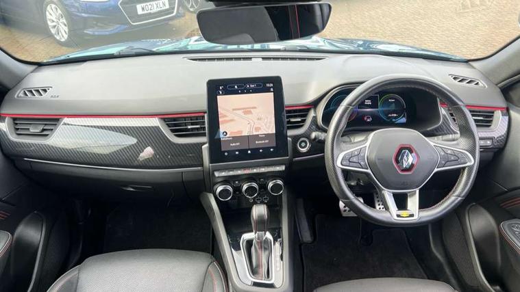 7" TFT Driver information display, Blind spot warning, Bluetooth system, EASY LINK 9.3" portrait touchscreen with navigation, Google search and traffic information, eCall emergency call system, Eco mode, EV button to activate pure mode, Front and rear parking sensors, Gear change indicator, Lane departure warning, Lane keep assist, Multi-sense - 3 driving modes and 8 ambient lighting, Rear cross traffic alert, Rear view camera, Renault automatic emergency assist, Smartphone integration compatible with Apple CarPlay and Android Auto, Traffic sign recognition with over speed prevention, Trip computer, Variable assistance electric power steering, Wireless phone charger, DAB radio, USB port, 3rd brake light, Auto dimming rear view mirror, Automatic headlights, Automatic high / low beam, Automatic windscreen wipers with rain sensor, Black side door protection with gun metal insert, Body coloured bumpers, C-shaped LED front signature lighting, Chrome decopart on wing (fender molding) with R.S. Line badge, Double chromed exhaust tailpipes elements, Extra tinted rear windows and tailgate, Frameless rear view mirror, Front and rear electric windows, Front bumper with F1 blade and honeycomb front grille, Front driver window with one touch facility and anti-pinch function, Front grille with chrome on upper part, Full LED headlights, Glossy black door mirror and lower window lining, Gun Metal front and rear skid plates, Heated rear window, R.S. Line badges on front wing and hatch door, Rain sensor, Rear windscreen wiper, Shiny black shark fin antenna, Side mirrors adjustable electrically, electrically foldable, with defrosting and temperature sensor, automatically foldable at vehicle closure, 3 seat bench in 2nd row, 60:40 split and fixed base rear seats, Aluminium pedals, Automatic climate control with combined filter, humidity sensor and AQS, Black interior roof lining, Carbon style dashboard, Central console with storage, Driver's seat height adjustment, Electrically adjustable front seats, Front and rear head restraints, Height and reach adjustable steering wheel, ISOFIX child seat fixing points on rear outermost seats, LED front and rear roof lights, Passenger seat height adjuster, R.S. line black suede-leather upholstery with red/grey stiching, R.S. Line perforated leather steering wheel with red/black harmony and R.S. Line badge, Rear air vents, Red inserts on air vents, Single front passenger seat, Parking Pack - Hands-free parking & flank protection - Arkana, Winter pack - Arkana, 3x3 point rear seat belts, ABS+EBA, Active emergency braking system, B Brake Mode - One pedal driving with increased regenerative braking, Distance warning alert, Driver airbag, Driver and passenger front and side airbag deactivation, Driver and passenger side airbags, Driver height adjustable seat belt, Electronic parking brake with auto hold, ESC (Electronic Stability Control), Front and rear no seatbelt warning sound, Front curtain airbags, Front head airbags, Hill start assist, Passenger airbag, Tyre pressure warning light, Anti drill door locks and locking fuel cap, Central door locking, Deadlocking system, Hands free keycard with Keyless access and start, RAID (Renault Anti-Intruder Device) automatic door locking, Rear side wing door and window child locking function (front driver door control panel), Superlocking, Thatcham alarm, 18" Silverstone diamond alloy wheels with red inserts,