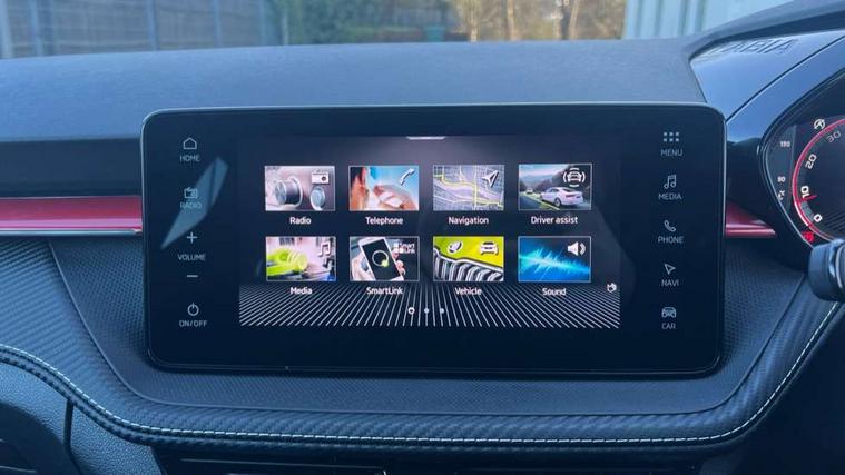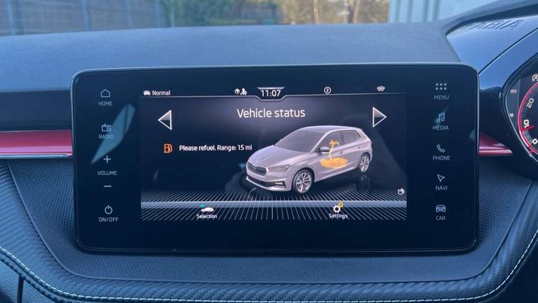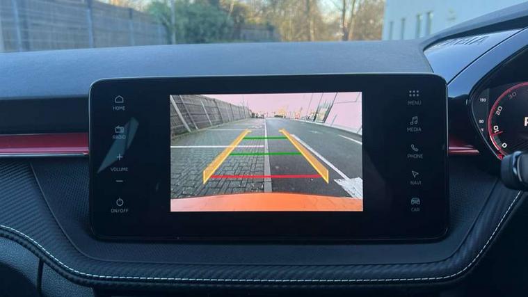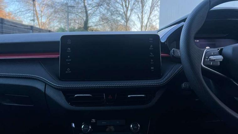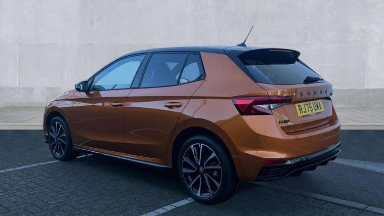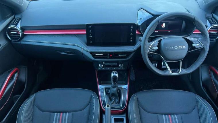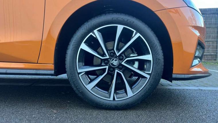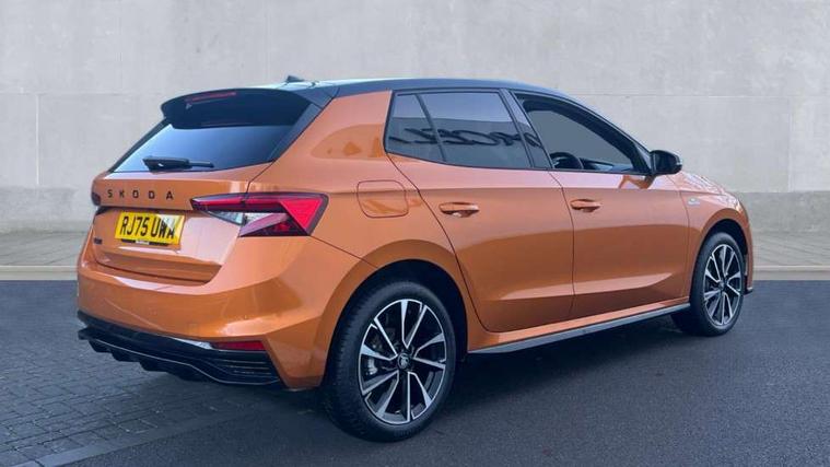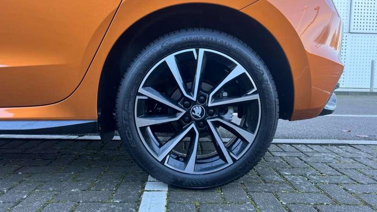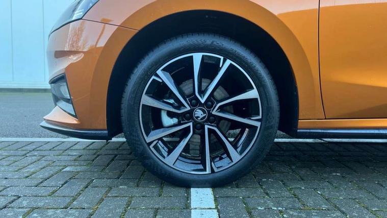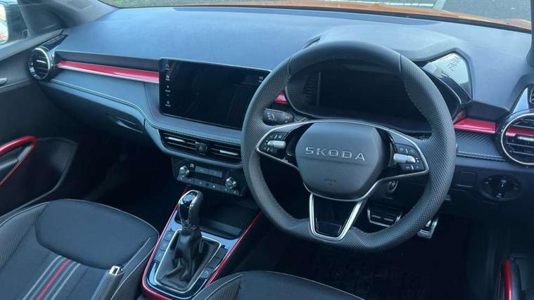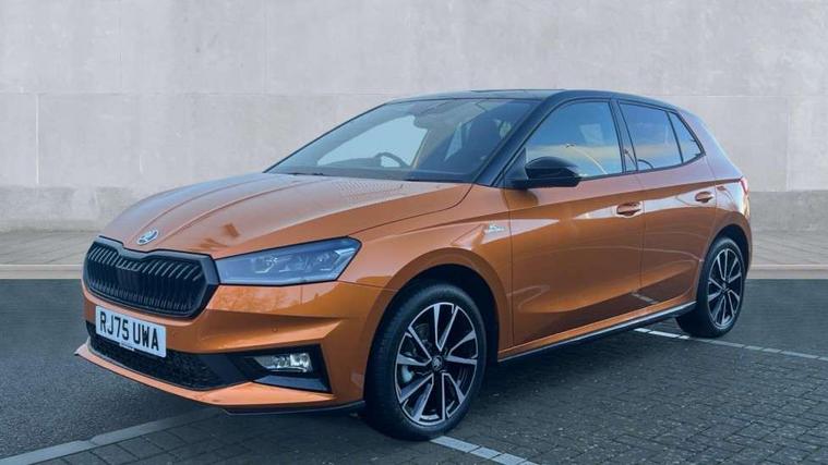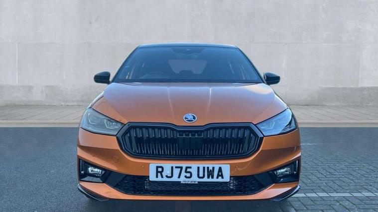 Advanced driver attention and drowsiness monitor, Bluetooth connection, Driver alert system, Electromechanical power steering, Exterior temperature gauge, Service interval indicator, Traffic sign recognition, Virtual cockpit with 10.25" colour display, Wireless SmartLink for Apple CarPlay and Android Auto, 6 Speakers (4 in front and 2 in rear), 9.2" colour display skoda navigation system with voice control and web radio, Auxiliary socket for external MP3 player, DAB digital radio reception, Auto dimming rear view mirror, Black radiator grille, Body coloured bumpers, Chrome window surround, Door mirror integrated indicators, Dynamic headlight range control, Front and rear electric windows, Front window wiper intermittent control, Ice scraper in fuel cap, LED 3rd brake light, LED daytime running lights with coming and leaving home feature, LED rear lights, Monte Carlo badging, Privacy glass, Rear LED fog light, Rear side wing doors, Rear window wiper with washing nozzles, Roof mounted spoiler, SKODA tailgate lettering in black, Sports bumpers, Unique dark chrome design logo on alloy wheels, 2 LED reading lights in front and rear, 3 rear headrests, Aluminium pedals, Backrest split and folding, Black headlining, Central console with fixed cup holder and storage box, Chrome handbrake release button, Door sills with fabia badging, Dual zone air conditioning with climatronic electronic control, Fabric/artificial leather upholstery, Front centre armrest, Front sports seats, Gearshift knob/handle in leather, Hand brake lever handle in leather, Height adjustable front headrests, Height adjustable front seats, Height adjustable steering wheel, ISOFIX and TopTether anchorage points to the outer rear seats, ISOFIX and TopTether on the front passenger seat, Luggage compartment lighting, Manually adjustable lumbar support in front seats, Metallic red interior door handles, Pollen filter, Rear seat bench unsplit, Single front passenger seat, Skoda lettering on steering wheel, Sun visors with mirror and airbag label on passenger side, Textile floor mats, Ticket holder, Umbrella in drivers door, Ambient lighting pack - Fabia Hatchback, Convenience pack - Fabia, Light and view pack plus - Fabia, 3-point height adjustable front seats belts with pretensioner and force limiter, Automatic warning lights in case of crash, Driver and passengers airbag with switch off function, e-Call+, ESC including ABS, MSR, ASR, EDS, HBA and XDS, Front and rear seat belt warning, FRONT ASSIST (AEB City and AEB Inter Urban), Front side airbags, Head airbags, Hill hold control, One tone horn, Pedestrian protection, Three rear 3-points safety seat belts with pretensioner and force limiter including stop function for outer rear seat belts, Tyre pressure monitoring system, Anti-theft alarm system including immobiliser, interior monitoring, backup horn, and towing protection, Central locking with radio remote control, interior controls, SAFE function and 2 foldable keys, Carbon effect door and side trim panels, Carbon effect lower decorative trim with white stitching, Grain satin black central console cover, Monte carlo air vents, Red metallic upper decorative trim, Anti-theft wheel bolts protection, Super-low rolling resistance tyres,