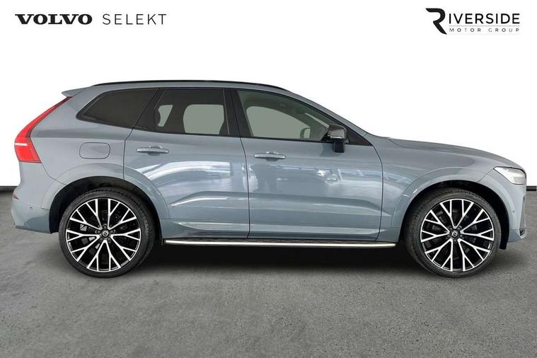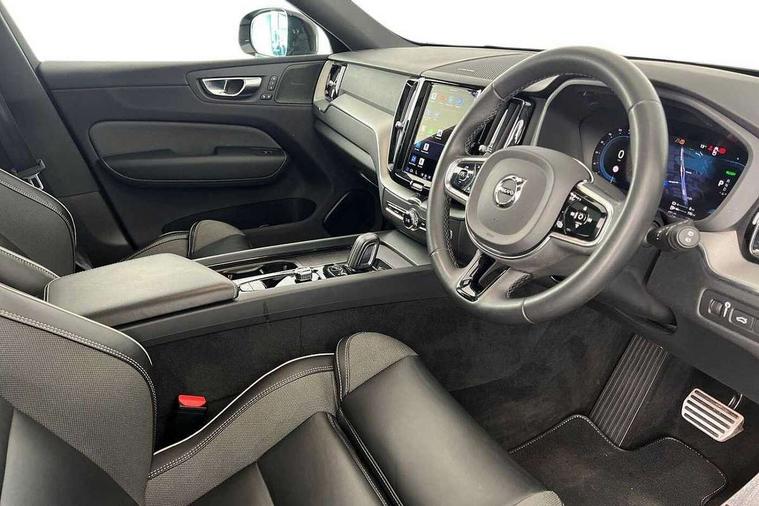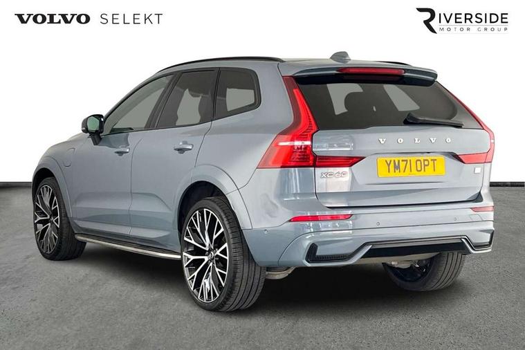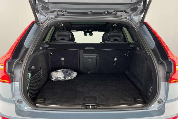Metal mesh inlays, Tailored instrument panel with contrast stitching, Lighting Pack - XC60 PHEV, Tyre sealant kit + 12v compressor, Anti-theft alarm including immobiliser/volume sensor + level sensor, Care key with user defined top speed, Key integrated remote control central locking + fuel flap with deadlocking system and auto open/close power windows, Keyless Drive (includes Keyless Entry and Keyless Start) with Handsfree Tailgate Opening/Closing, Locking wheel nuts, Private locking for tailgate, DAB Digital radio, Fresh air subwoofer, 5 three point seatbelts, City safety with steering support with Pedestrian + cyclist + large animal detection + front collision warning with full auto brake, Drivers knee airbag, Dual stage driver/passenger airbags, Electronic parking brake with auto hold, First aid kit, Hill descent control, Hill start assist, IC (Inflatable Curtains) - Full Length, Mechanical child locks on rear doors, Passenger airbag cut-off device, Road sign information display, Run off Road Mitigation, Run off Road Protection, Seatbelt reminder and pretensioners, SIPS (Side Impact Protection System), SIPS airbags, Slippery road and hazard light alert, Stability and Traction Control with Spin control, Engine Drag Control and Corner Traction Control, Tyre pressure monitoring system, Vehicle deceleration control with Anti-lock Brake System, Electronic Brake Distribution and Emergency Brake Assist, Warning triangle, WHIPS whiplash protection system - front, Adaptive brake lights with high level LED brake lights, Auto dimming interior + exterior mirrors, Automatic headlight levelling system, Automatic LED Headlights + Active high beam incorporating daytime running lights, Dark tinted windows for rear side windows and cargo area, Electric adjustable/heated/auto power folding door mirrors, Electric front+rear windows, High gloss black door mirrors, High gloss black mesh front grille with high gloss black surround, High gloss black rear bumper deco, High gloss black window frame surround, Home safe and approach lighting, Integrated roof rails in high gloss black, Power glass tilt and slide panoramic sunroof with sun curtain, Puddle lights, Rain sensor with automatic windscreen wiper activation, Rear side wing doors, Rear wiper, Recharging port located in nearside front wing, Roof antenna, Roof spoiler, Tinted windscreen, Visible VIN plate, 12V socket in front tunnel console and cargo compartment, 2 zone electronic climate control with Clean zone air quality system and pollen filter, 3 seat bench in 2nd row, 3 spoke tailored sports steering wheel, A-pillar parking ticket holder, B Pillar ventilation, Bright metal luggage threshold, Centre armrest storage illumination, Centre console cupholders and storage, Charcoal headlining, Contour sports seats with nappa leather/textile upholstery, Floor mats, Front and rear door pocket and front cupholder illumination, Front footwell and side step illumination, Front reading lights, Front seat cushion extensions, Head restraints for all seats, Heated front seats, Heated steering wheel, Height/reach adjustable steering column, High gloss black steering wheel remote infotainment controls, Illuminated glovebox, Illuminated luggage compartment, Illuminated vanity mirrors + ticket holder, Load cover, Load protection net, Multi directional lumbar support, Multicolour theatre lights, Rear armrest with cupholder, Rear footwell and side step illumination, Rear seat concealed storage, Recharge aluminium tread plates, Single front passenger seat, Sport leather gear knob, Sport pedals, Tailgate illumination and ambient door lighting, Underfloor stowage compartment, Versatile split folding rear seat - 60/40, 12.3" Active TFT crystal driver's instrument display, 9" centre console touch screen, Adjustable steering wheel force, Bluetooth handsfree system, Drive mode selector, Driver alert control with lane keeping aid, Emergency services call system, Front and rear park assist, Google Automotive Services, Oncoming Lane Mitigation, Service interval indicator, Speed limiter, Speed sensitive steering, Trip computer, Volvo on call with App, Wireless apple carplay, Wireless/Inductive Mobile Phone Charging, 7m 10amp Charge Cable with 3 Pin Plug and 7m 1-Phase 16amp Type 2 / Mode 3 Charge Cable, 8 speed automatic transmission with start/stop + manual change functions, Active four-C chassis + four corner adaptive damper with electronic rear air suspension, Electric rear axle drive,