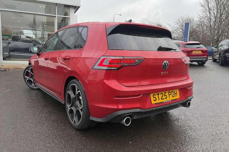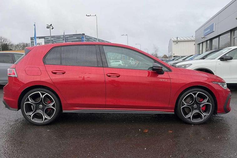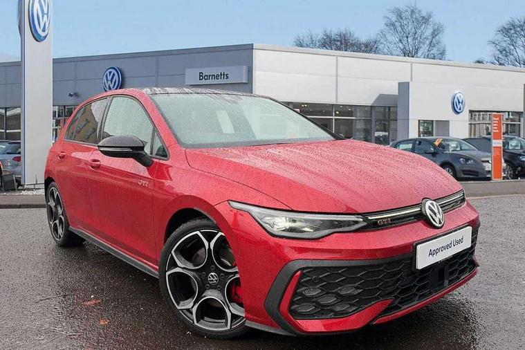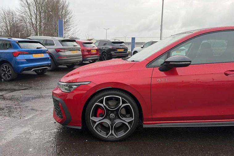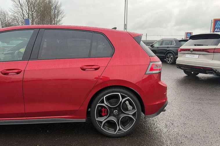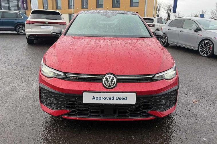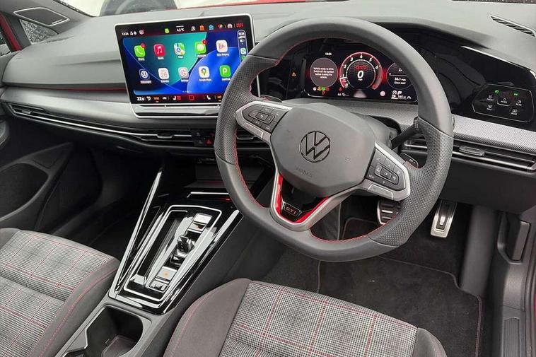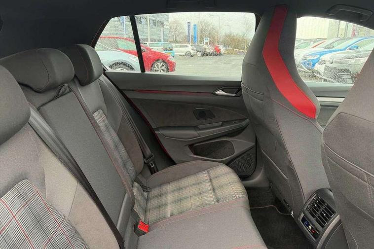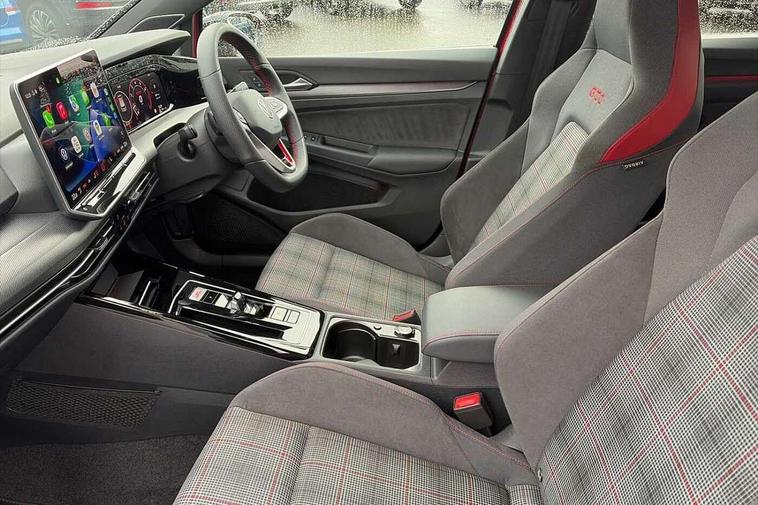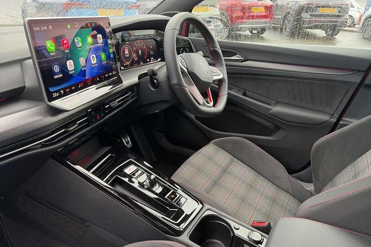 Activated carbon canister, Adaptive cruise control (ACC), Advanced driver attention and drowsiness monitor, Dynamic road sign display, E-Sim card for online connectivity, eCall emergency call system, Multi-color Digital cockpit pro, selection of different info profile possible, Multifunction front facing camera for distance control, Navigation system, Oncoming vehicle braking when turning including swerve support, Side assist blind spot lane change system, rear traffic alert and exit warning system, Speed limiter, Speedo, rev counter, electronic odometer, trip, service interval display, exterior temperature and fuel gauge, Traffic jam assist, Voice enhancer and voice control, Warning signal and warning light for front and rear seatbelts not fastened, We connect plus preparation, We connect preparation, Wireless app connect, Front differential lock, Petrol Particulate Filter, Start-stop system with battery regeneration (recuperation - energy recovery during braking), 2 USB C ports in front, 2 USB charging sockets on the centre console in the rear charging capacity upto 45W, Digital radio reception (DAB), Diversity antenna for FM reception, Gaming platform via car app, Infotainment system with 12.9" display, Mobile phone interface with inductive charging feature, 3rd brake light, Auto dimming rear view mirror, Automatic headlamp activation with Coming home and Leaving home feature, Body colour door handles, Body coloured bumpers, air intake in honeycomb structure, Exterior mirrors convex on the left and aspherical on the right, Front and rear electric windows, Front fog lamps and cornering light, Heat insulating windshield made of laminated glass, LED separate daytime running light, Nameplate 'GTI' set, Rain sensor, Rear exhaust tailpipe, Rear fog light on one side and reversing lights on both sides, Rear side wing doors, Rear windscreen washer and wiper with interval delay, Remote electrically foldable door mirrors, puddle lights and reverse activated passenger's door mirror, Welcome light with surround lighting, 12V socket in front centre console, 12V socket in luggage compartment, 3 rear head restraints, 3 seat bench in 2nd row, 30 colour ambient lighting, illuminated center console storage compartment in front, Air care climatronic 3 Zone automatic climate control with rear air conditioning control panel, Aluminium gearshift handle, Brushed stainless steel pedals, Chrome plated radiator grille inserts, air vent surrounds and light switch surrounds, Entry lights, Front + rear black carpet mats, Front centre armrest, ISOFIX anchors for child seats on outer rear bench seats and on front passanger seat compatible for i-Size, Luggage compartment lighting, Rear cupholder and loadthough, Single front passenger seat, Soul black instrument panel, Soul black roof lining, Split folding backrest with centre armrest and unsplit rear seat bench, Sun visors with illuminated vanity mirrors, Driver assistance pack - Golf Estate/Hatchback Auto, Technology park and comfort pro package - Golf Hatchback, 3 point height adj front seatbelts + pretensioners, 3 rear three point seatbelts, ABS, Autonomous emergency braking front assist with pedestrian and cyclist monitoring, Child locks on rear doors, Driver and front passenger airbag with front passenger airbag deactivation, Electronic parking brake with auto hold, ESC (Electronic Stability Control), Extended pedestrian protection measures, Hill start assist, Rear disc brakes, Two tone horn, Tyre pressure loss indicator, Volkswagen roadside assistance, Anti theft wheel bolts, Preparation for alcohol interlock, Decorative inserts carbon grey for dashboard and front door trim panels, Sporty vehicle dynamics, Tool kit for tyre mobility set, Tyre mobility kit Includes 12V compressor and tyre sealant,