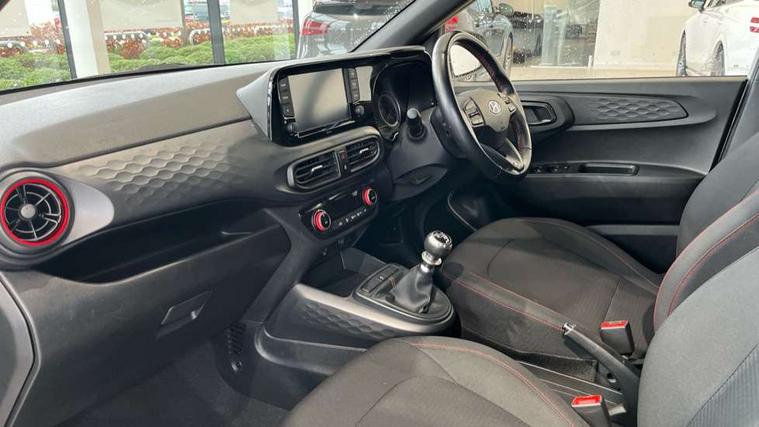 8" Touchscreen centre console display audio with smart device integration and DAB, Apple car play/Android Auto, Bluetooth connectivity with voice recognition, Cruise control + speed limiter, Driver attention alert system, eCall emergency call system, ISG - Idle stop and go, Lane departure warning system with lane keep assist - LKAS, PAS, Rear view camera, Roadside assistance, Trip computer, 2 front/2 rear speakers, Steering wheel audio, phone and cruise controls, USB socket, 1 speed non intermittent rear windscreen wiper, Bi-function projection headlights, Black finish on B pillars, Body colour door handles, Body coloured bumpers, Body coloured door mirrors, Differentiated DRL design with red stripe detail, Dual exhaust tailpipe, Electric front windows, Electric rear windows, Electrically adjustable and heated door mirrors, Front fog lights, Front intermittent wipers, Halogen headlights, Heated rear window, High beam assist, Indicator light on door mirrors, N Line Badging, N Line design front grille, Privacy glass - Rear windows and tailgate, Rear combination lights - LED, Rear roof spoiler with integrated LED brake light, Rear side wing doors, Unique LED daytime running lights, 12v power outlet - front, 3 seat bench in 2nd row, 60/40 split folding flat to floor rear seats, Auto light control, Black roof liner, Bottle holders in front/rear doors + front centre console, Cabin and luggage compartment interior lighting, Climate control, Cloth upholstery, Driver + passenger vanity mirrors, Driver's seat height adjustment, Driver/passenger sunvisors with ticket holders, Front door pockets, Front Head Restraints - Vertical and Horizontal Adjustment, Glove compartment, Height adjustable steering column, Isofix child seat preparation, Metal paint effect interior door handles, N Line branded leather gear stick, N Line branded leather steering wheel, Rear door pockets, Single front passenger seat, Vertical adjustment rear head restraints, 3x3 point rear seatbelts, Airbags - front, front side and curtain airbags, Anti-lock brake system (ABS), Autonomous emergency braking (AEB) with forward collision warning system, Brake assist function, Childproof rear door locks, Electronic stability control, Front and rear seatbelt reminder, Front seatbelt pretensioners, Hill start assist control (HAC), Passenger airbag deactivate switch, Rear disc brakes, Traction control, Tyre pressure monitoring system, Immobiliser, Perimeter alarm, Remote central locking, Second remote key, Speed sensitive auto door locking, Honeycomb design in dashboard and door, 16" N Line design alloy wheels, Tyre repair kit,